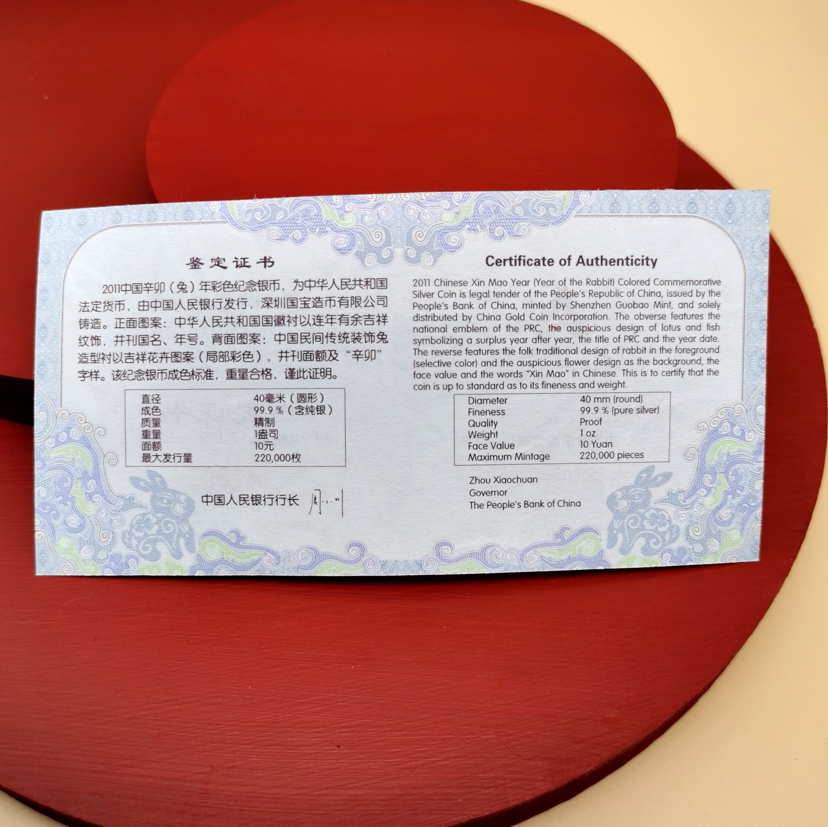 2011兔年生肖 1盎司彩色银币 纪念币 彩银兔配红盒