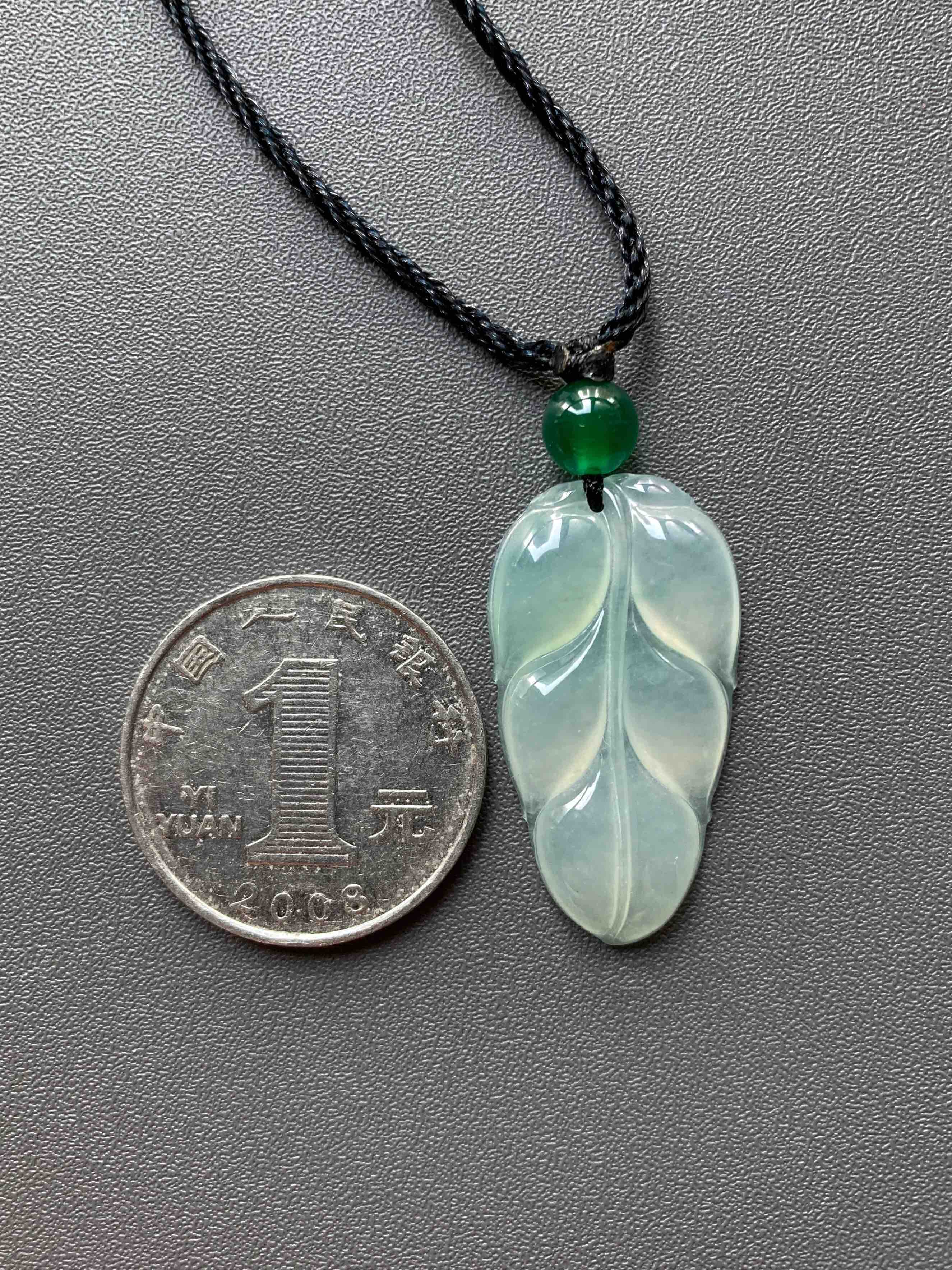 金枝玉叶,事业有成,戴叶子的都事业进步哈,这种水棒极了,冰种淡晴水,晶莹剔透的,尺寸也是非常好,31.5×17×4.2mm,,才1000多,你相信吗,大福利,仅此一枚,自己戴或者送人都很不错
