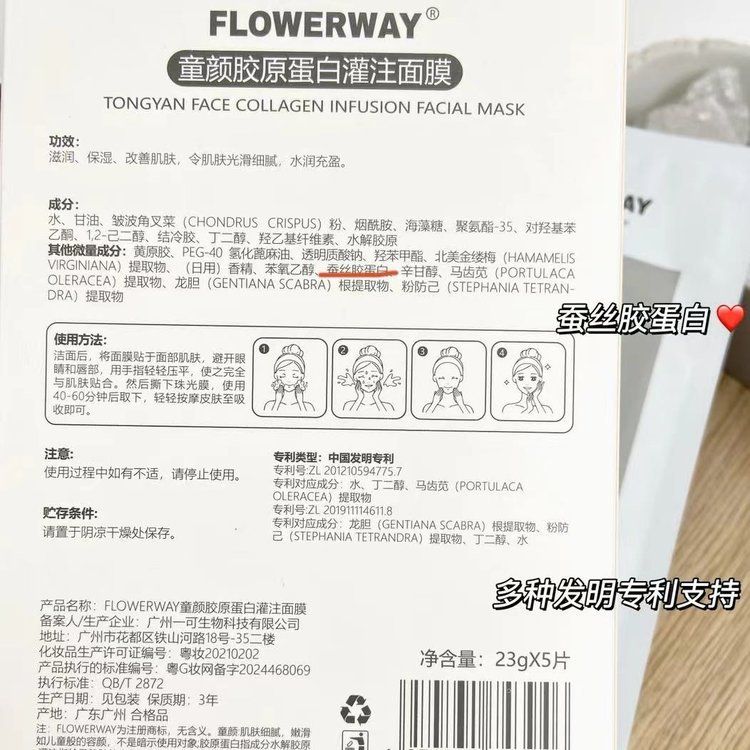 【品名】:韦雪的护肤秘籍!FLOWERWAY童颜胶原蛋白灌注面膜