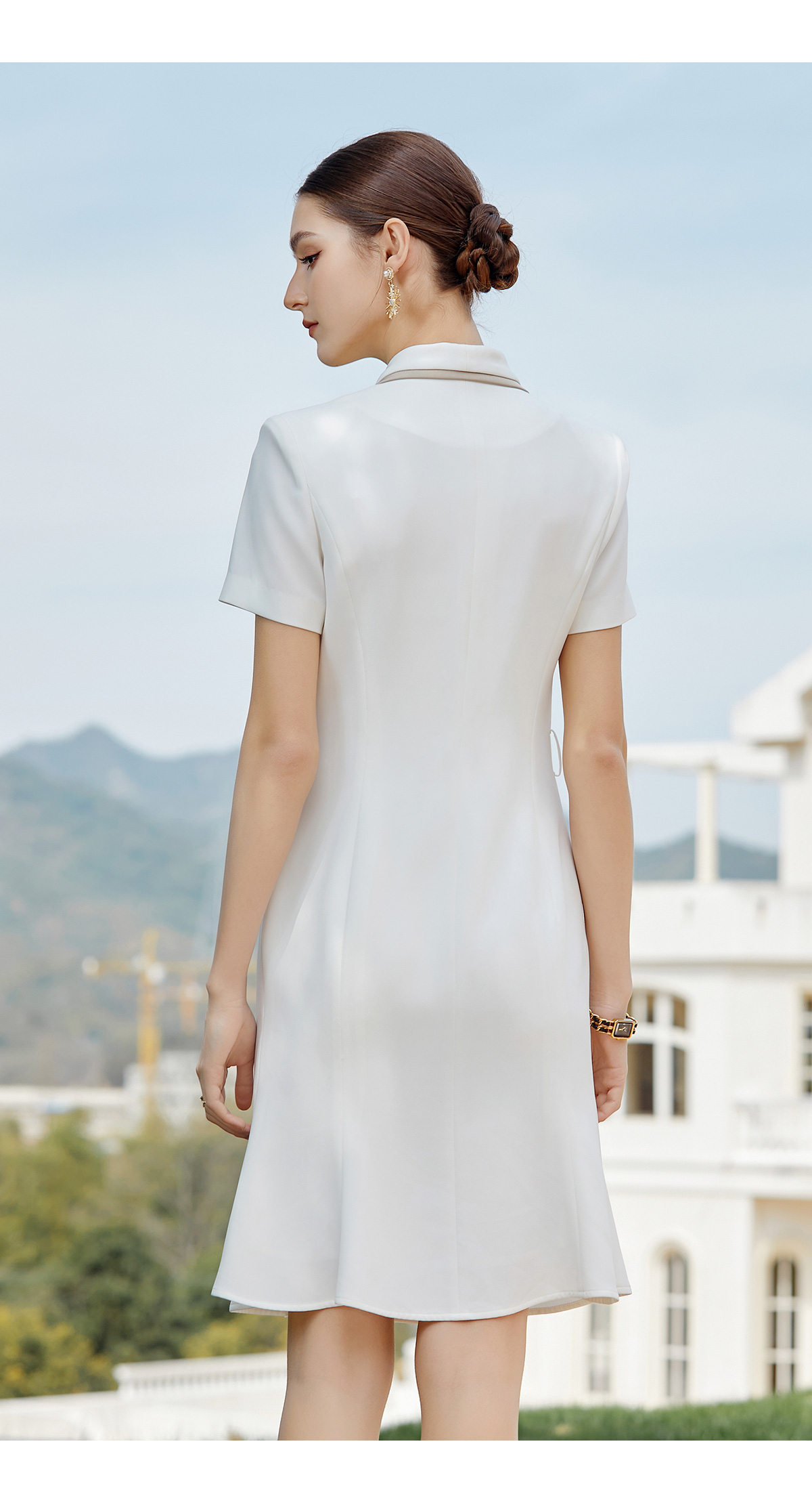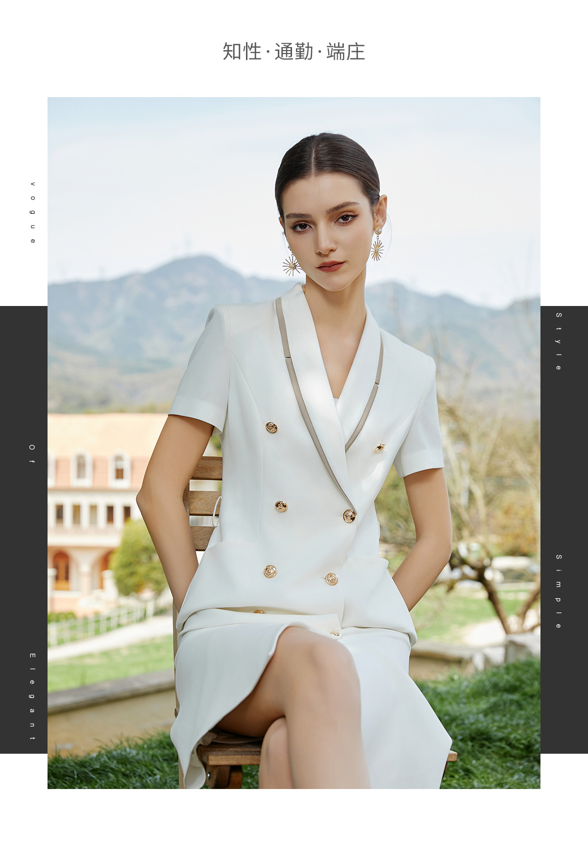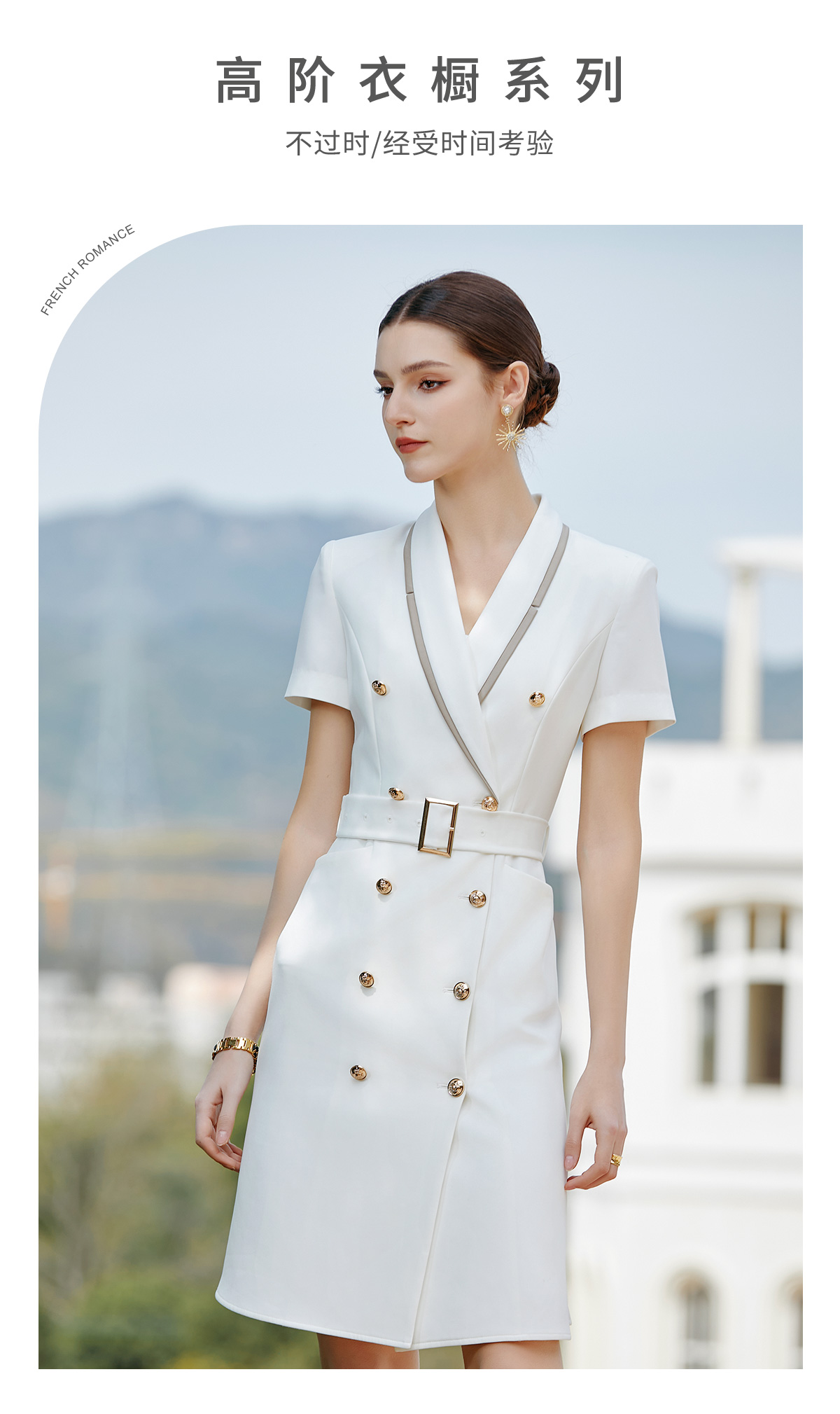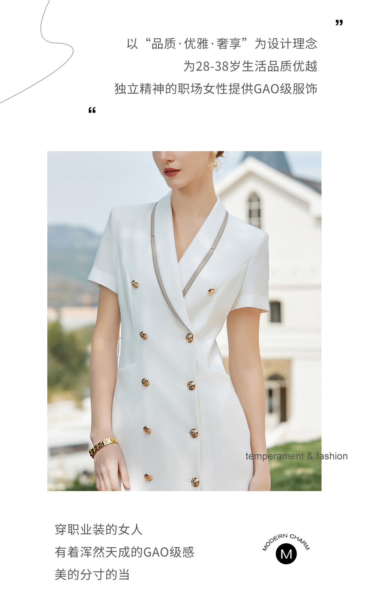 AD白色西装连衣裙气质干练西服裙子新款教师工作服主持人上镜服装