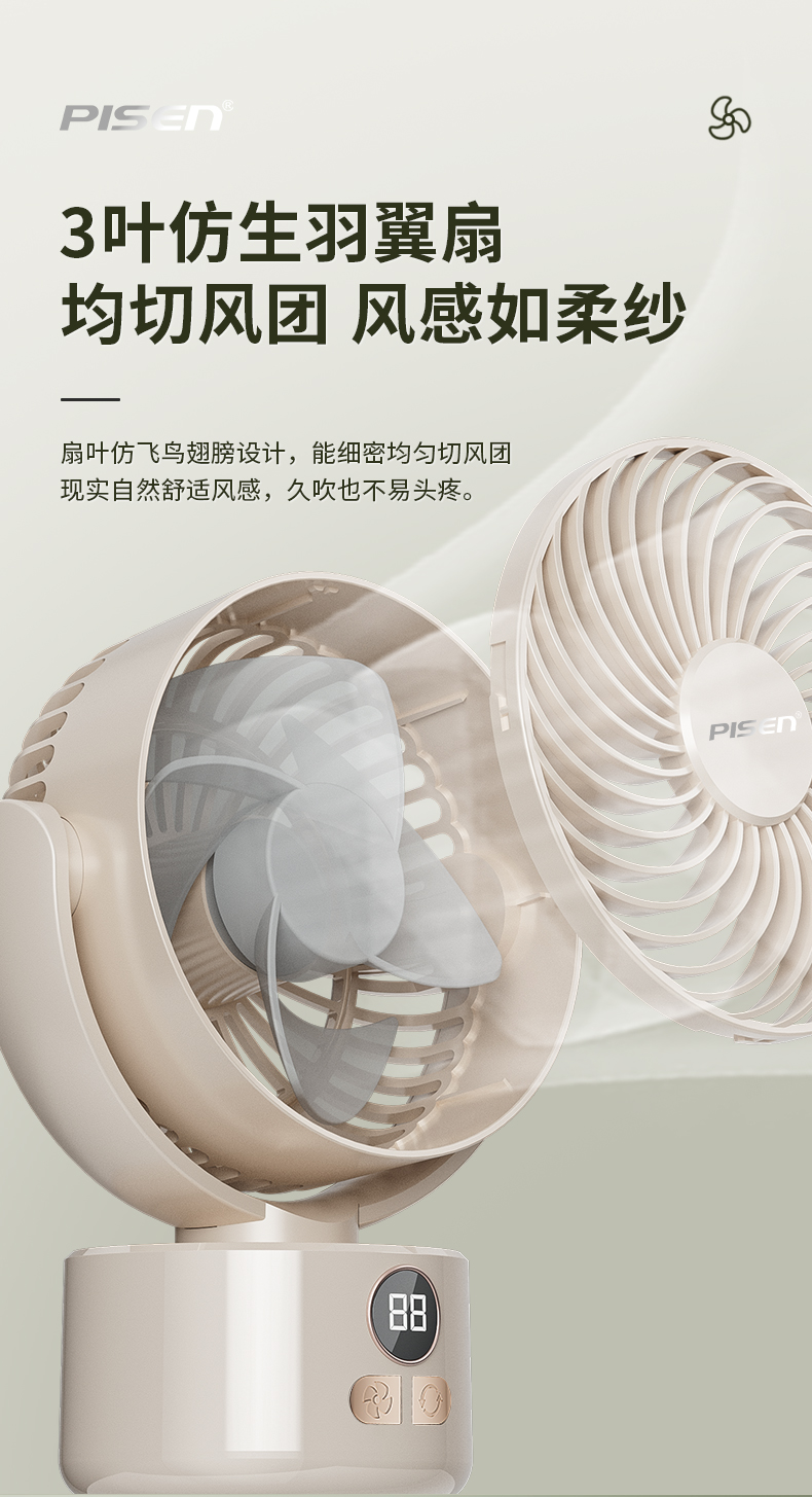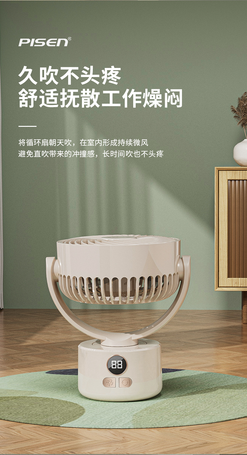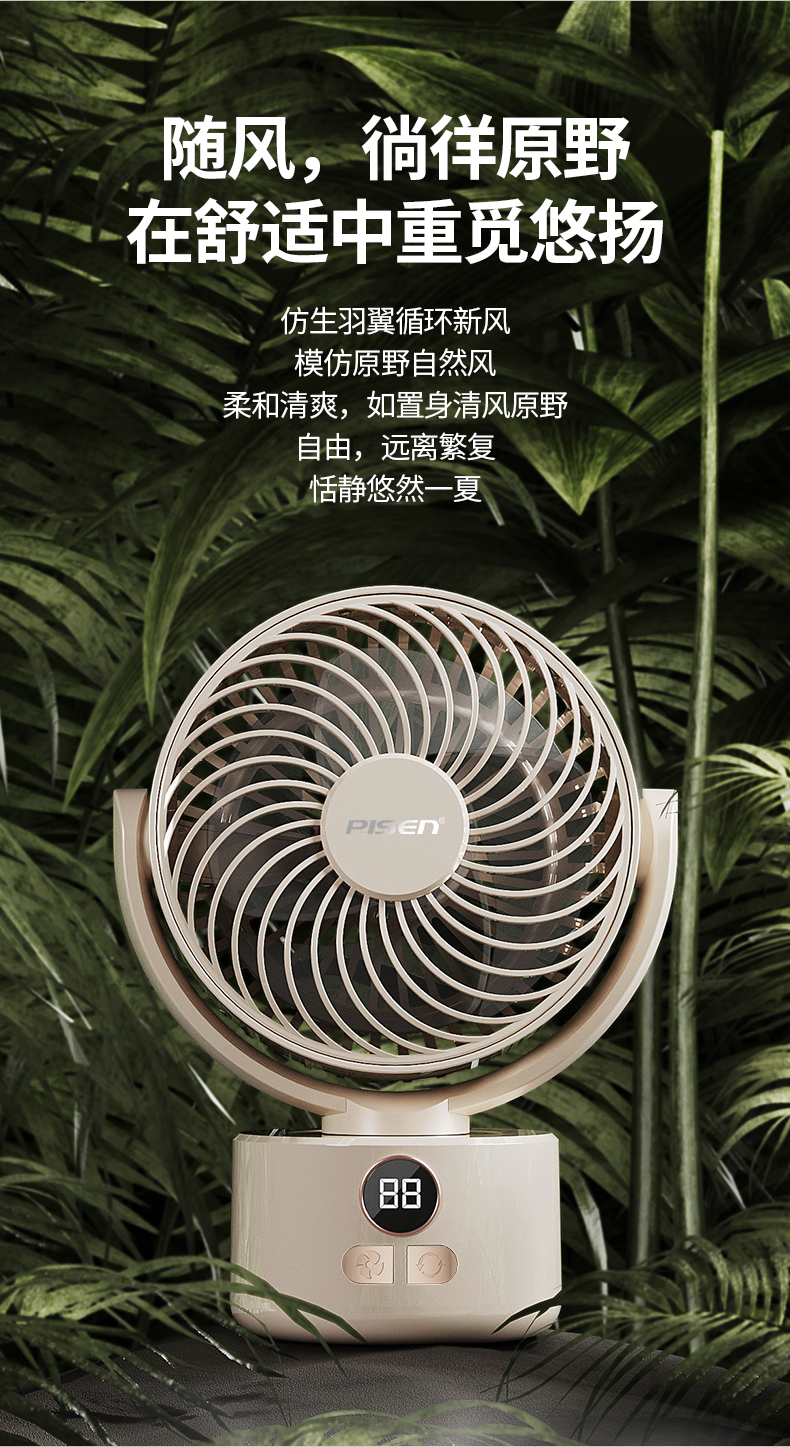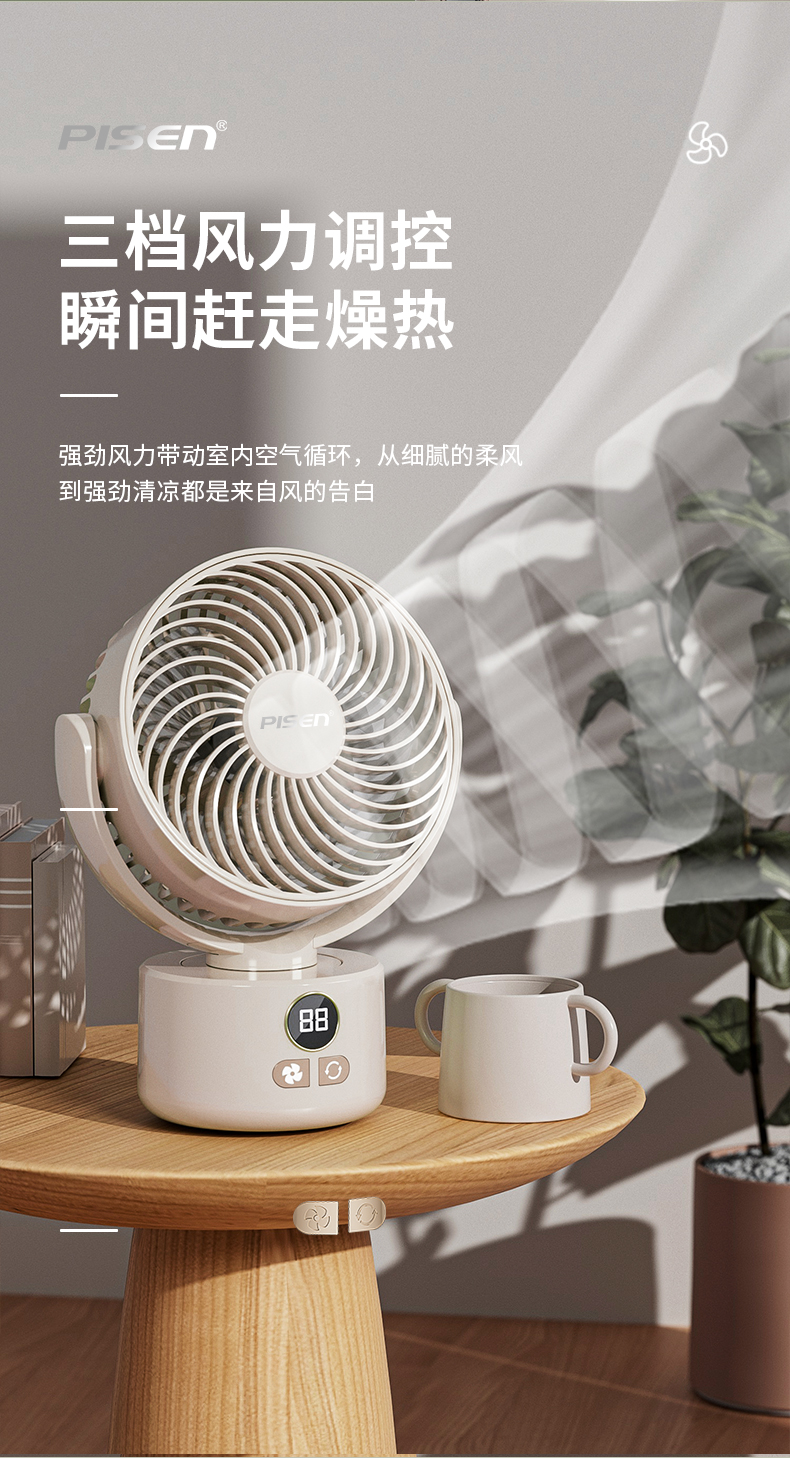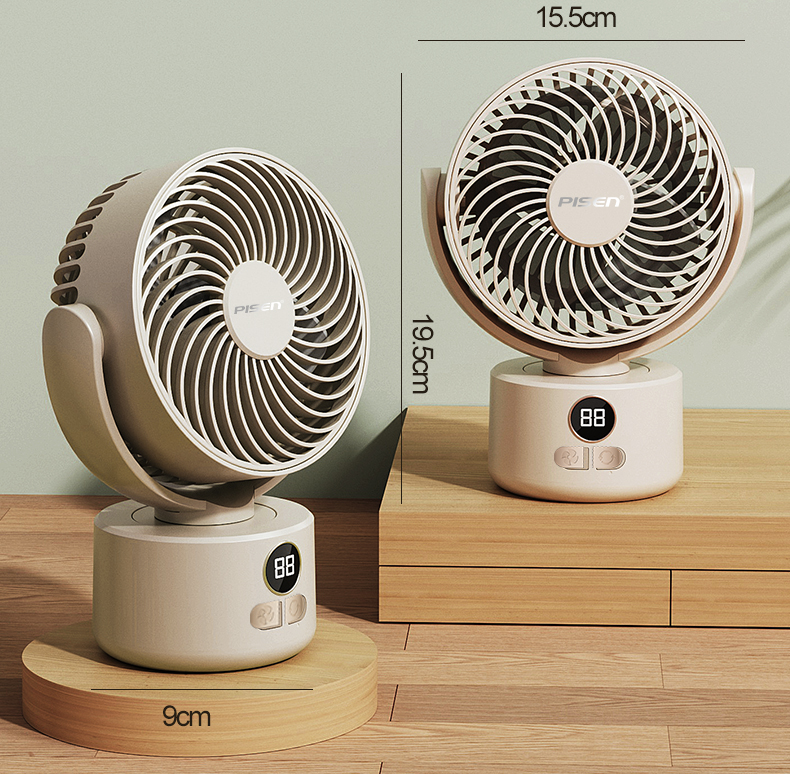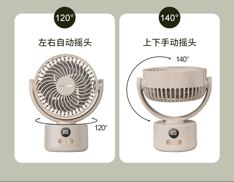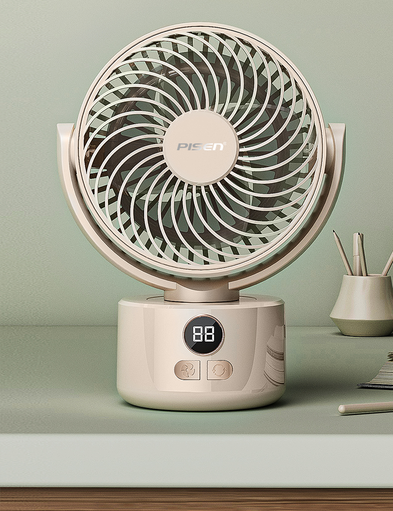 品胜 摇头数显桌面风扇 小型家用usb可充电学生宿舍台式便携循环扇超长续航办公桌循环台扇