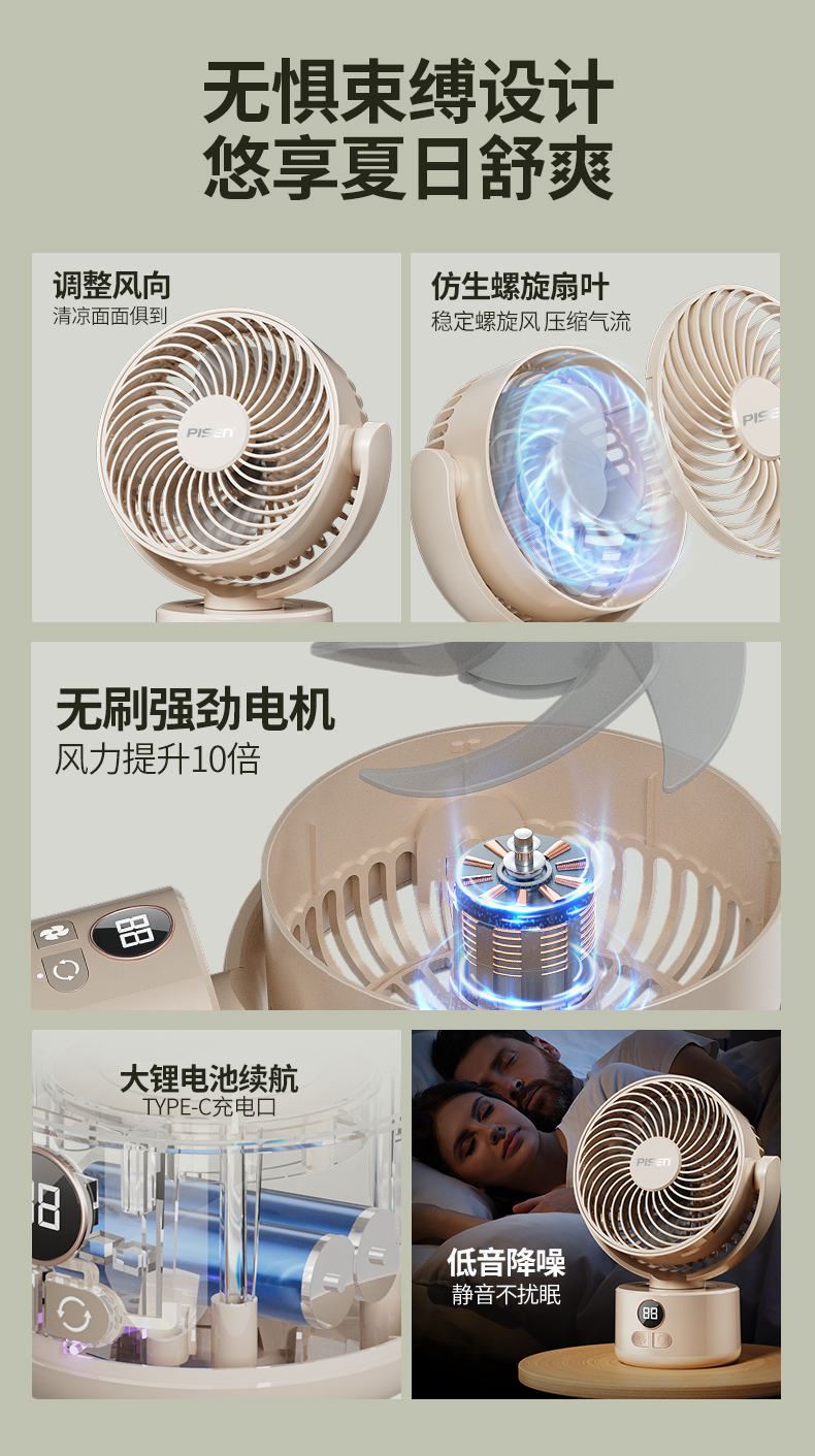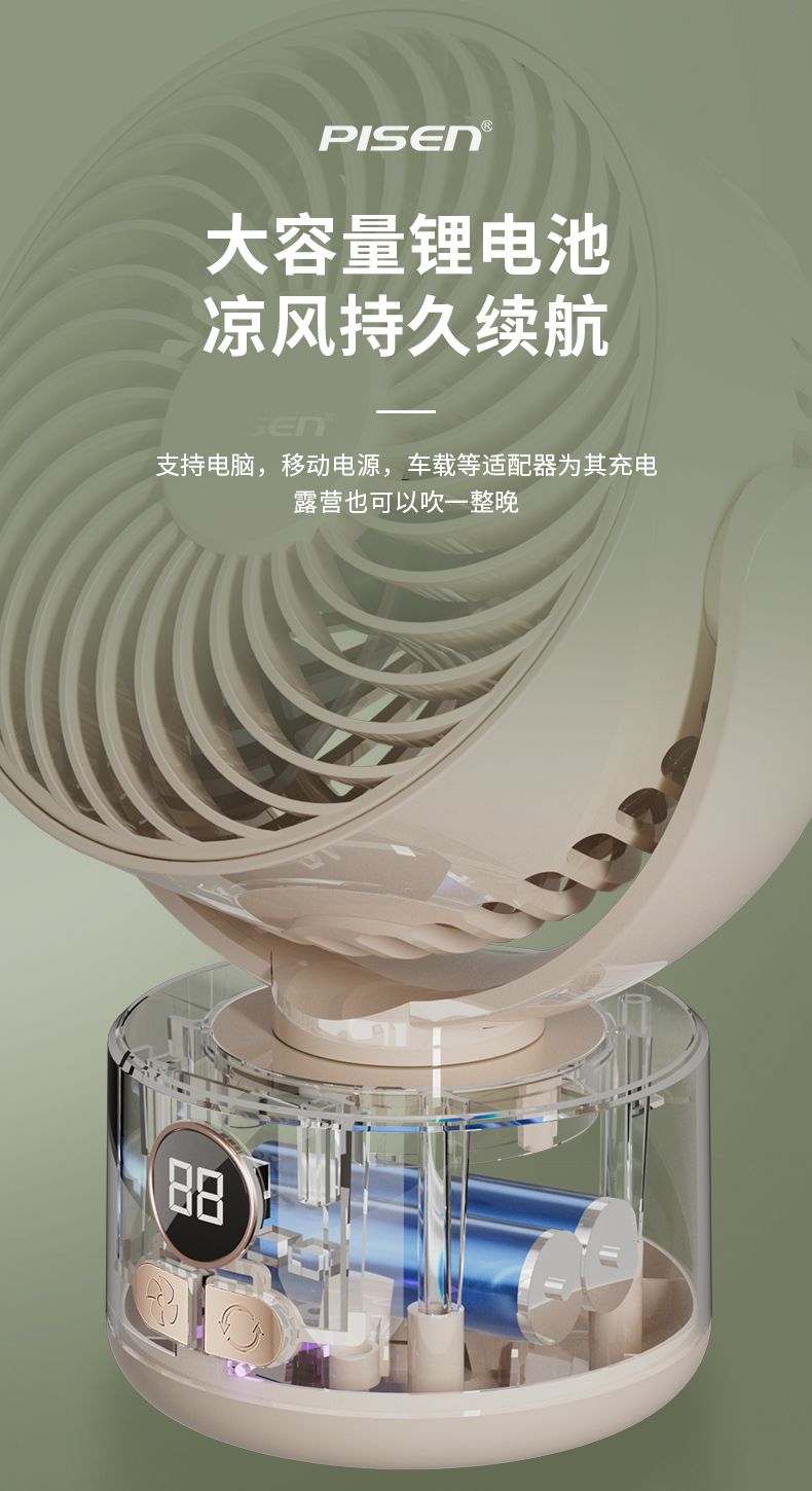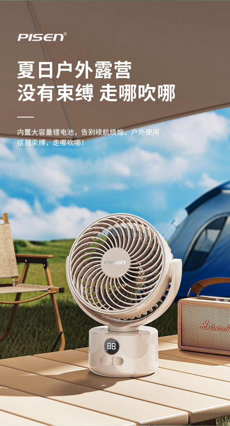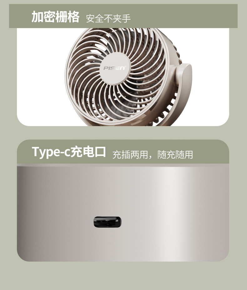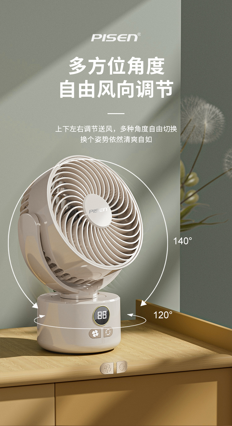 品胜 摇头数显桌面风扇 小型家用usb可充电学生宿舍台式便携循环扇超长续航办公桌循环台扇