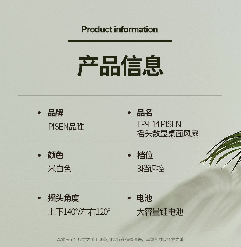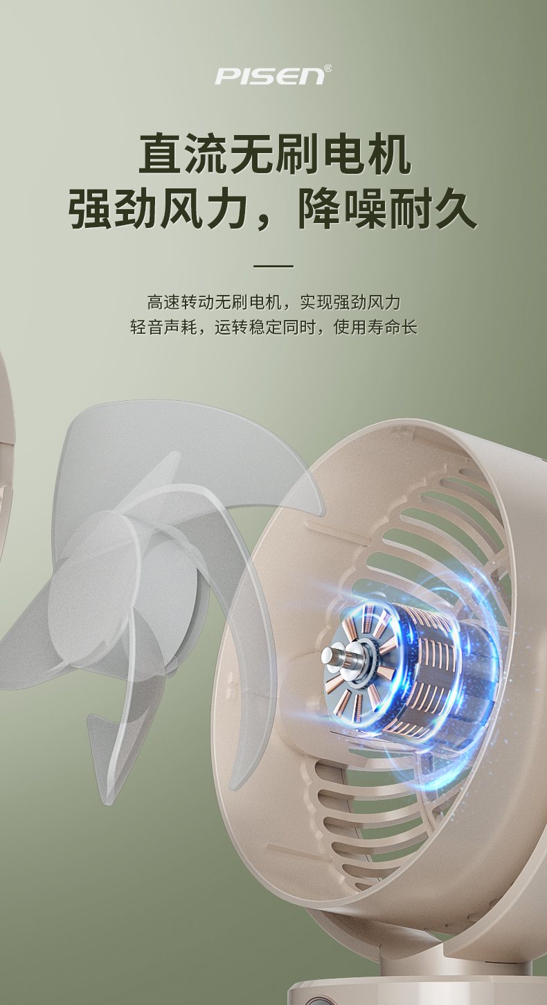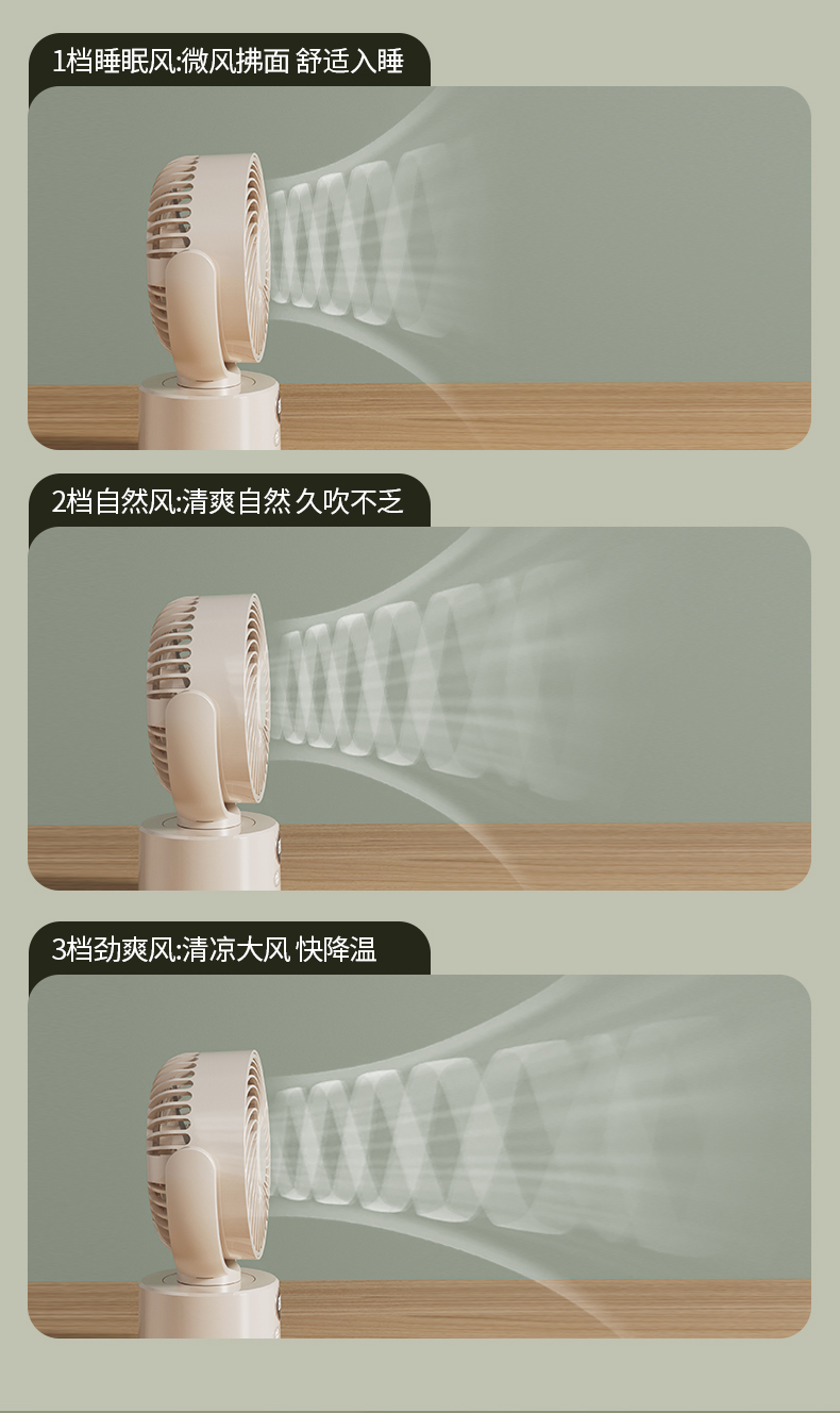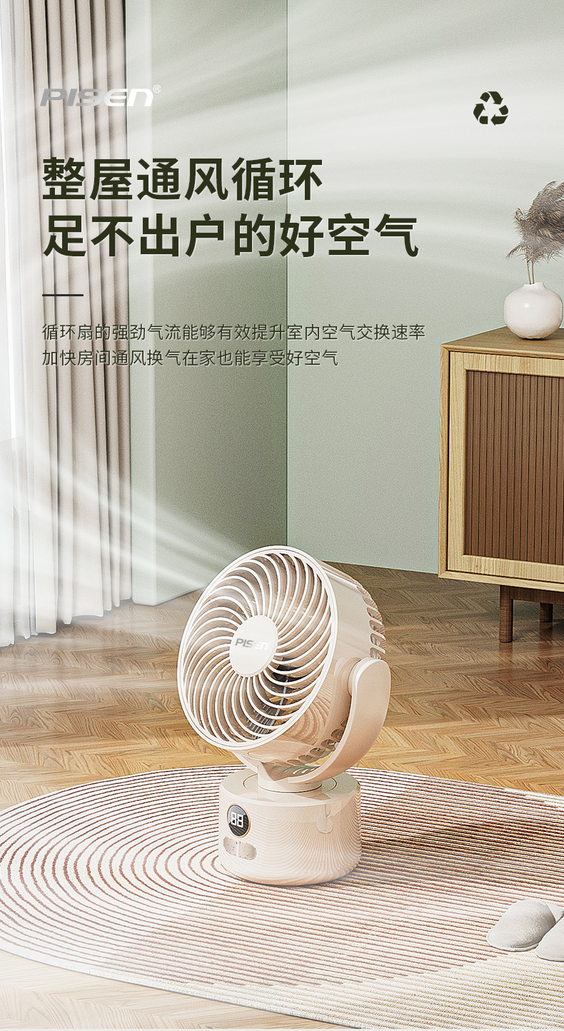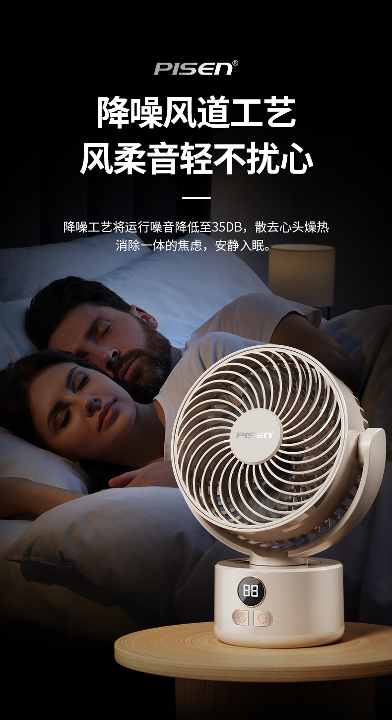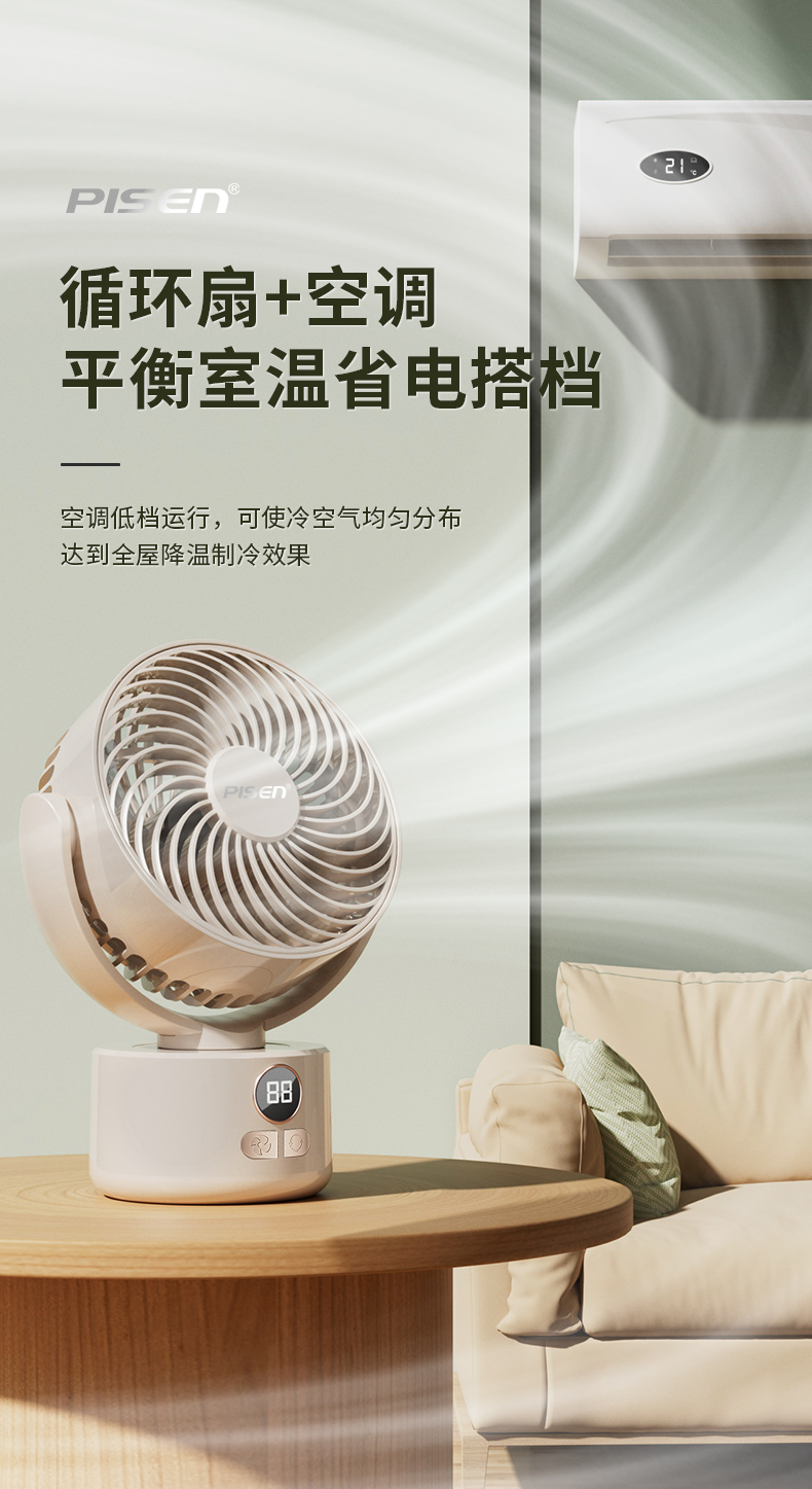 品胜 摇头数显桌面风扇 小型家用usb可充电学生宿舍台式便携循环扇超长续航办公桌循环台扇