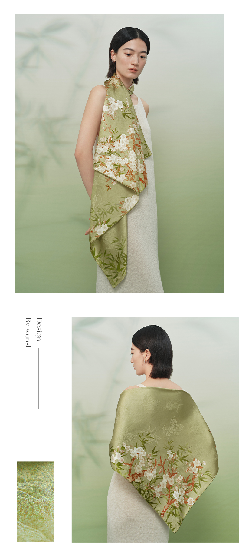 万事利 桑蚕丝真丝丝巾礼盒 竹韵雅颂