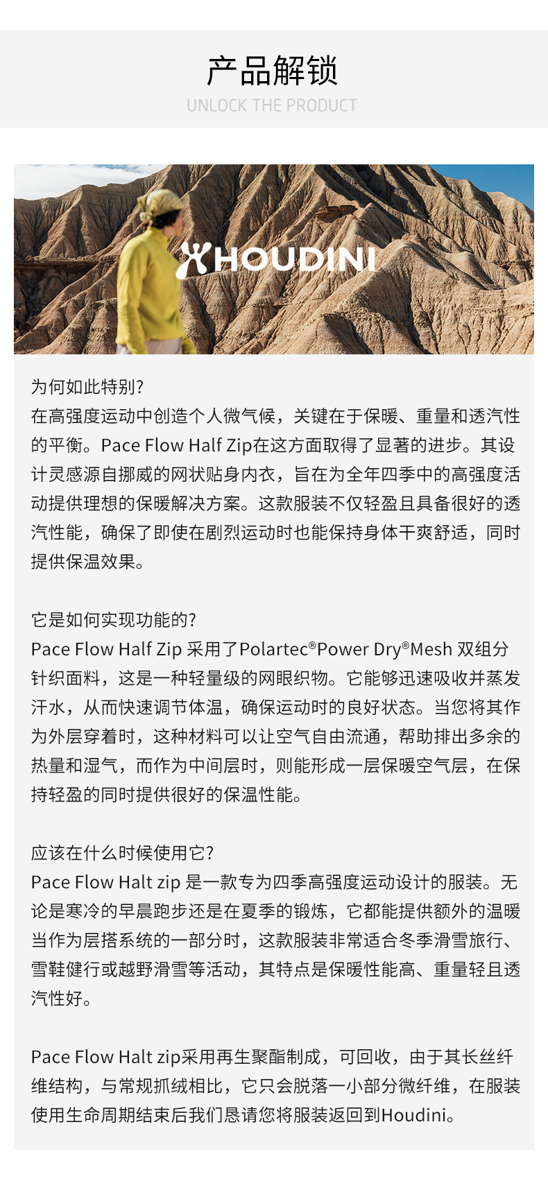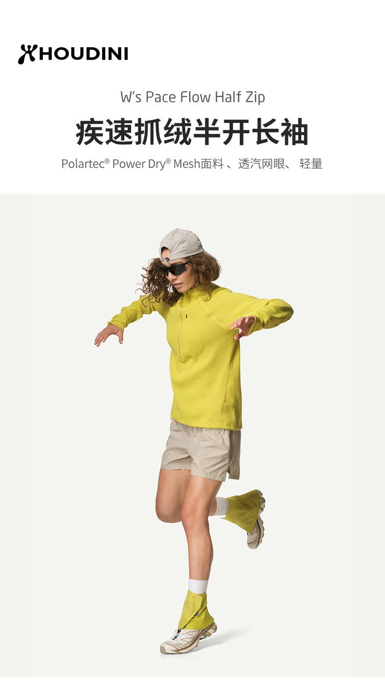 HOUDINI胡丁尼Pace Flow疾速女网眼透气立领抓绒衣外套 830046