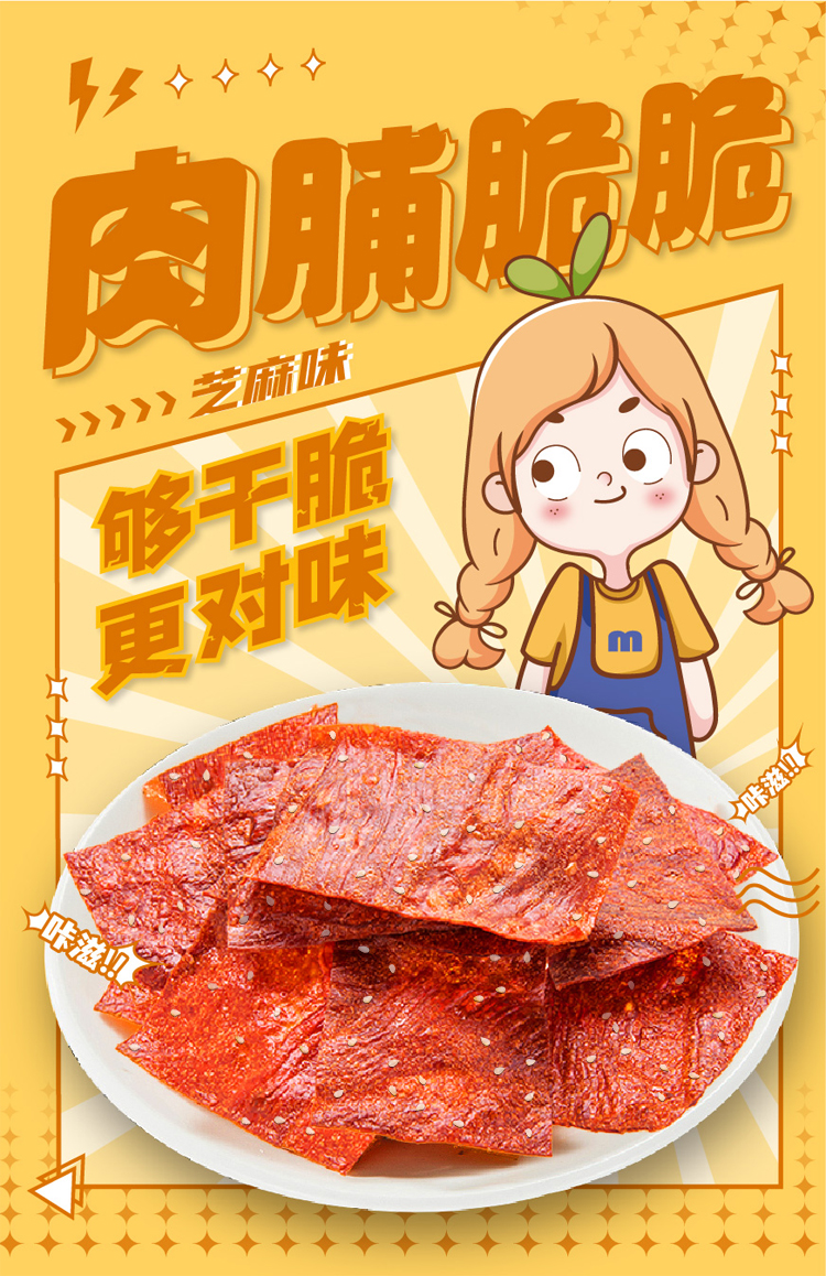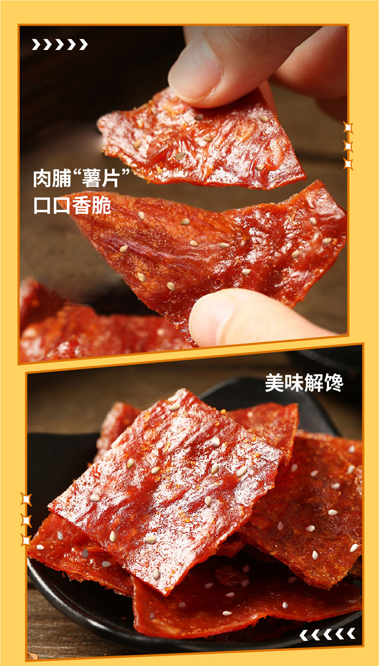 【休闲食品】唯新 张萌萌 48g肉脯脆脆芝麻味*2袋+52g高蛋白猪肉脯(麻辣味)*1袋 组合装)