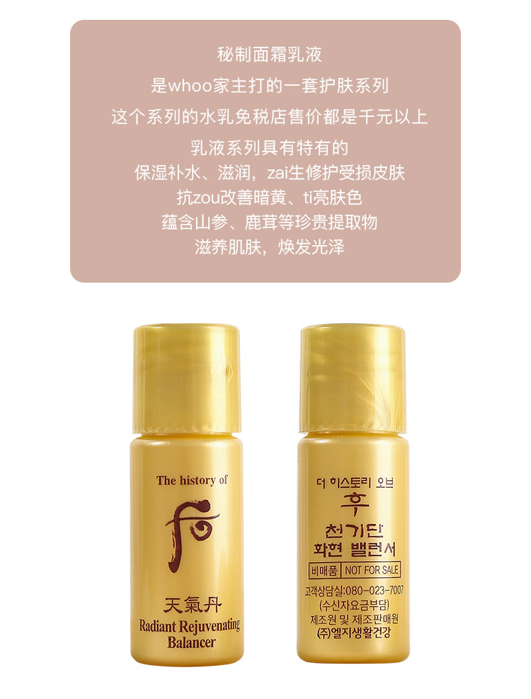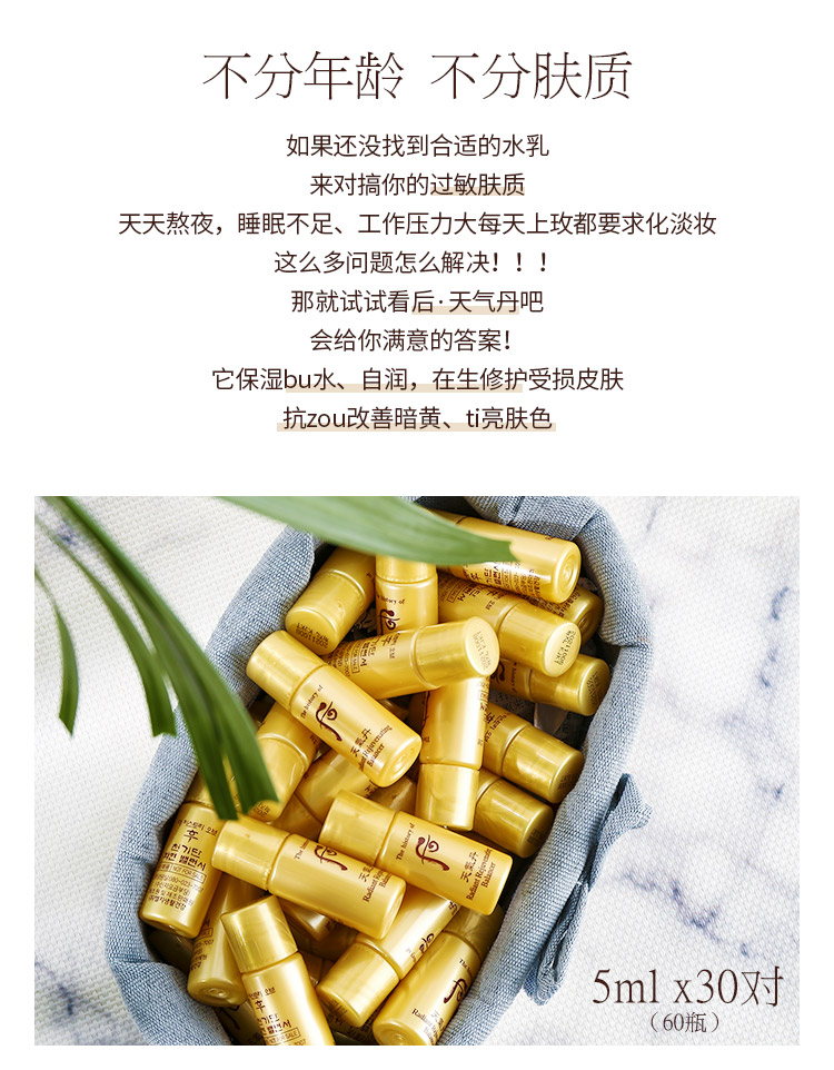 【5ml*60瓶】韩国后Whoo天气丹水乳小样5ML华炫补水保湿抗皱护肤品套装30对60瓶