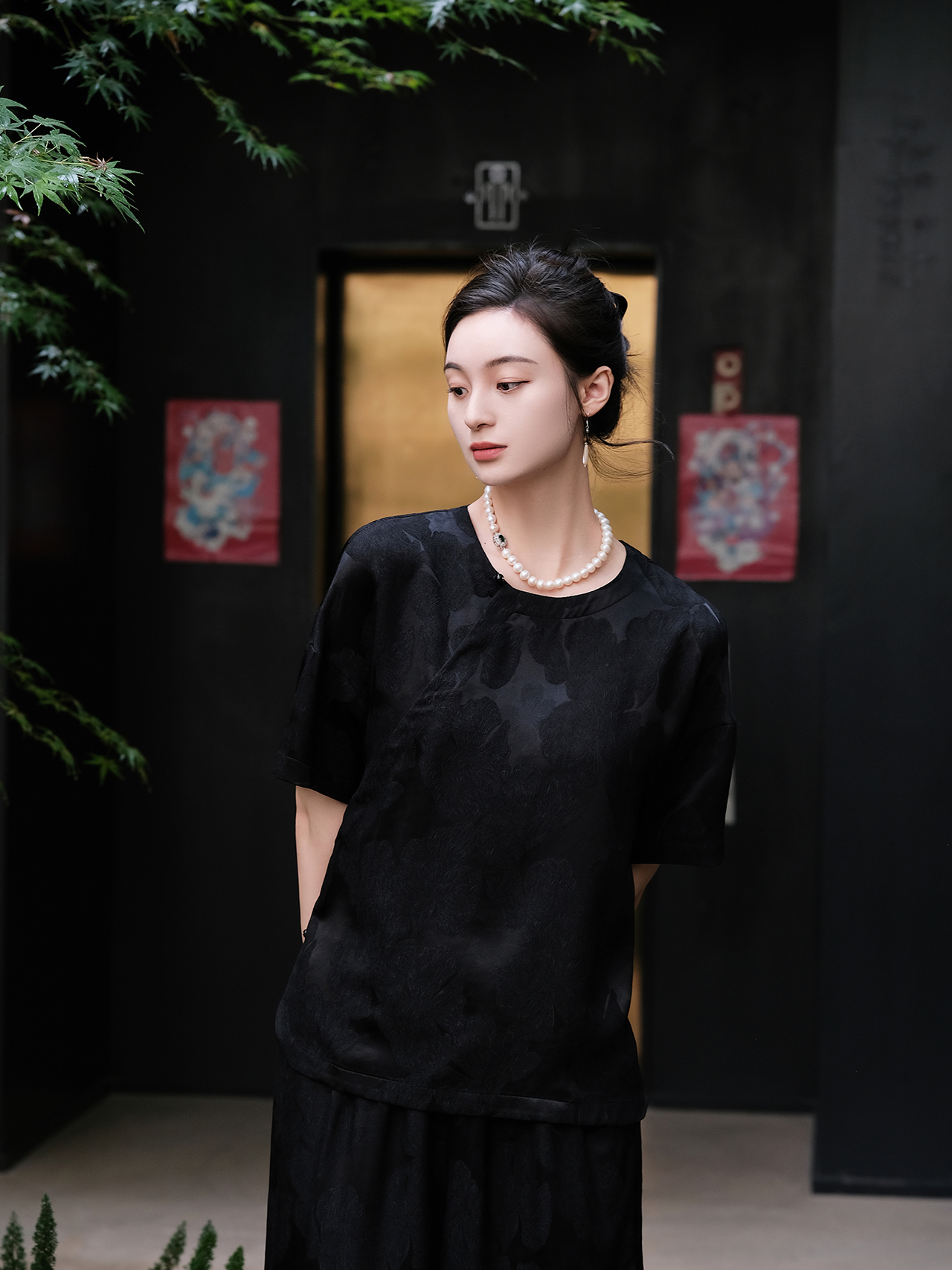 盛唐婧 |真丝冠乐皱烟墨上衣