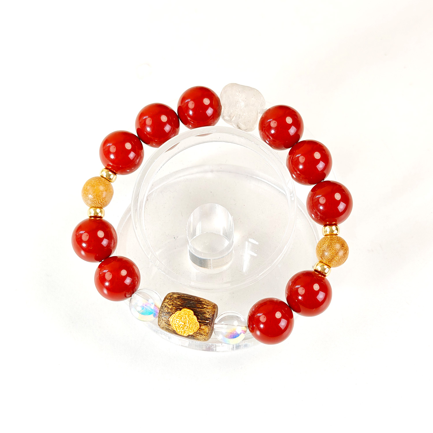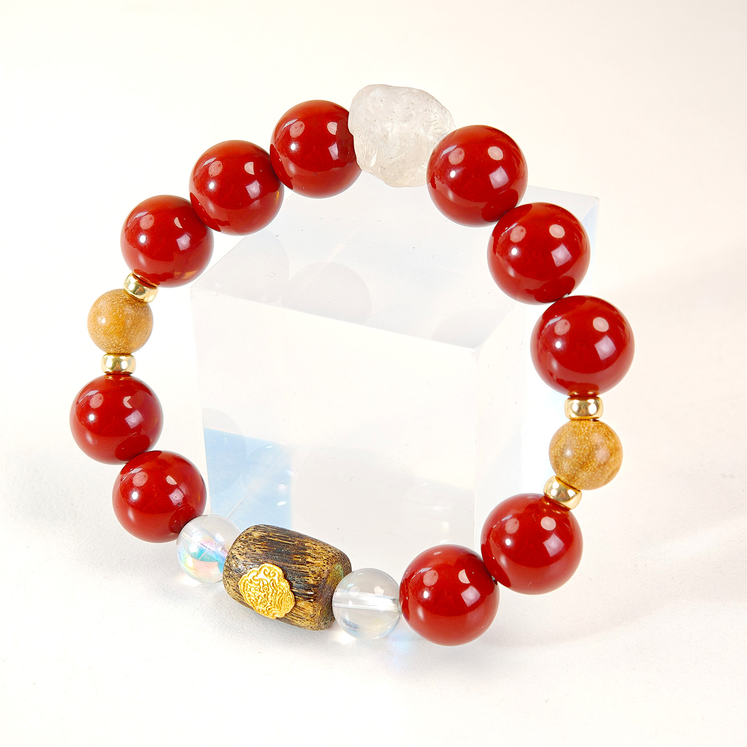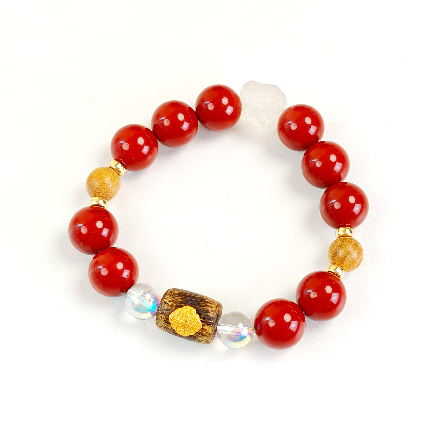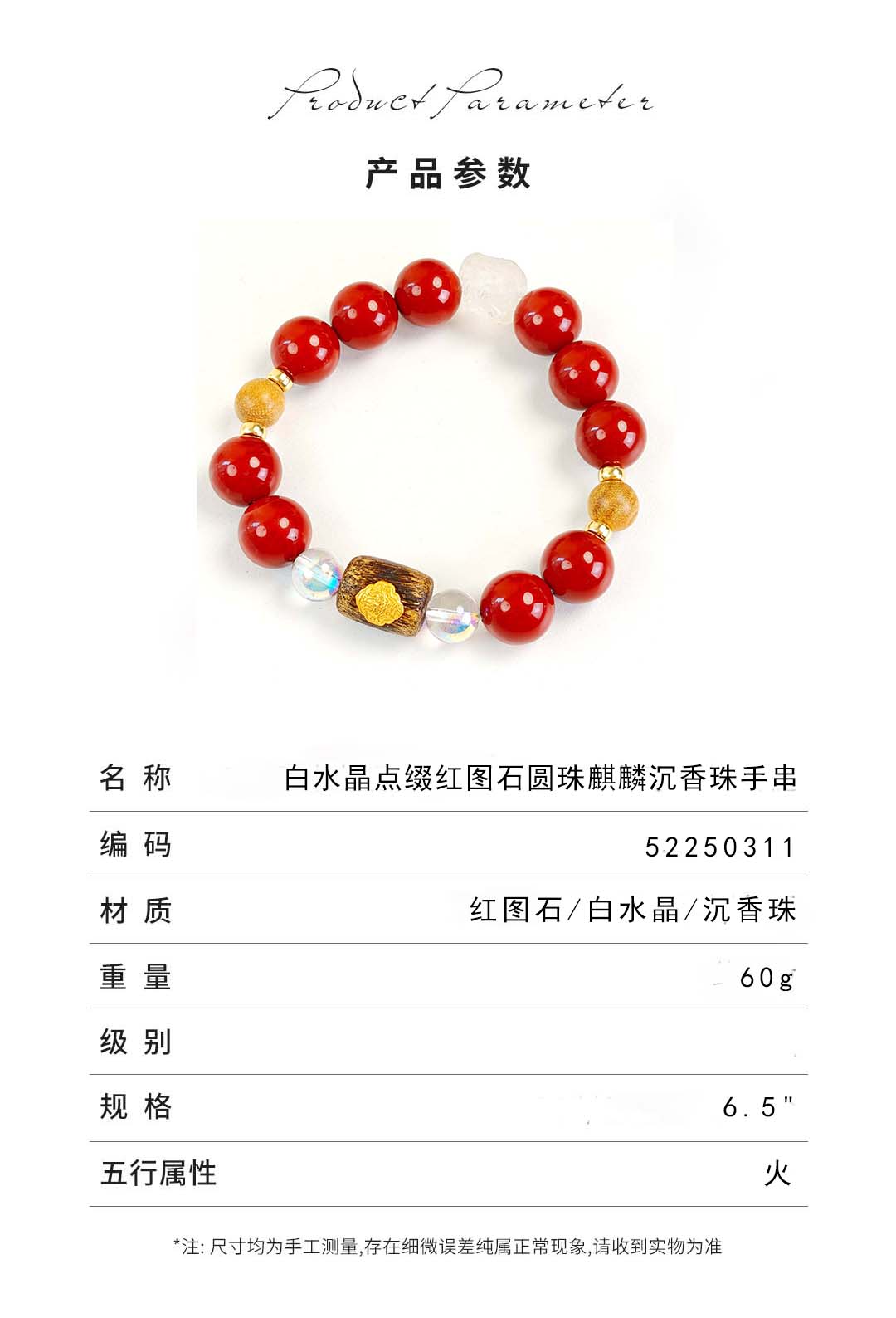MELI&MOLI|白水晶点缀红图石圆珠麒麟沉香珠手串-五行之火