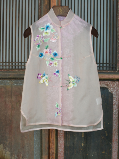 盛唐牡丹|真丝绡手绣马甲-淡粉色