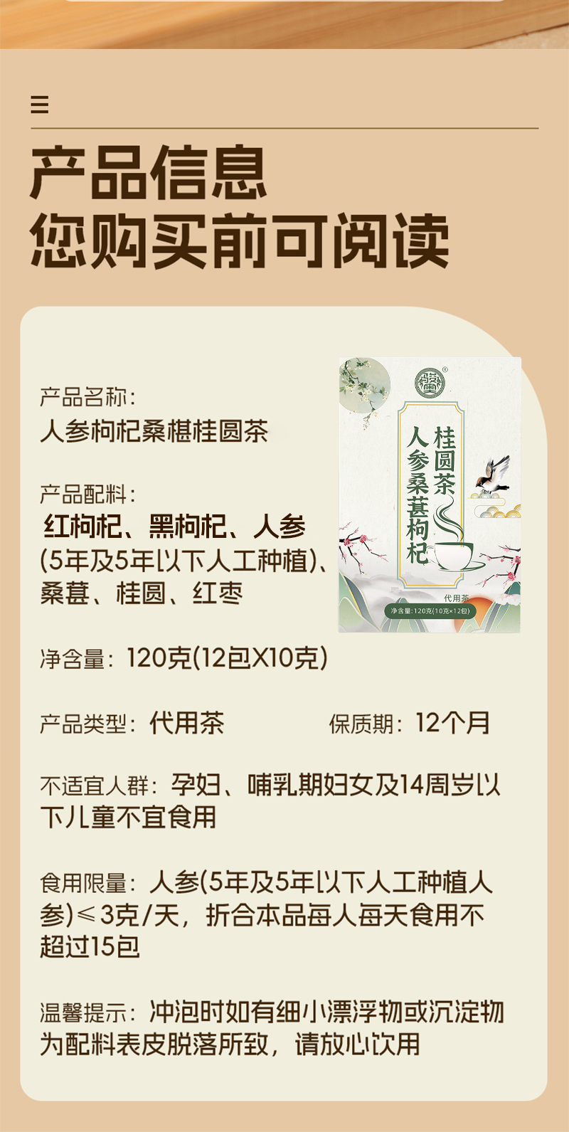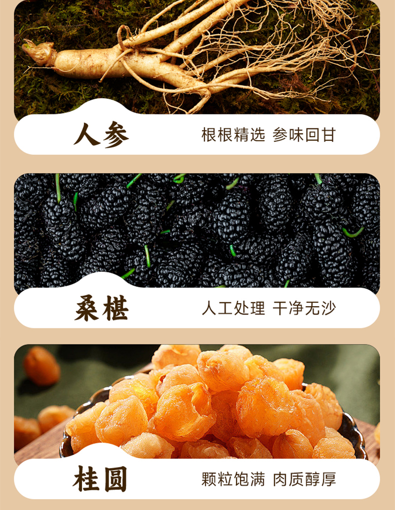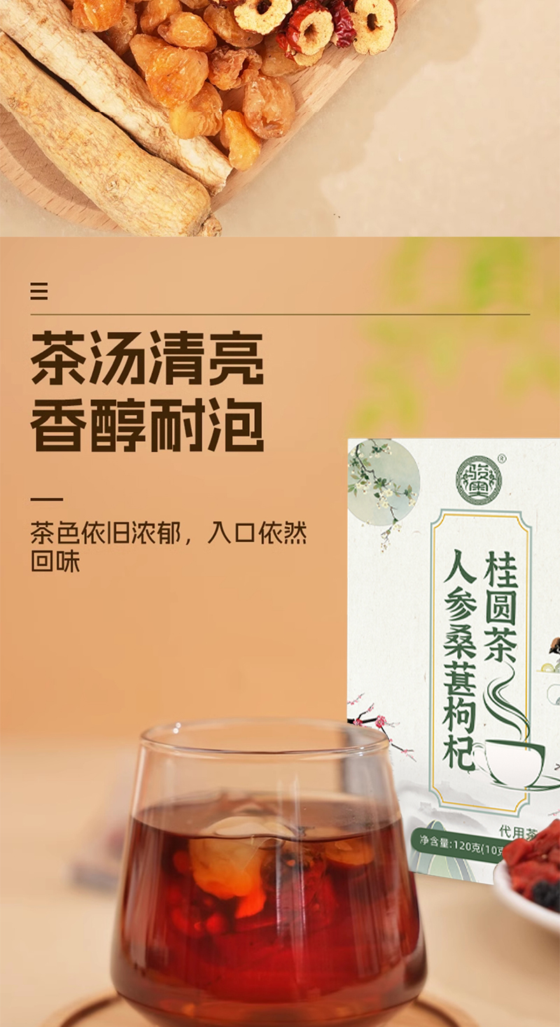 【人参枸杞桑葚桂圆茶】 足年人参 甄选好料 元气养颜茶