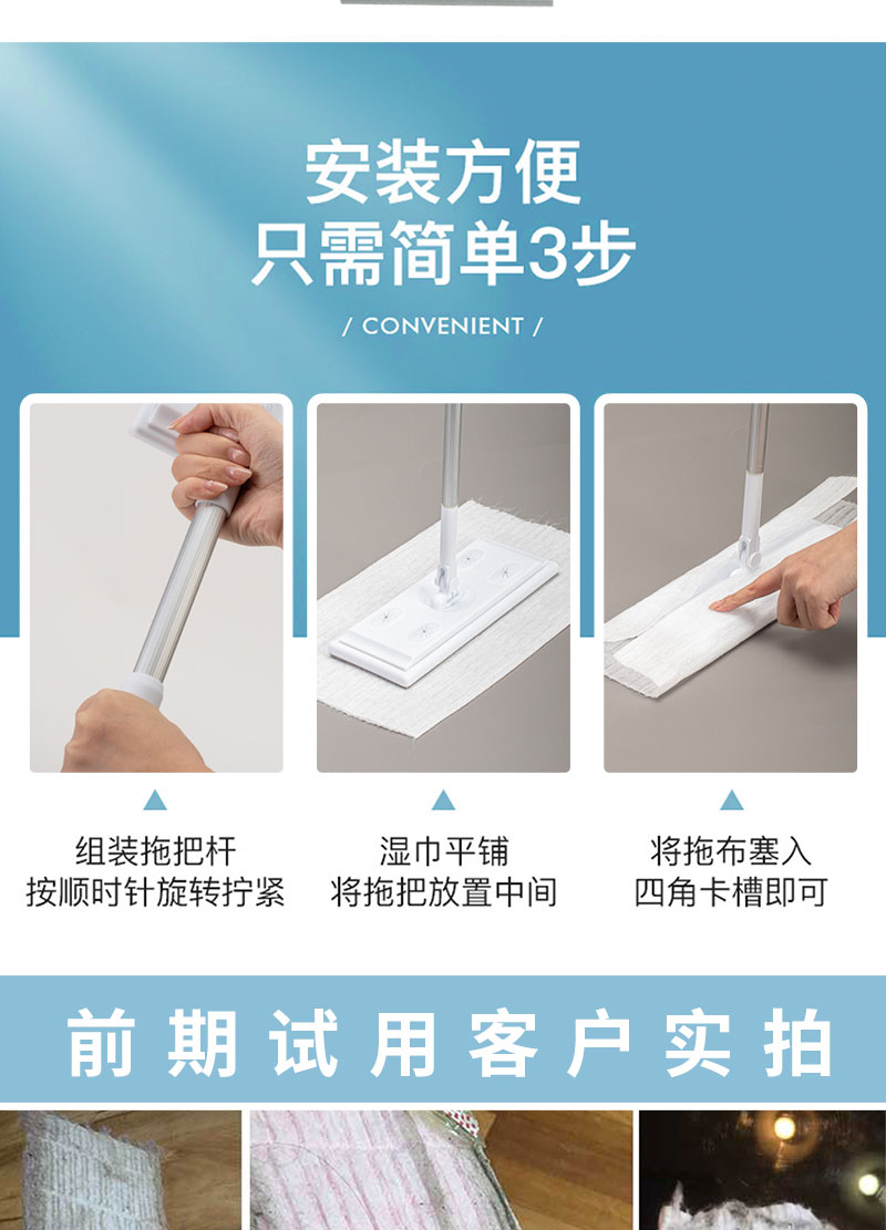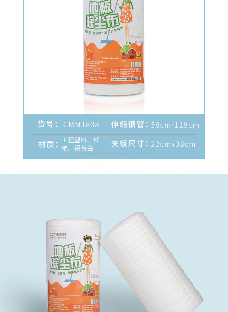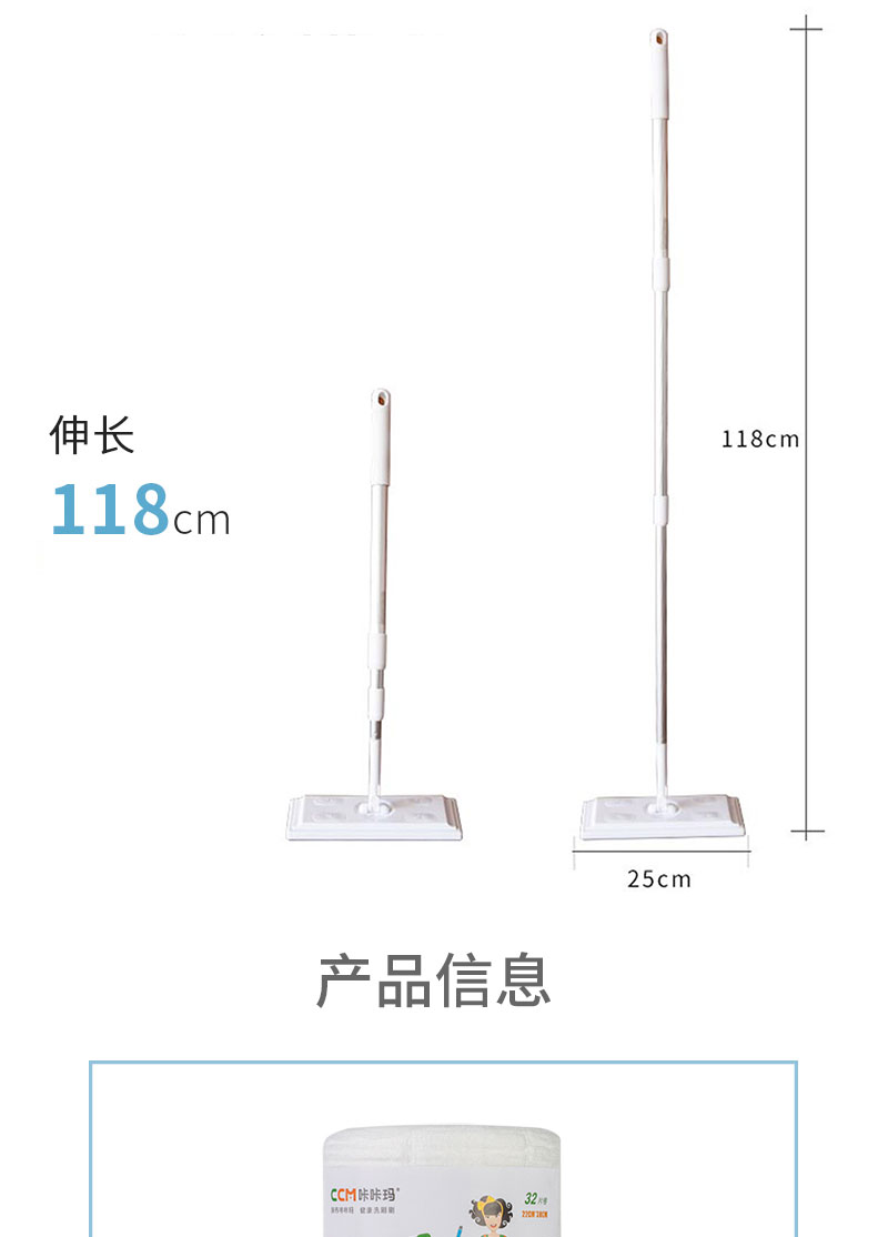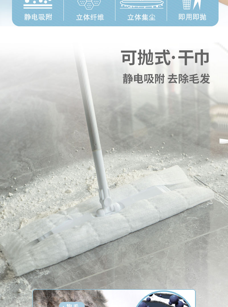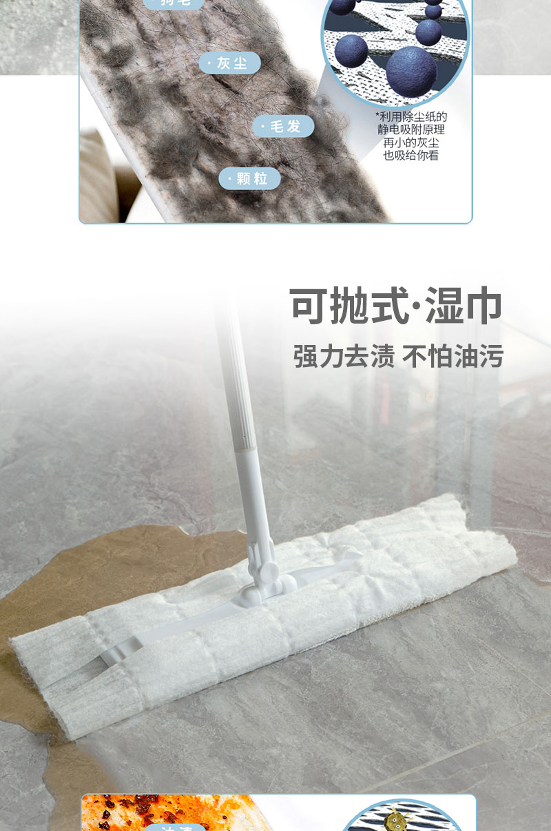 【咔咔玛】静电除尘纸一次性拖把布32张/卷 吸头发吸灰尘吸宠物毛发