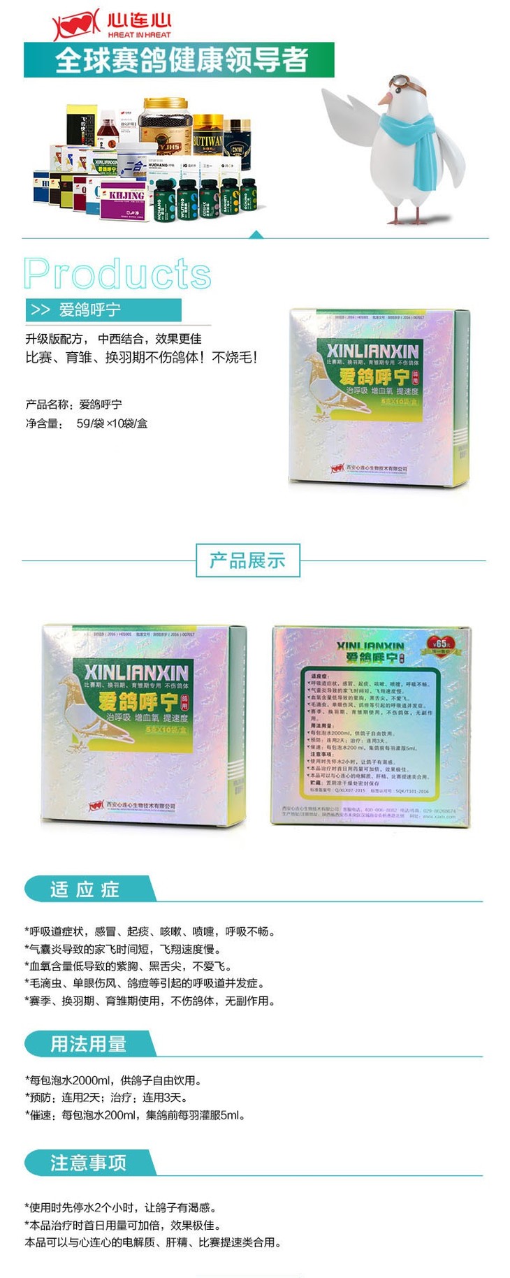 【爱鸽呼宁】 比赛、育雏、换羽期不伤鸽体!不烧毛!(心连心)