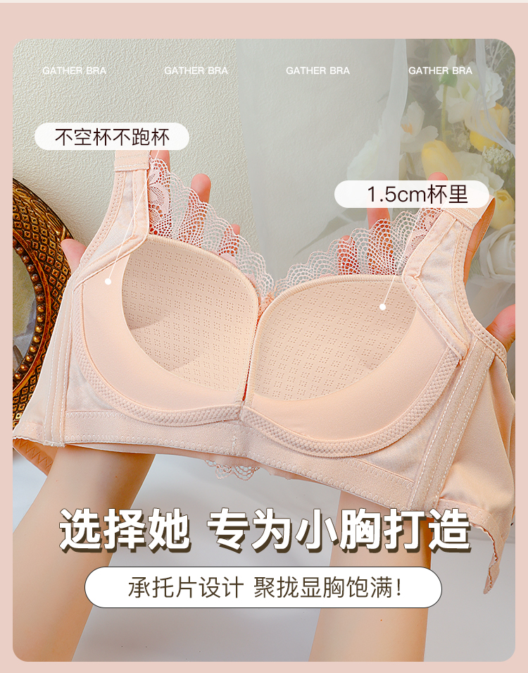 【298选3】A2-💟【A-B杯】【小胸聚拢 透气薄杯】性感蕾丝内衣女调整型收副乳夏季薄款文胸 凝露秋霞