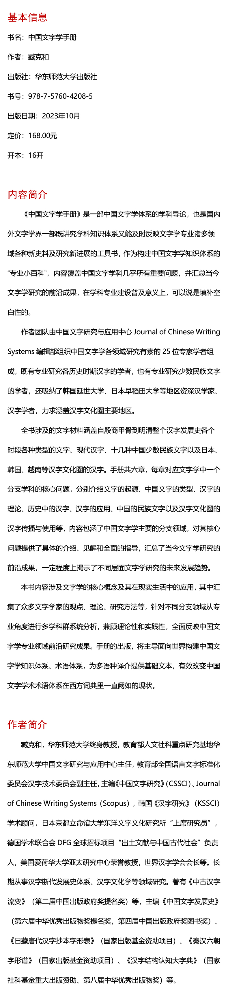 中国文字学手册 中国文字发展史简明版本 臧克和 精装