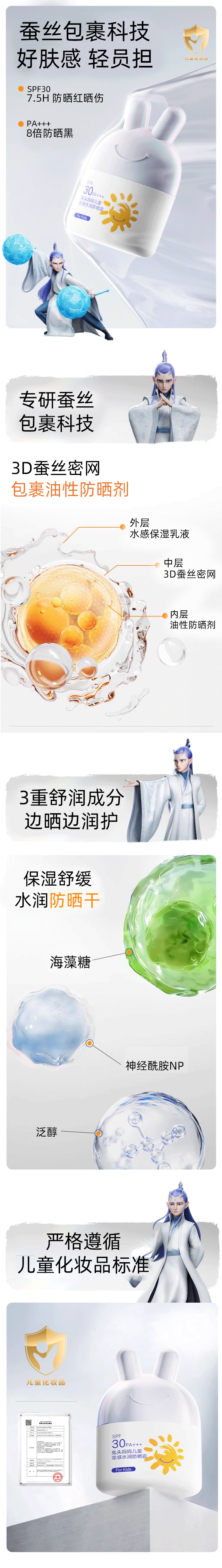 兔头妈妈零感水润儿童防晒霜SPf30PA+++(敖丙款)【30174244】