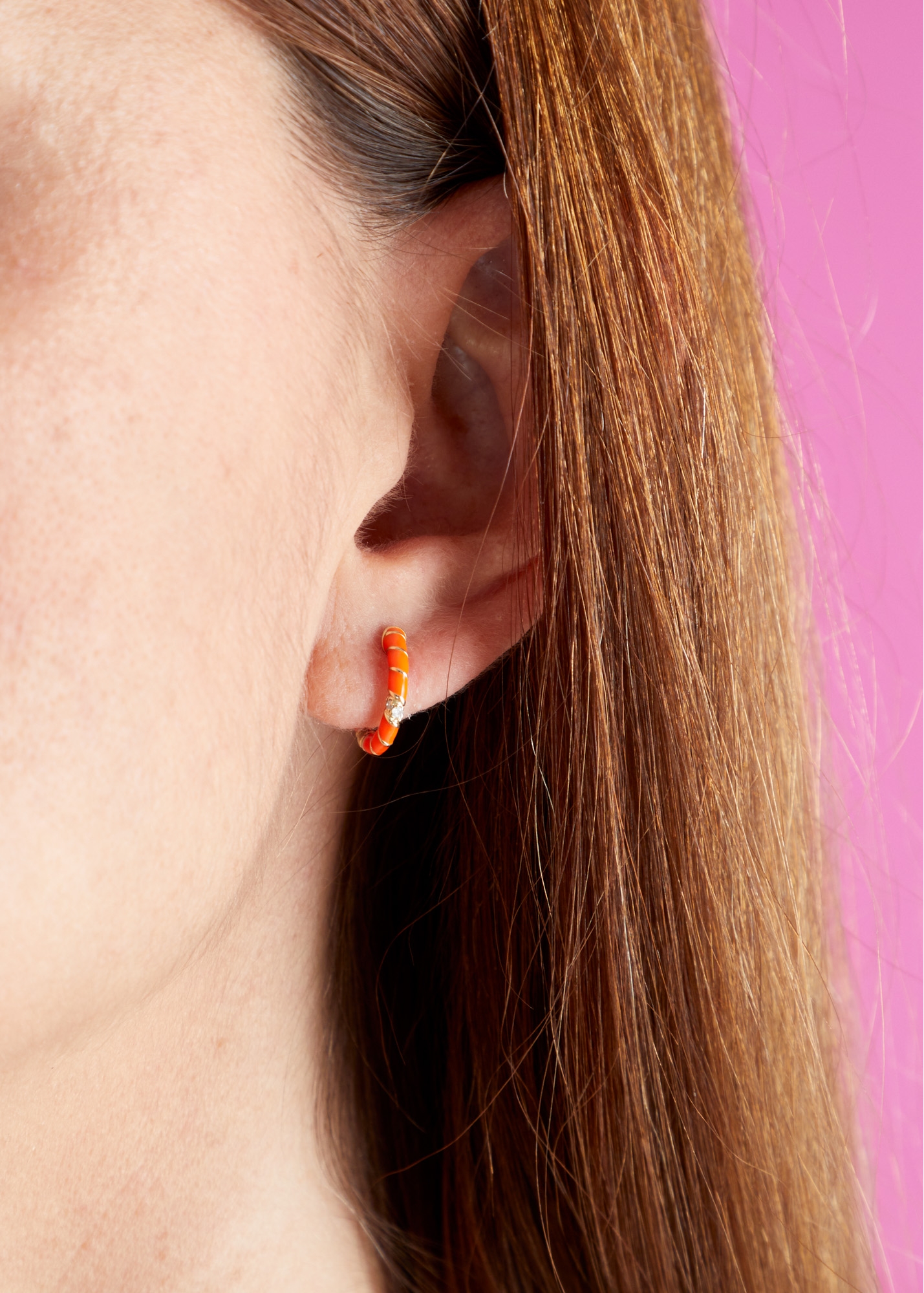订购10周到|Yvonne Leon-Les Torsades-9K黄金 珐琅 钻石 麻花 耳环(橙色)[法国设计师]