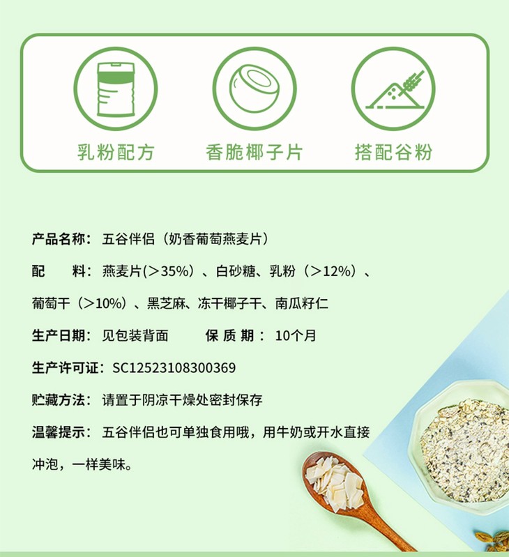 轻养彩虹奶香葡萄燕麦片五谷伴侣方便速食可做伴侣可单独食用