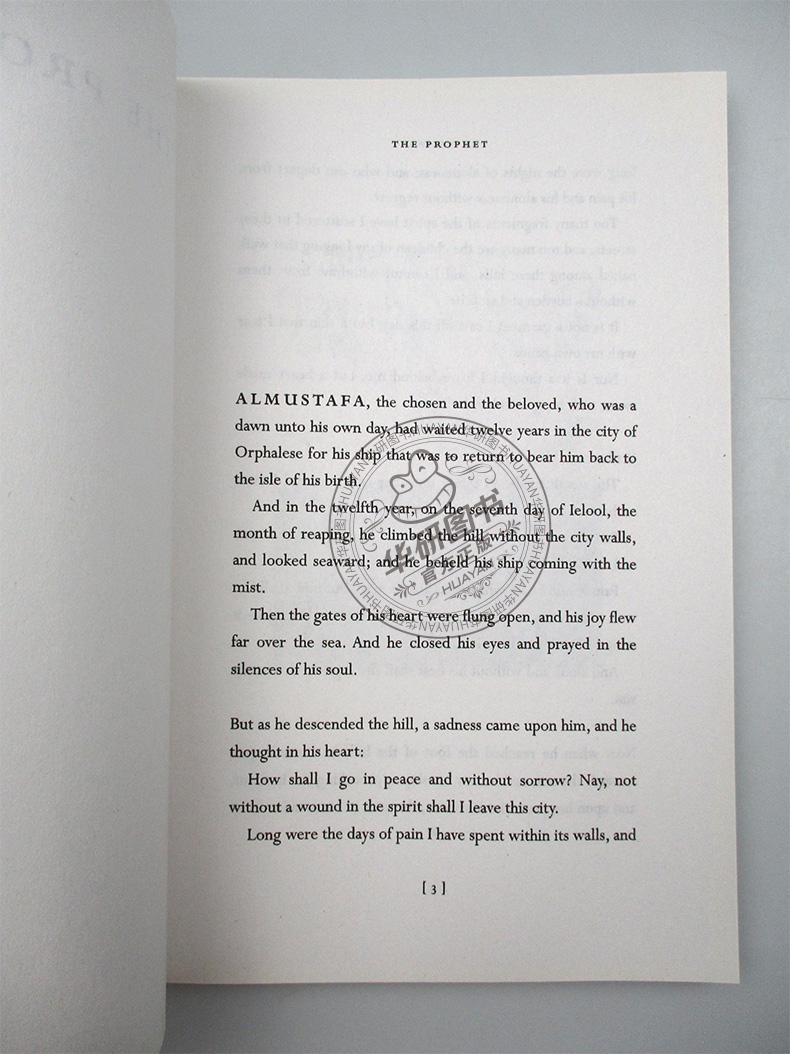 ALMUSTAFA, the chosen and the beloved, who was a dawn unto his own day, had waited twelve years in the city of Orphalese for his ship that was to return to bear him back to the isle of his birth.