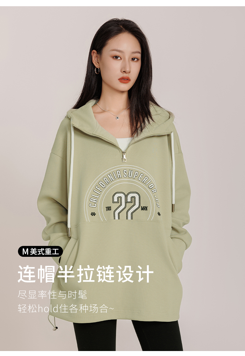 weyo女款珠地美式重工立体绣廓形连帽卫衣882021 商品图3