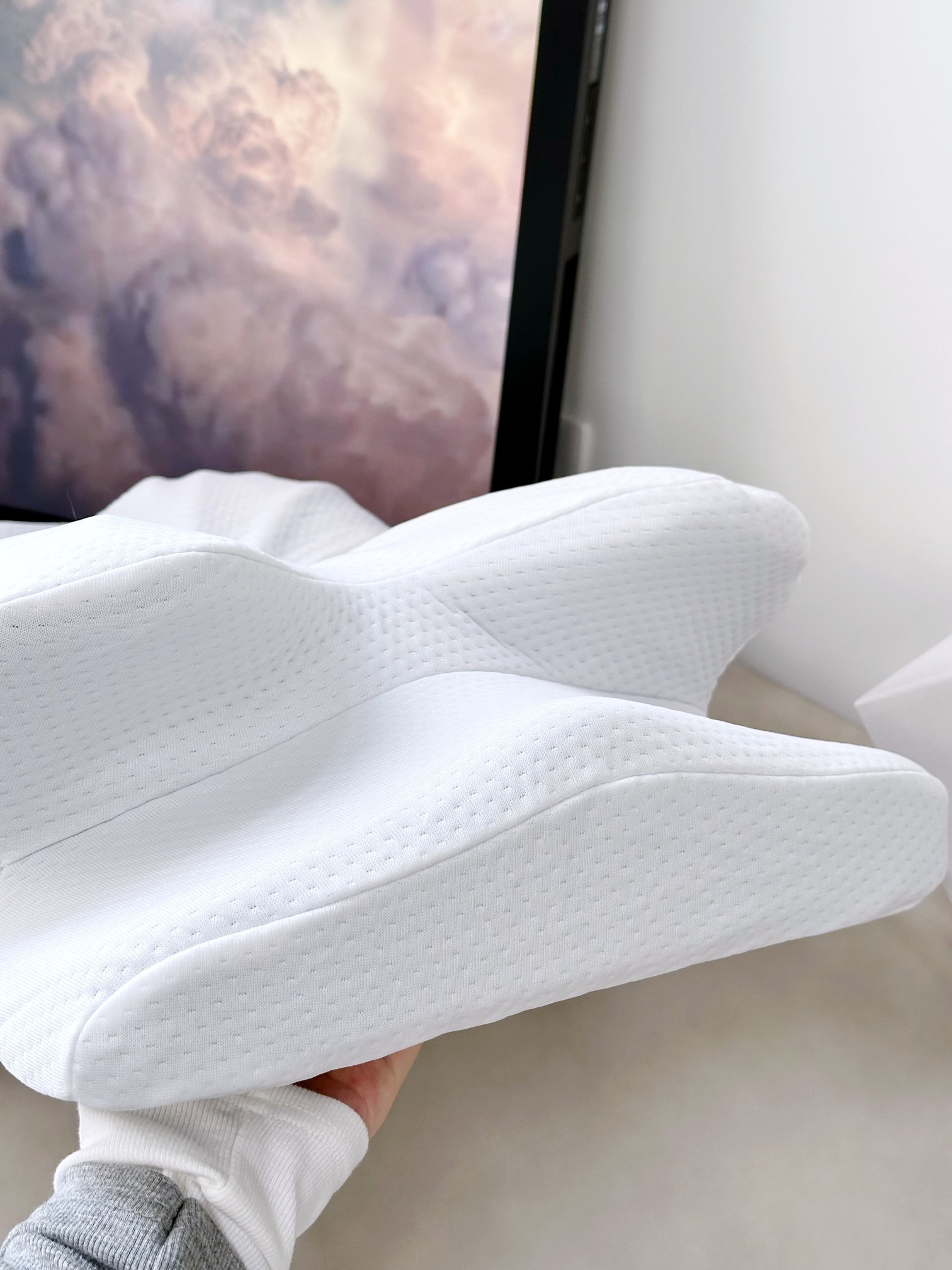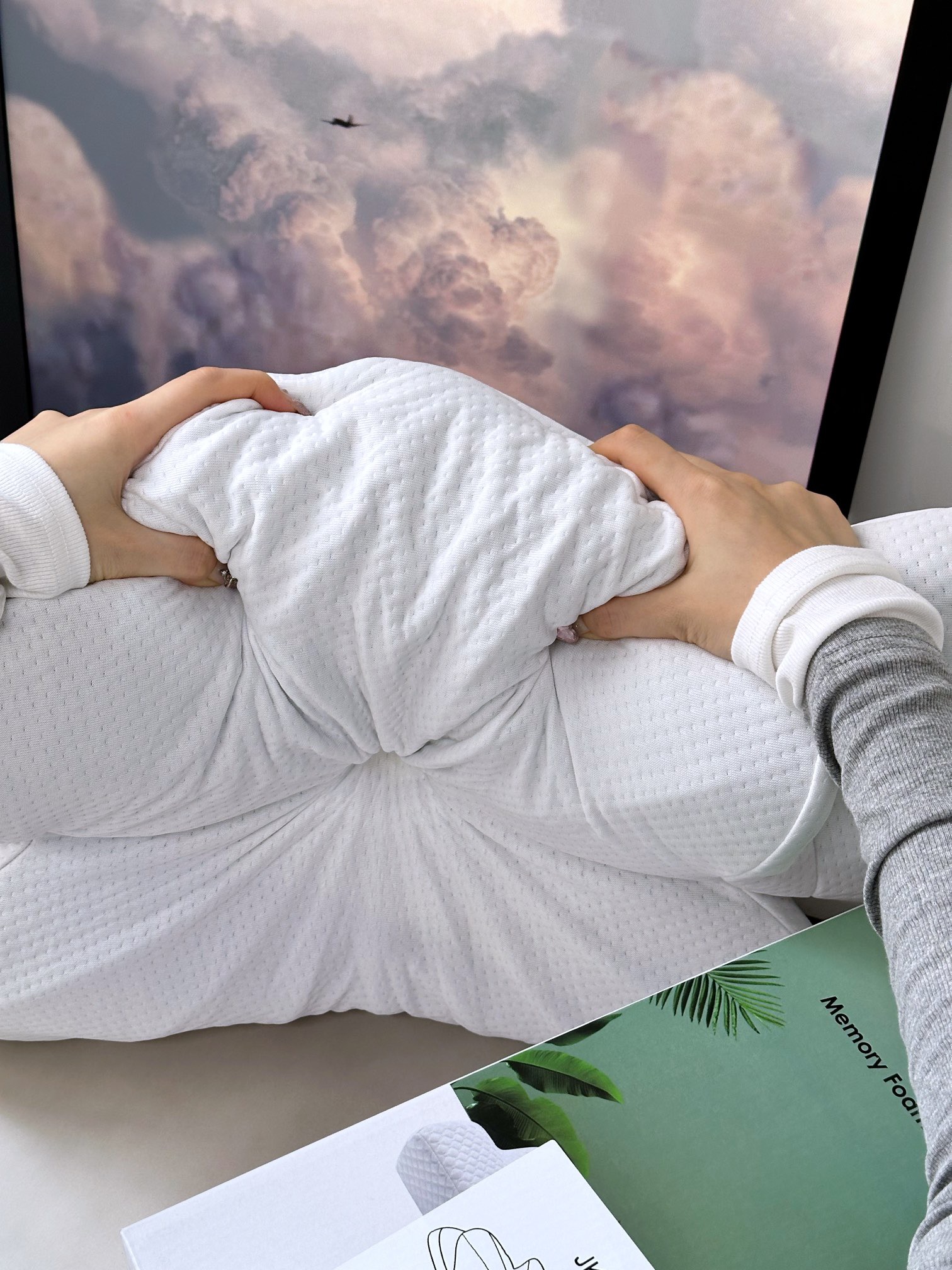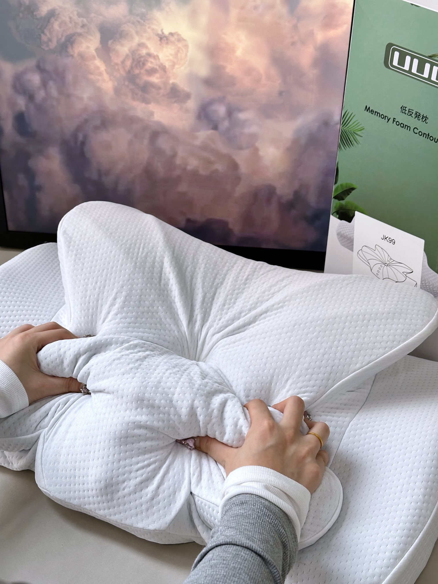 中间微凹处以及凹下圆弧为头部 颈部提供更正确的着力点整个头肩颈都有包裹感紧密而温暖100高品质聚酯纤维像云朵织成的布料柔软而细腻触感舒服到炸裂强透气密集网眼吸湿透气性很好睡起来清清爽爽加上厚实软夫夫的手感抱着看电视不要太幸福!亲妈渠道 老粉都知道!