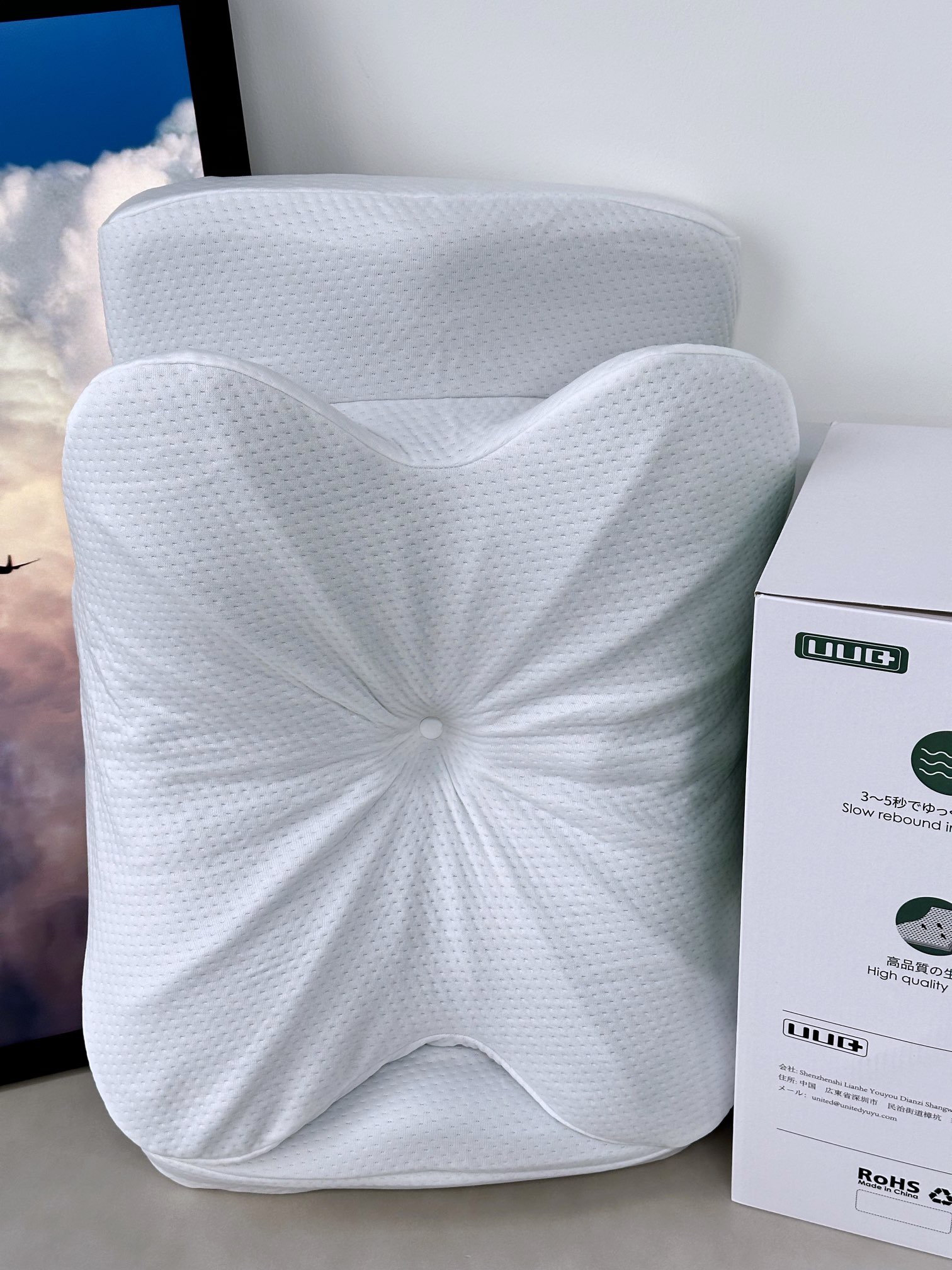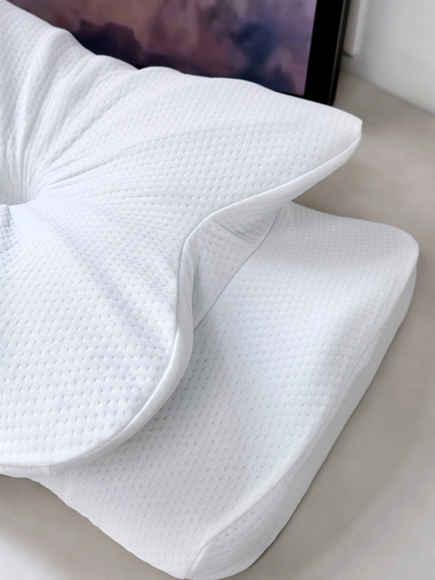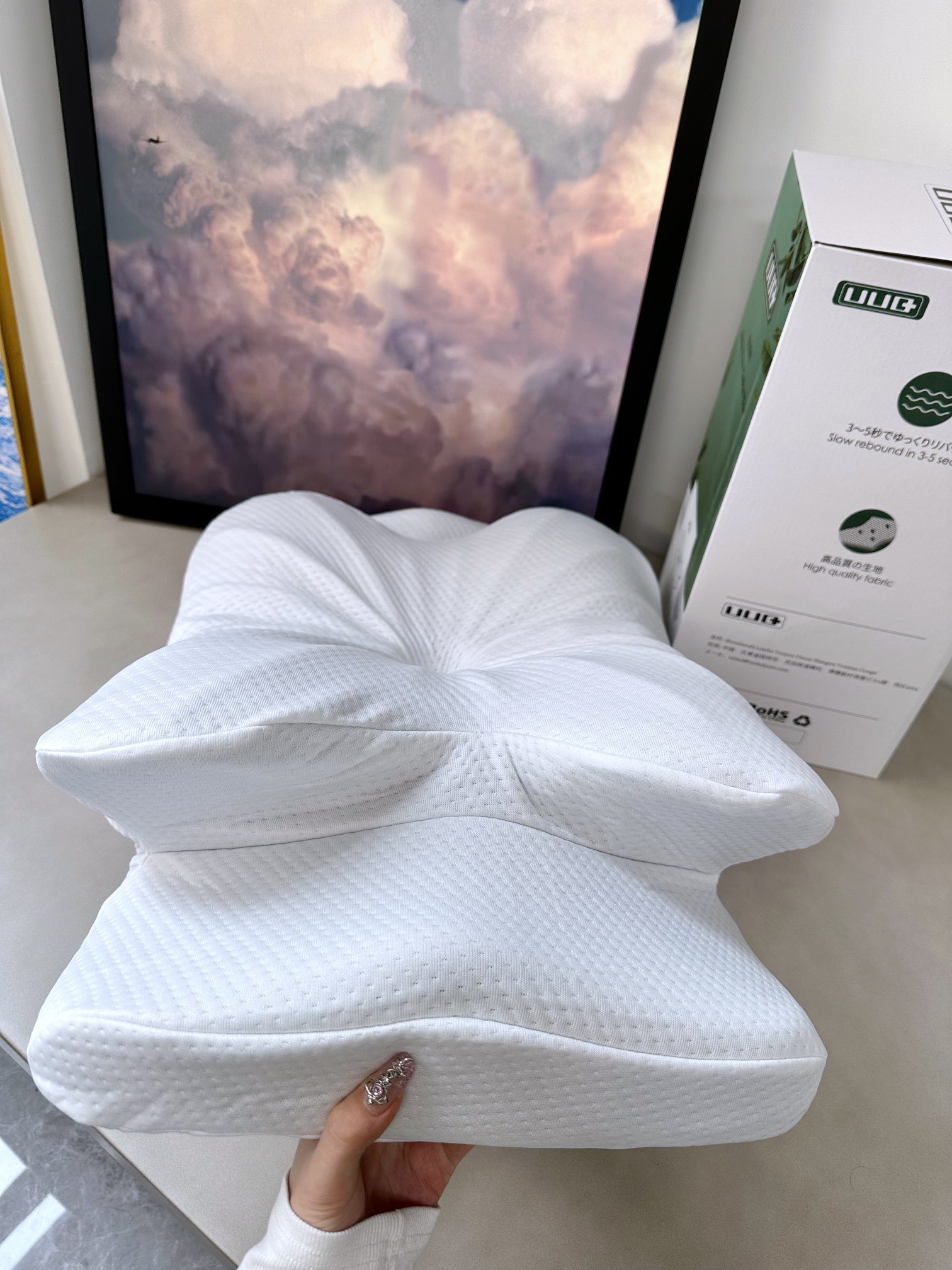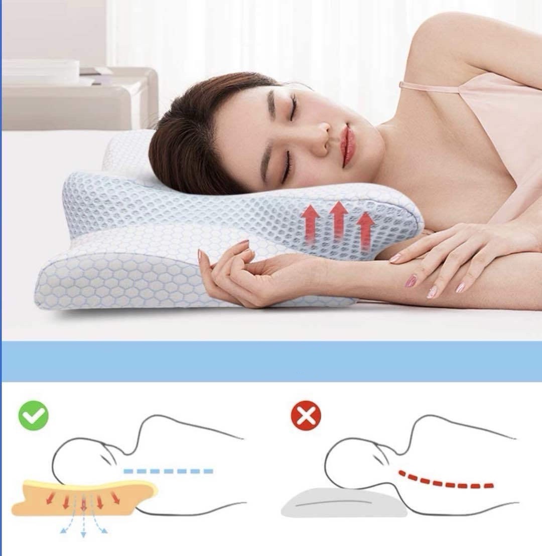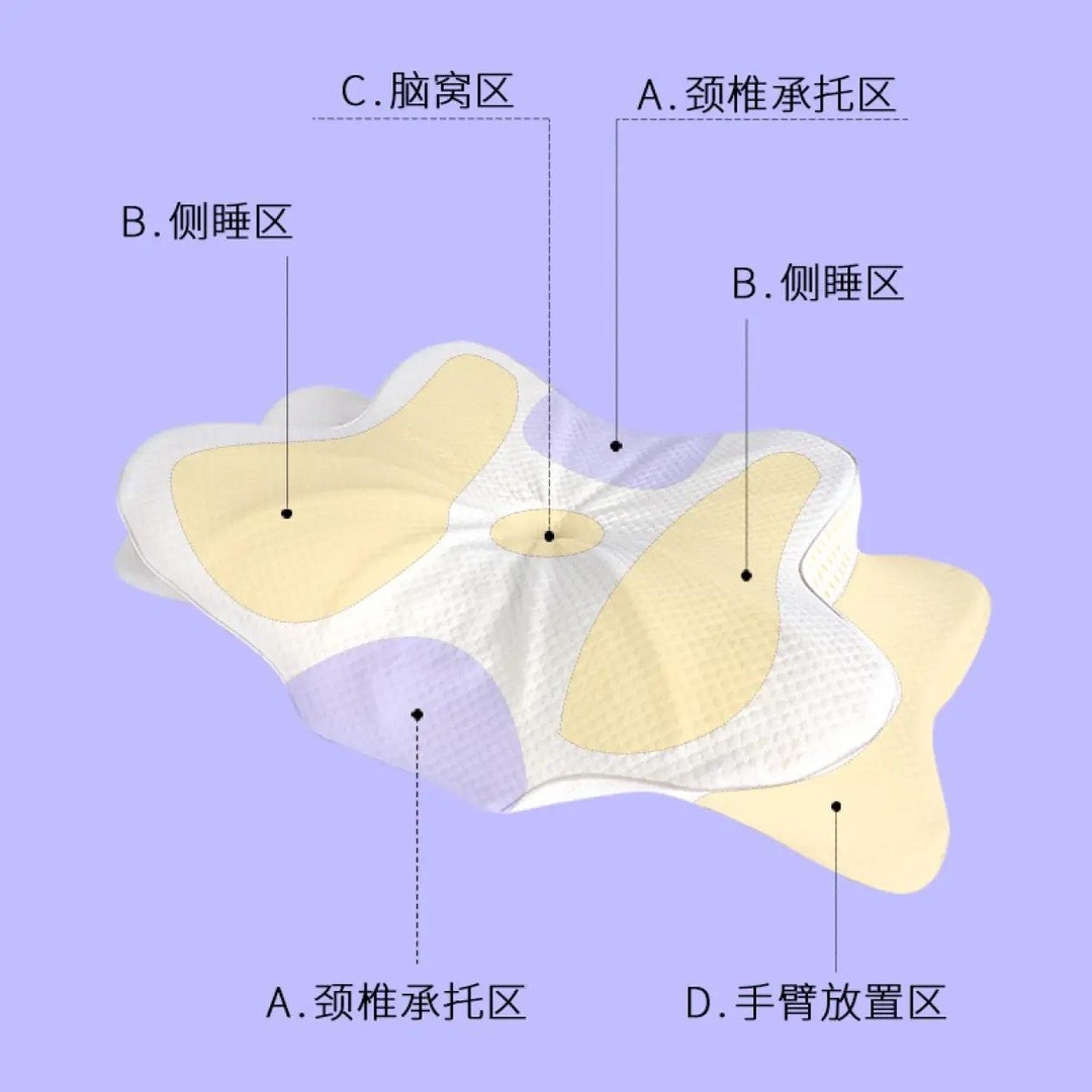 正睡 侧睡 趴着睡 都好睡 头部 颈部 肩部 腰部重心保持平衡,从而使睡眠质量提高,减轻身体压力负担,每天都能轻松从容地起床。仰睡时,可以托住头部令到头部不会左右大幅度偏向,今你不会落枕,有更好的睡眠质量。侧睡可减少背部压力,立体蝴蝶枕