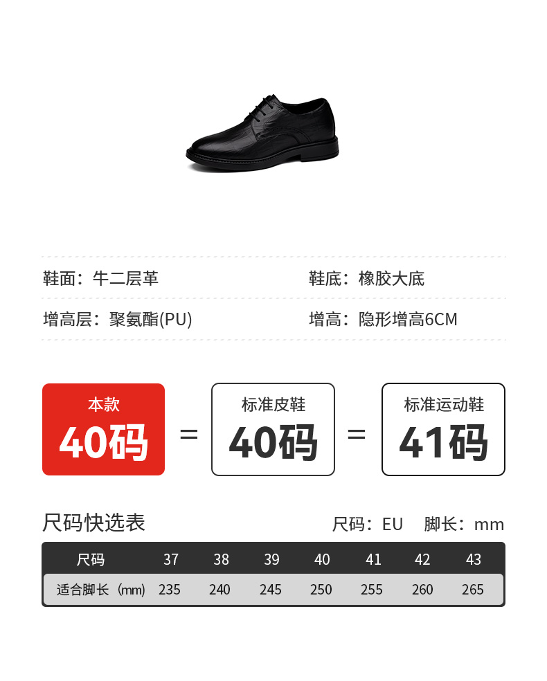 内增高皮鞋男休闲男士正装商务隐形增高鞋真皮新郎婚鞋高级感鞋子