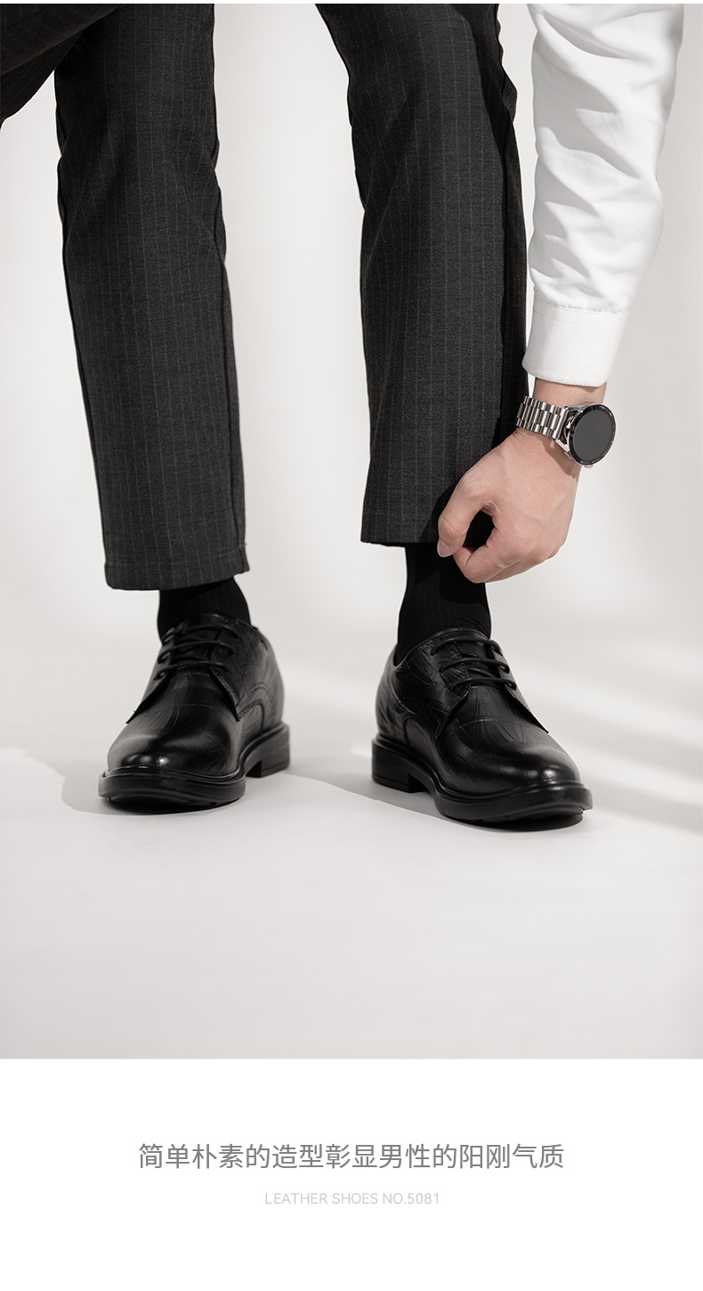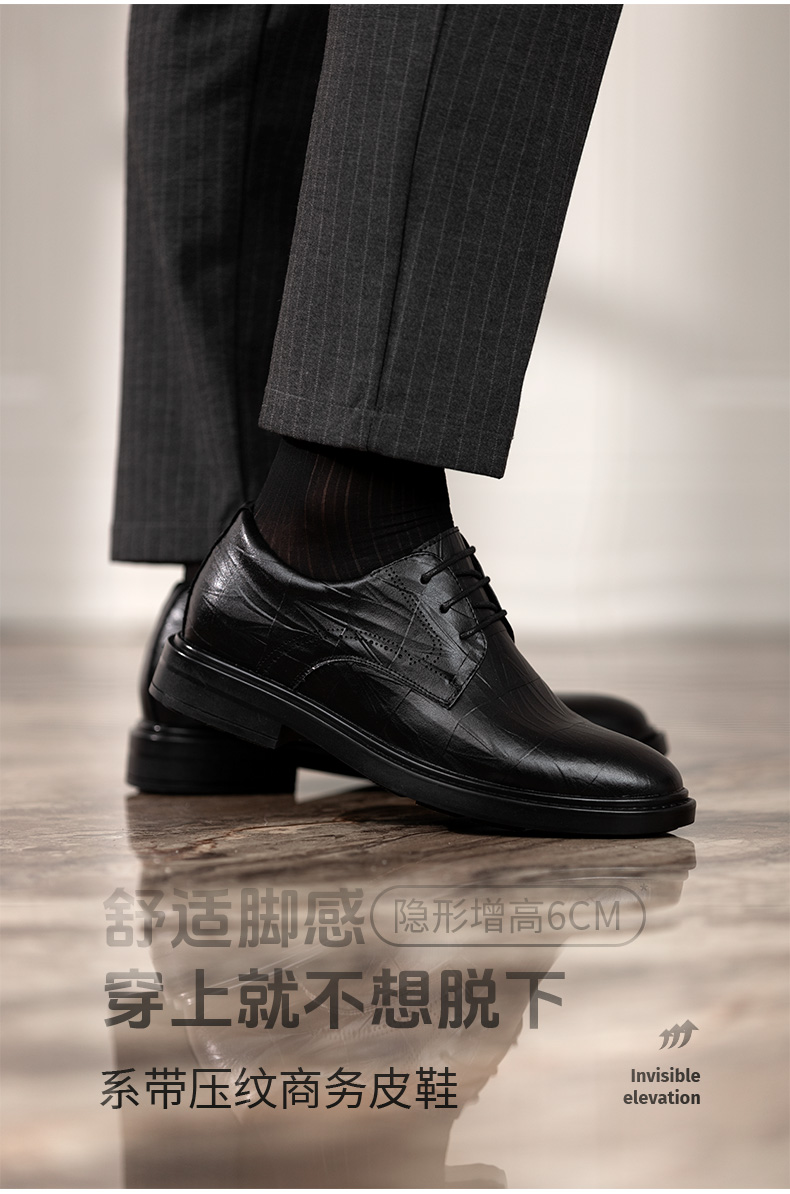 男士商务皮鞋男结婚正装皮鞋内增高6cm休闲皮鞋黑色伴郎
