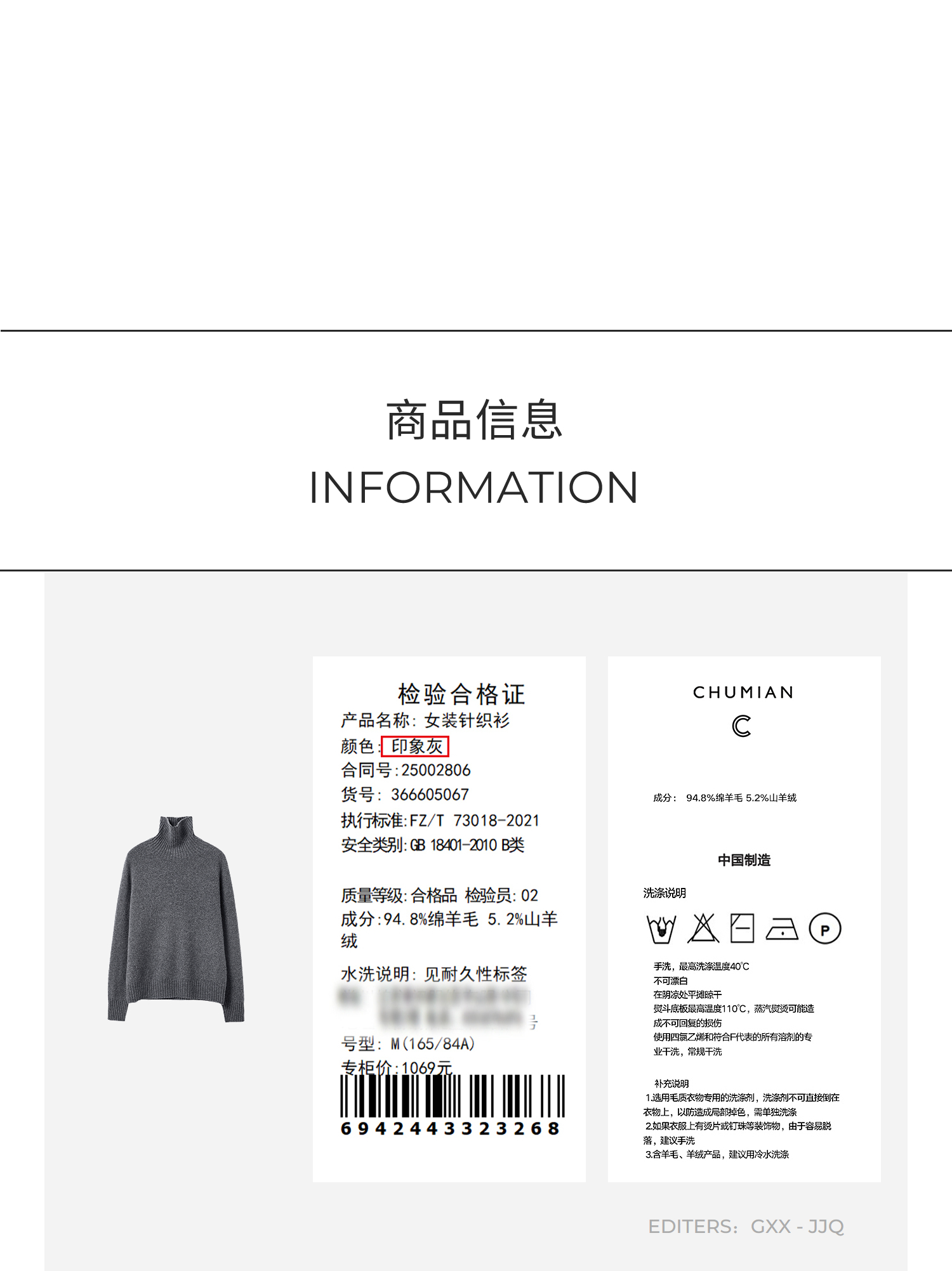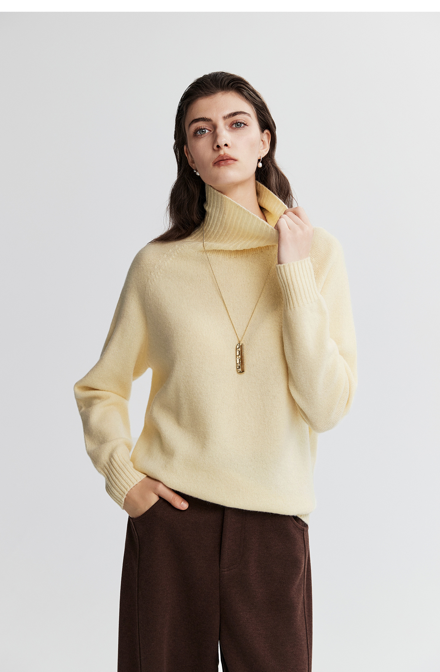 棉仓366605067-高领羊毛含羊绒套头毛衣女25秋冬微宽松针织上衣宽罗纹设计