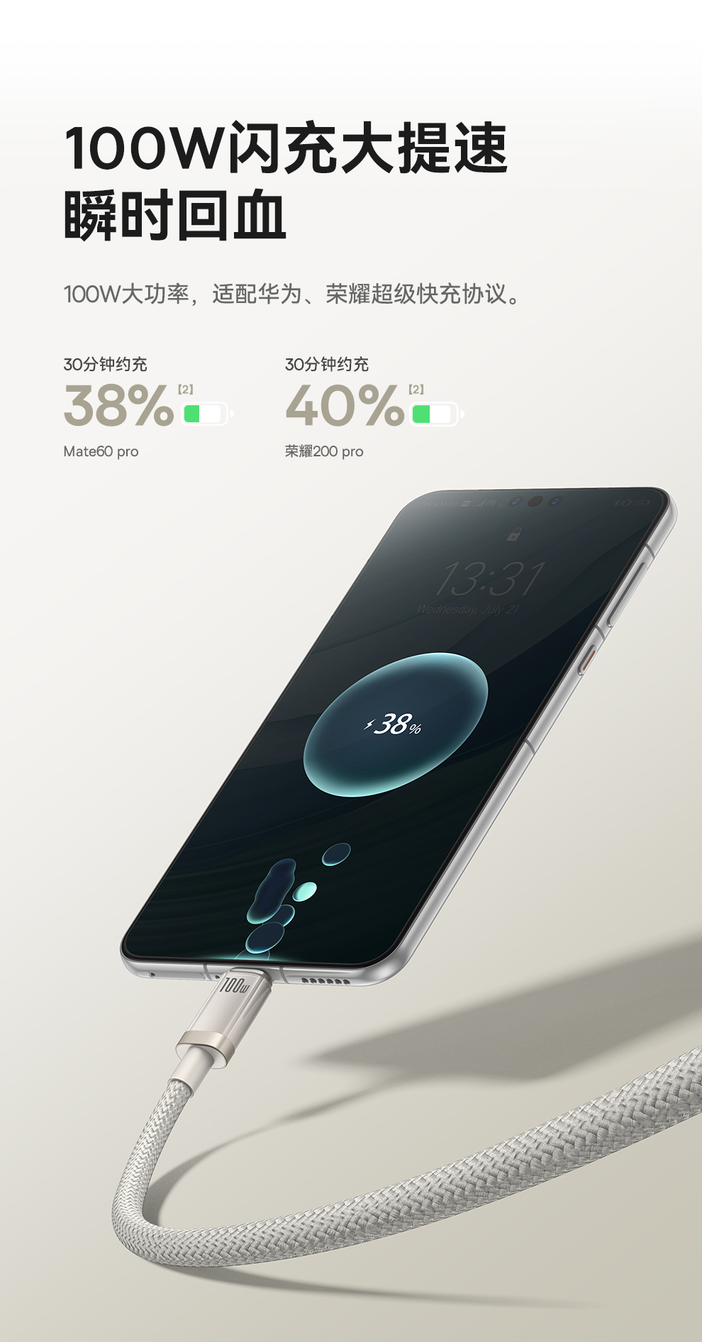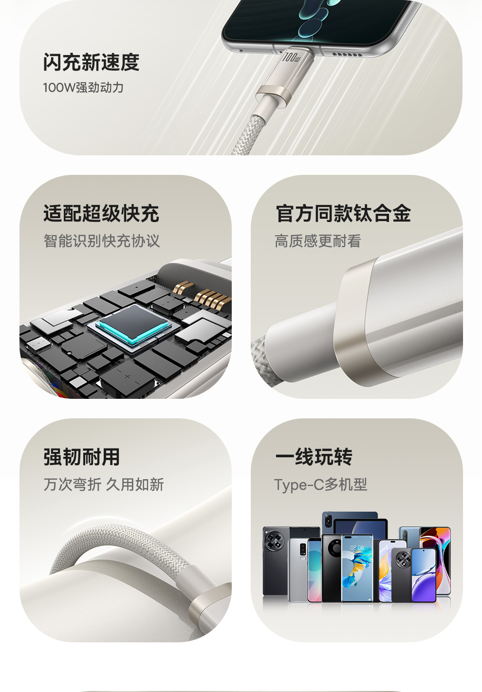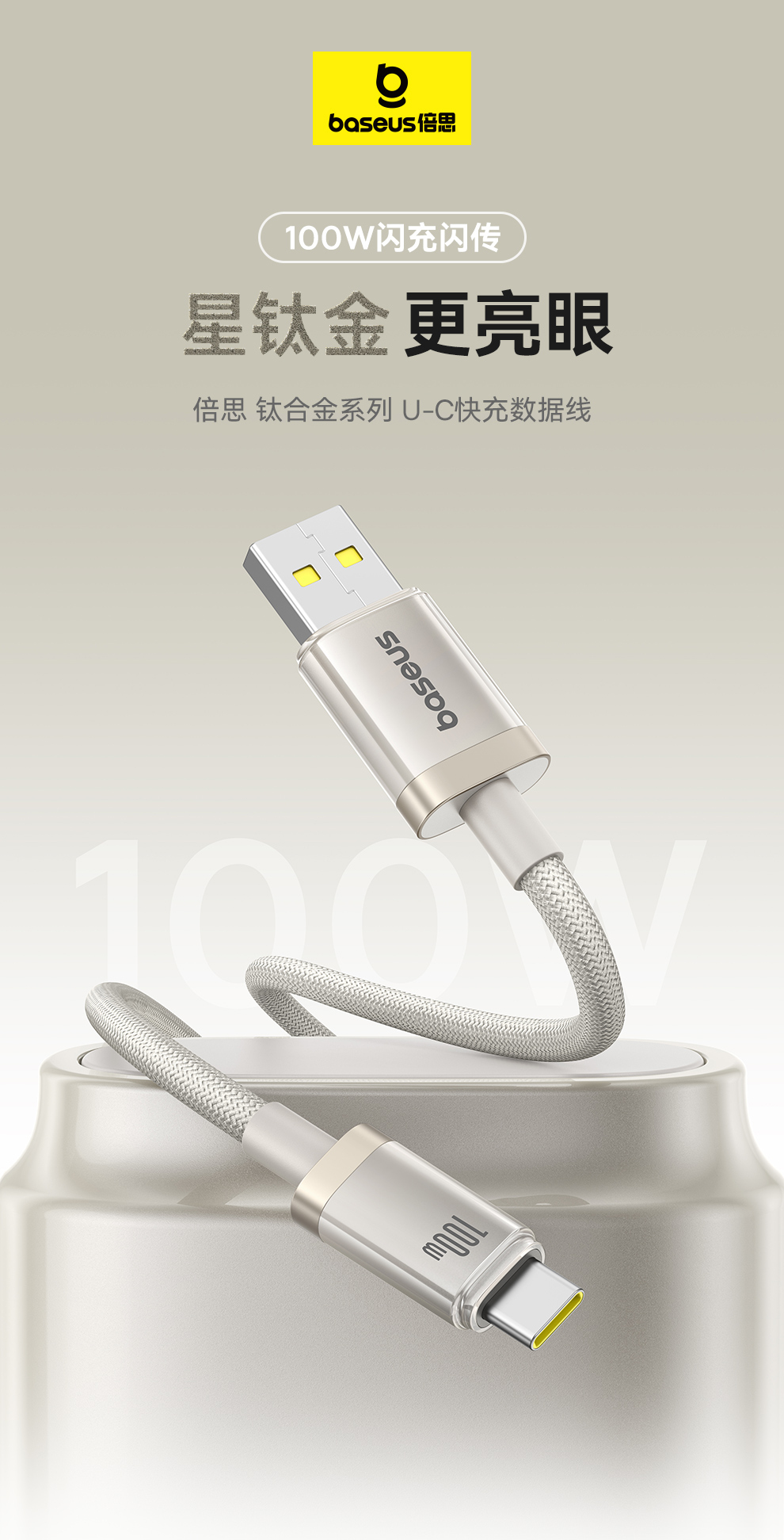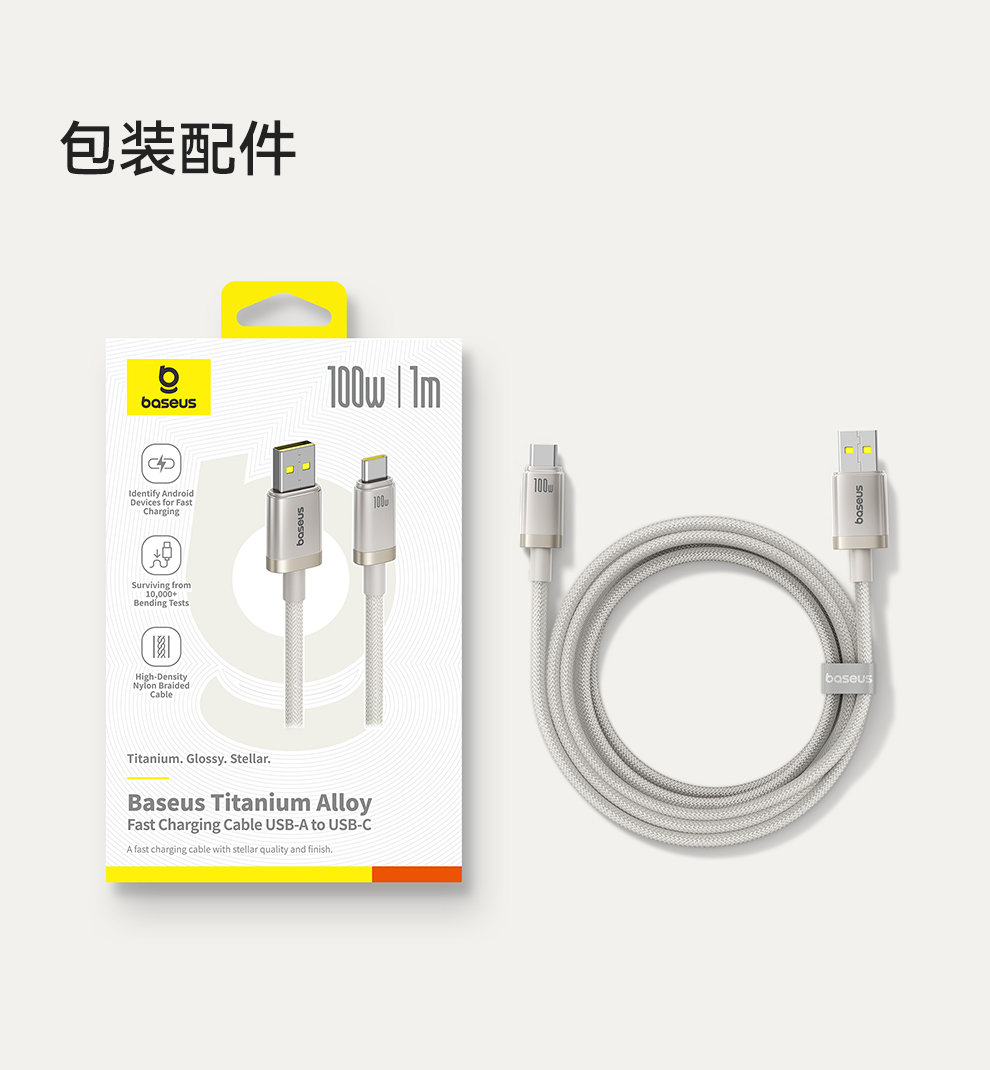 倍思 钛合金系列 快充数据线 USB to Type-C 100W