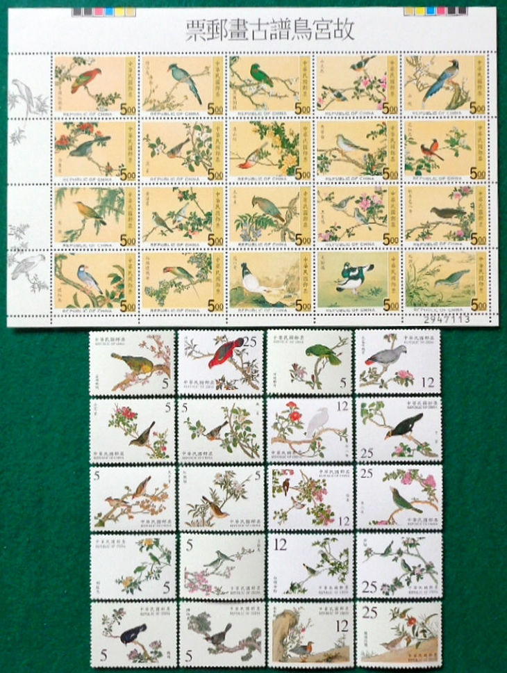 从上世纪90年代开始,台湾中华邮政官方以故宫博物馆里的《鸟谱》为主题,至今为止一共发行了六组共40枚邮票,让普通大众也有机会欣赏这一珍贵图谱,感受中华古代文物精美绝伦的画面。