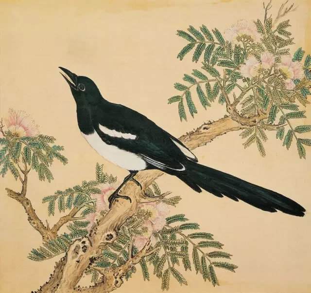 我们现在看到的是清朝宫廷画家余省和张为邦的《仿蒋廷锡鸟谱》(简称《鸟谱》)。