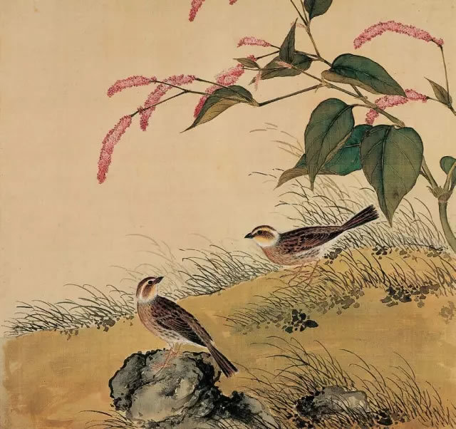 作为衬景的花草、树木,以巧妙得体的穿插、陪衬,为鸟儿们在田间溪畔、树柯草丛间的行止饮喙、翻滚飞翔、剔爪梳翎的各种体态,显得更富有活力和情趣。
