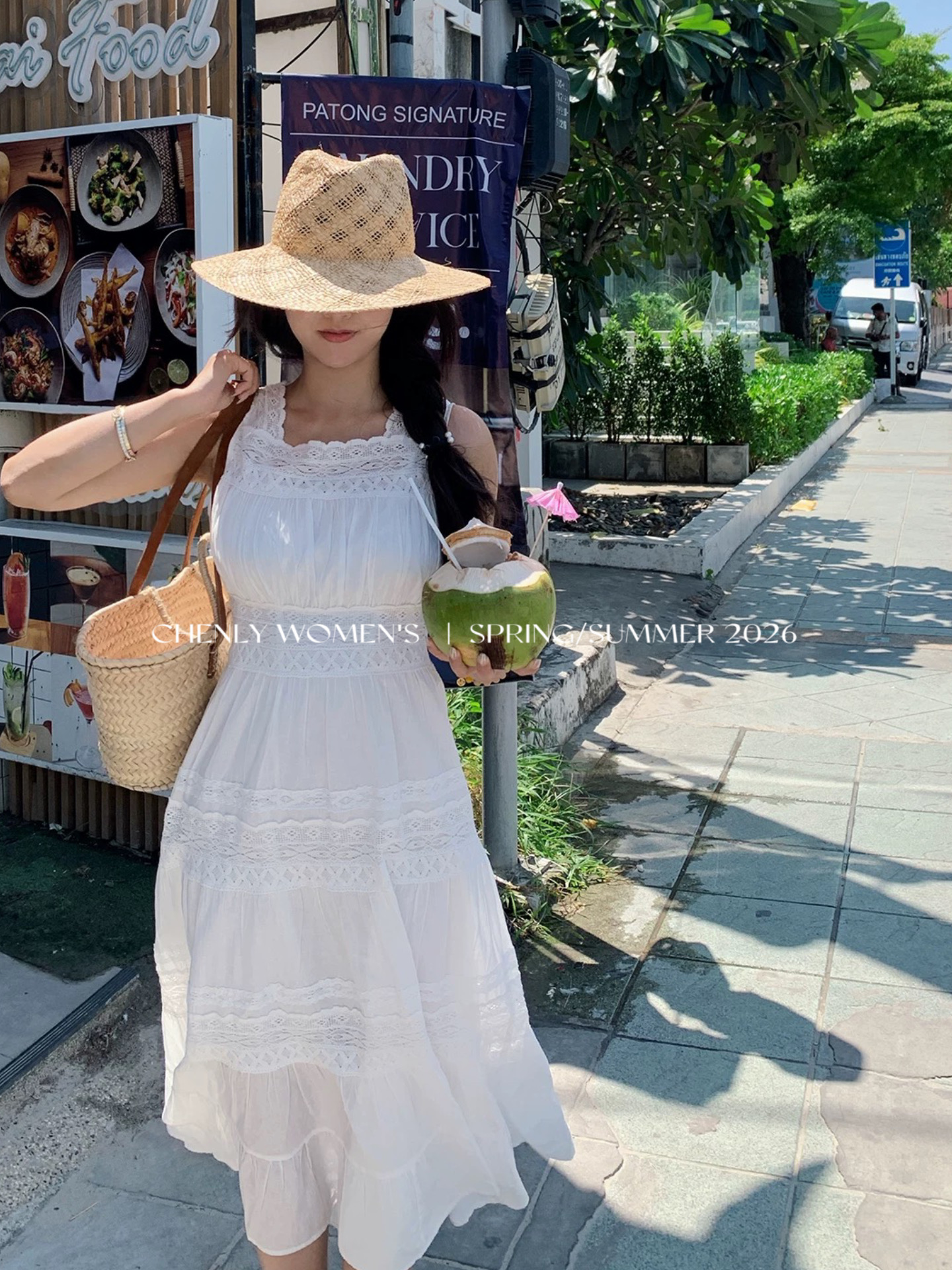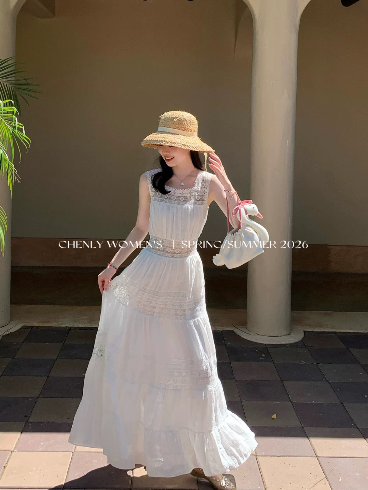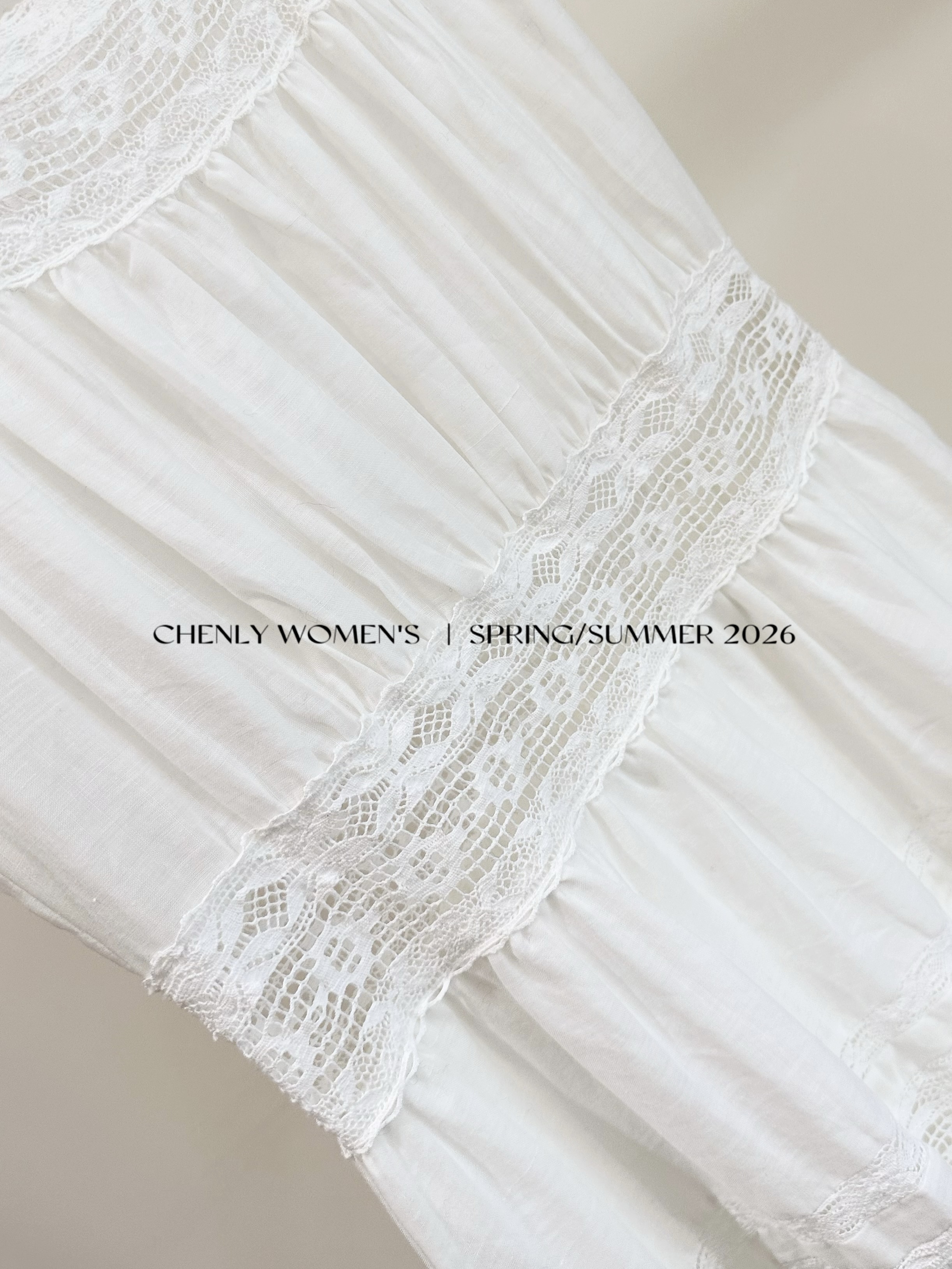 尘衣|26SS法式蕾丝拼接宽肩连衣裙