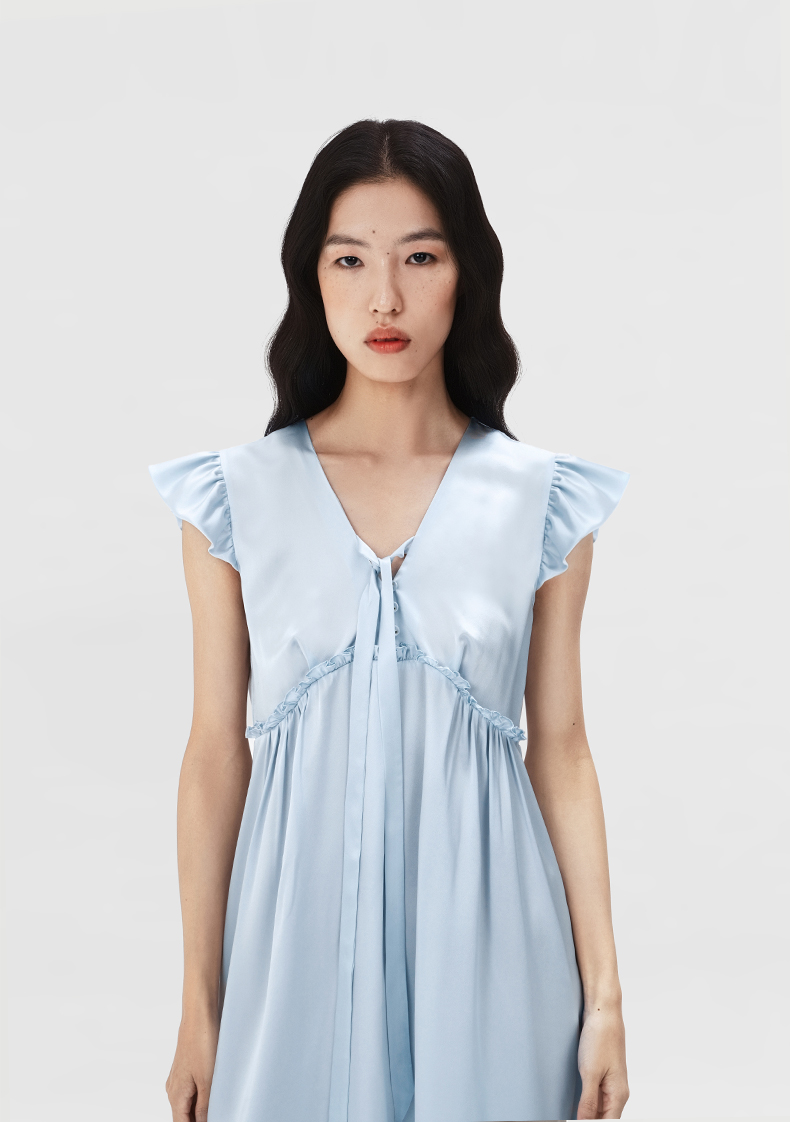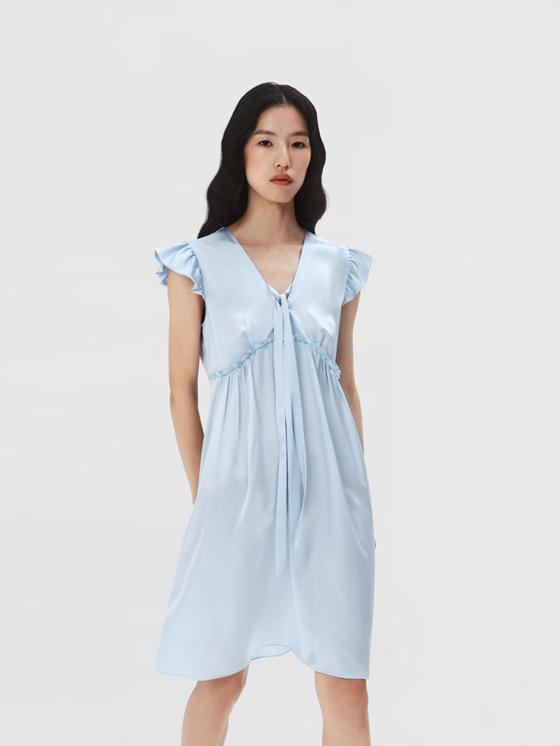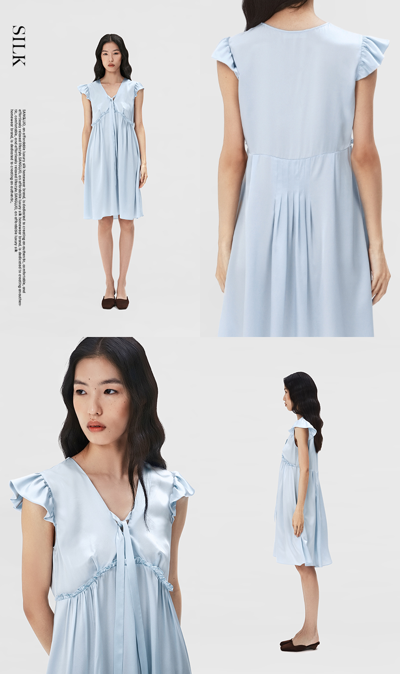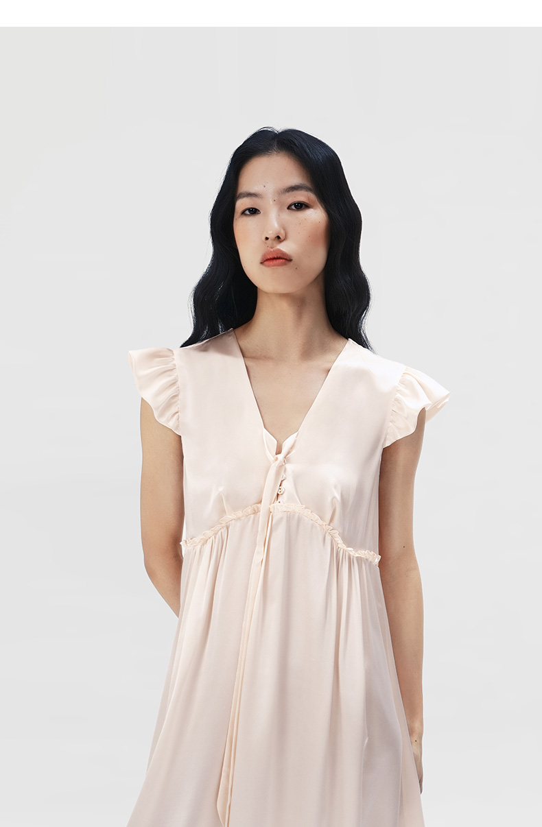 桑罗立体荷叶袖真丝睡裙100%桑蚕丝盈感系列连衣裙女家居服外穿