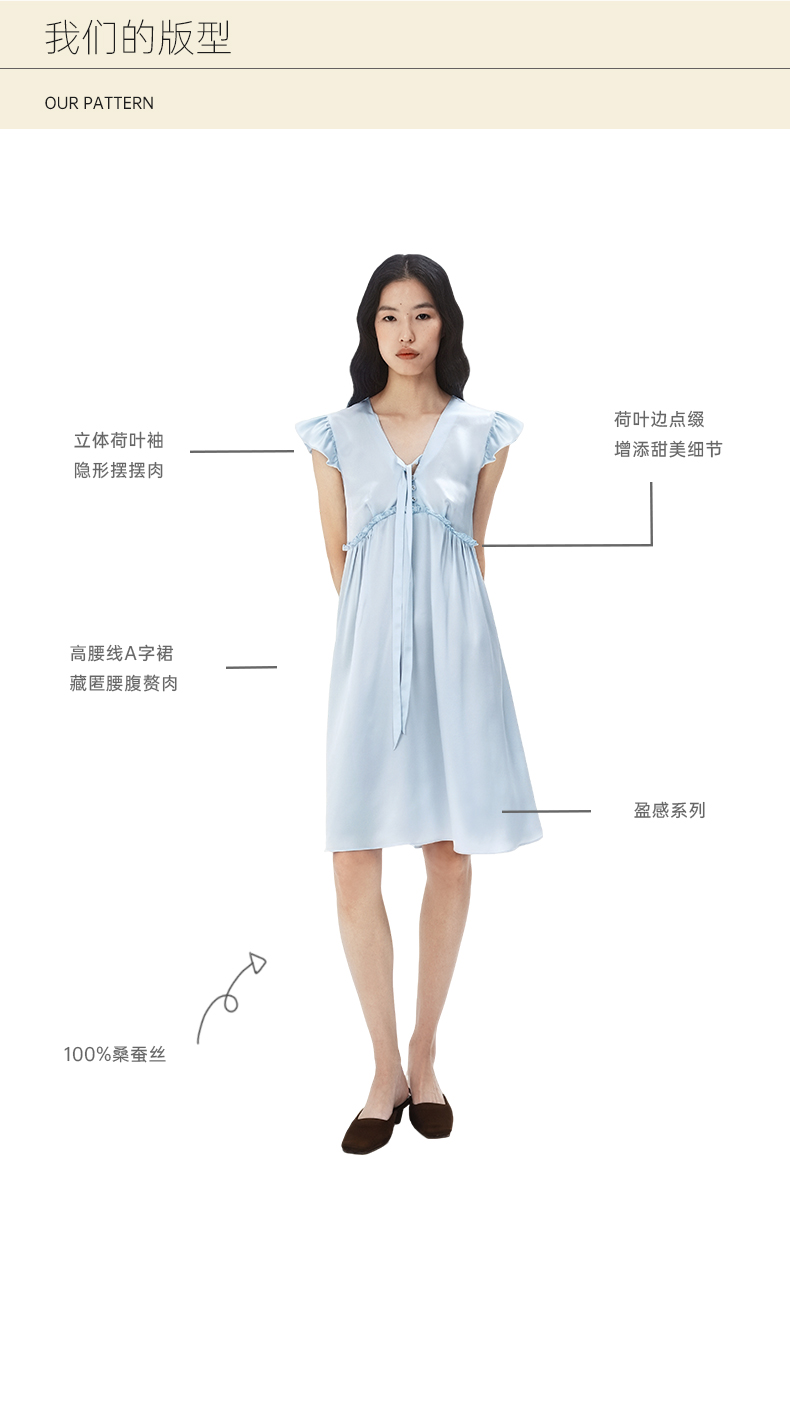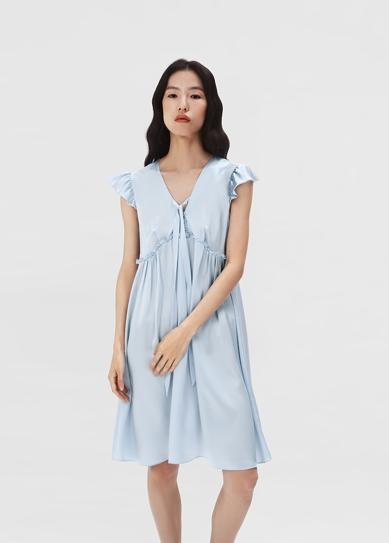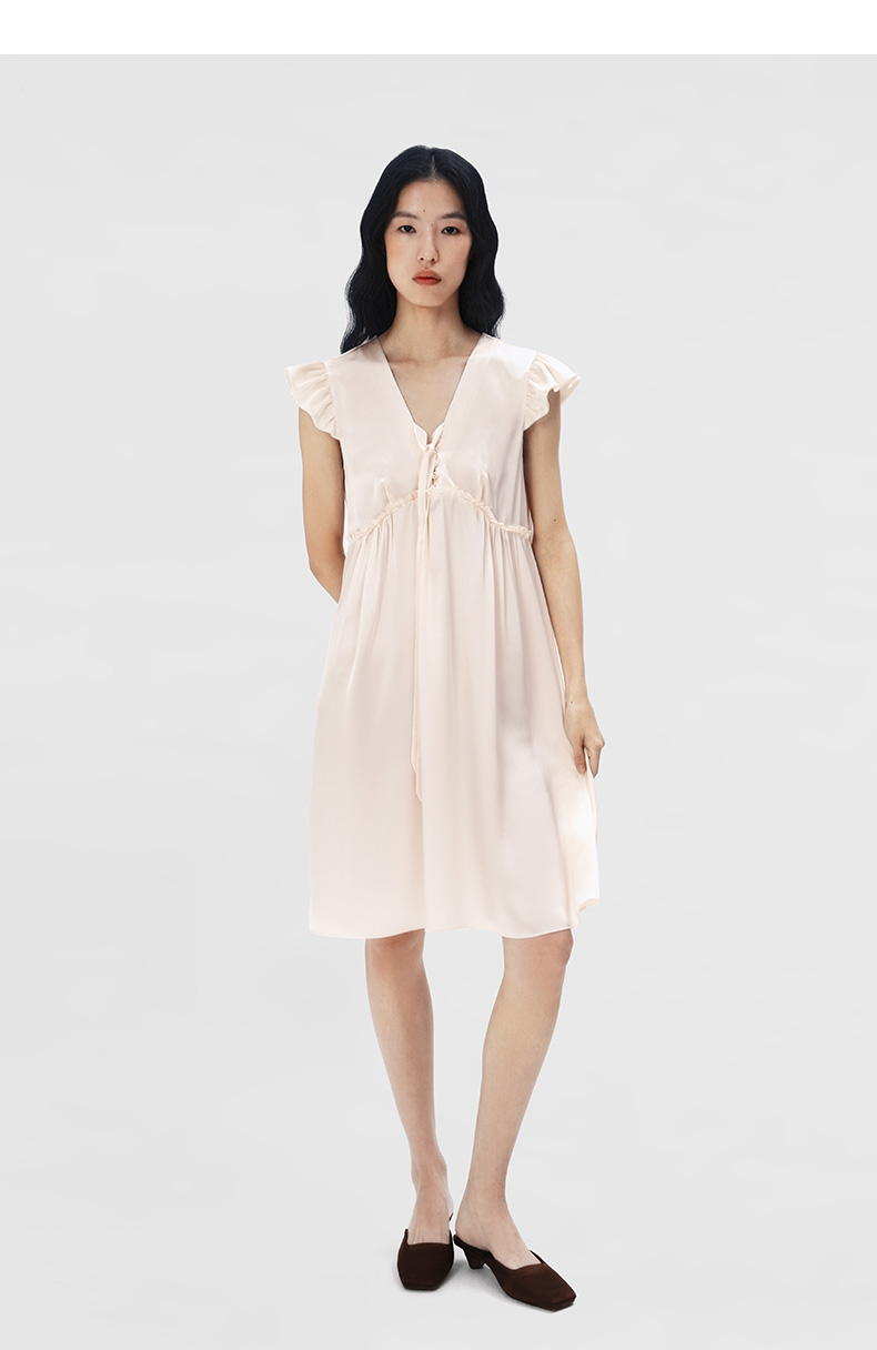 桑罗立体荷叶袖真丝睡裙100%桑蚕丝盈感系列连衣裙女家居服外穿