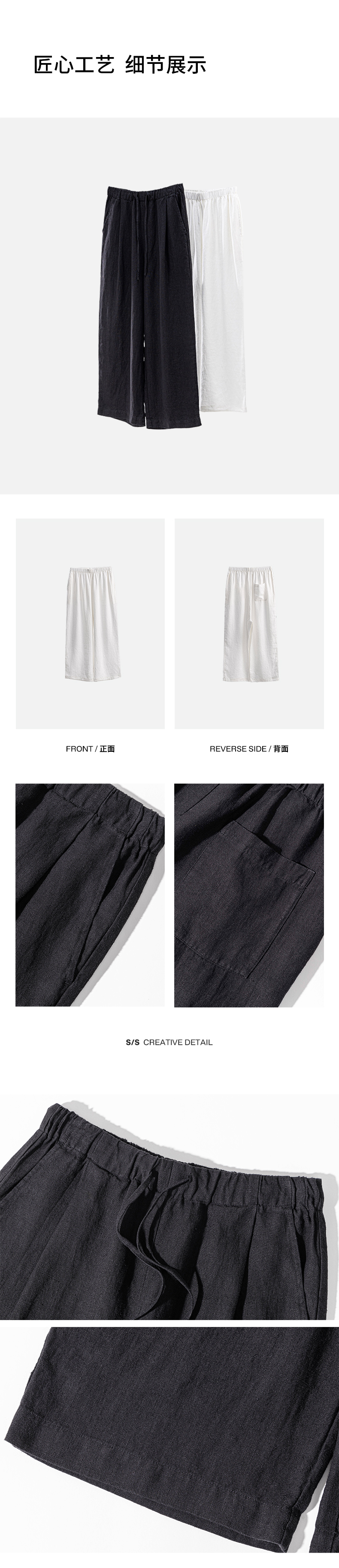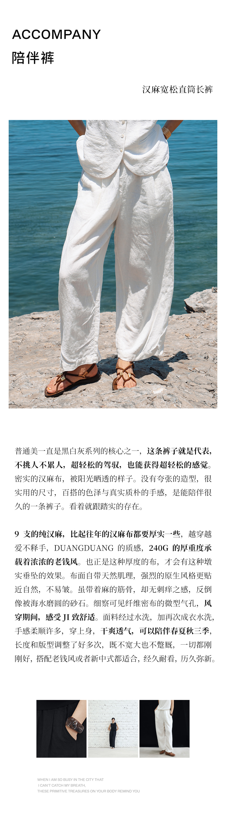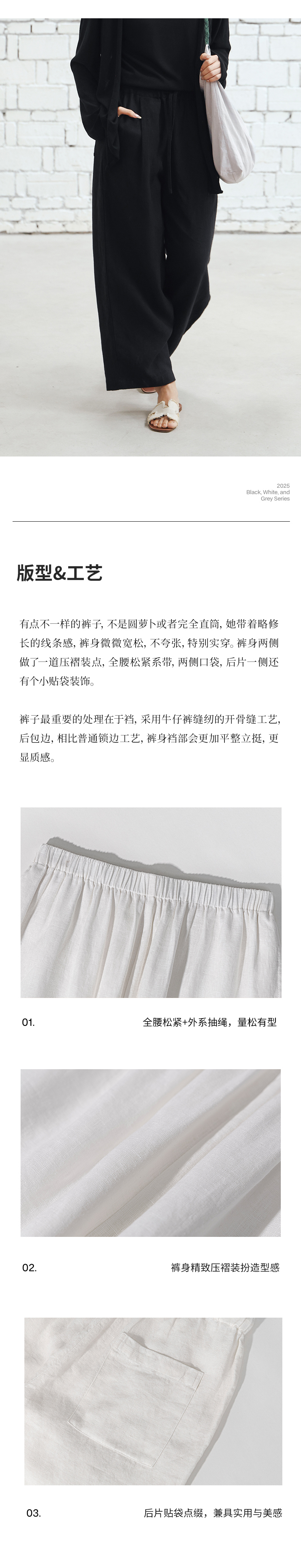绽放451朵/【黑白灰系列·陪伴裤】纯汉麻宽松抽绳显瘦直筒长裤女