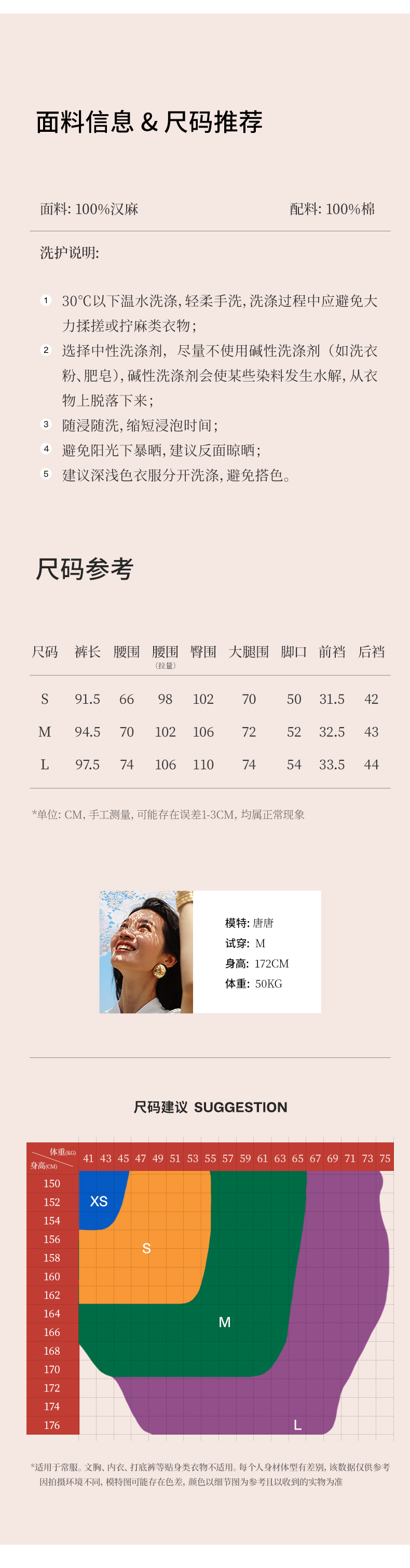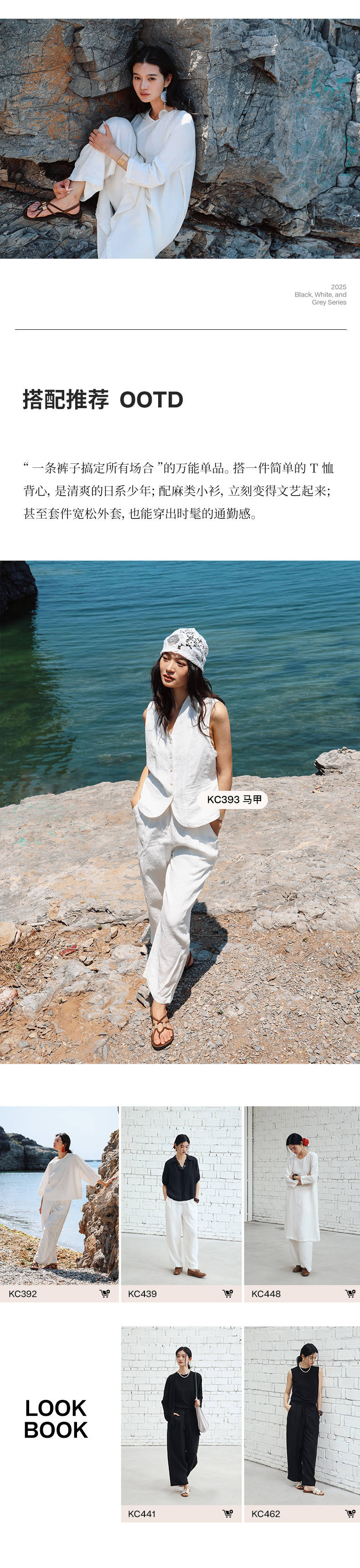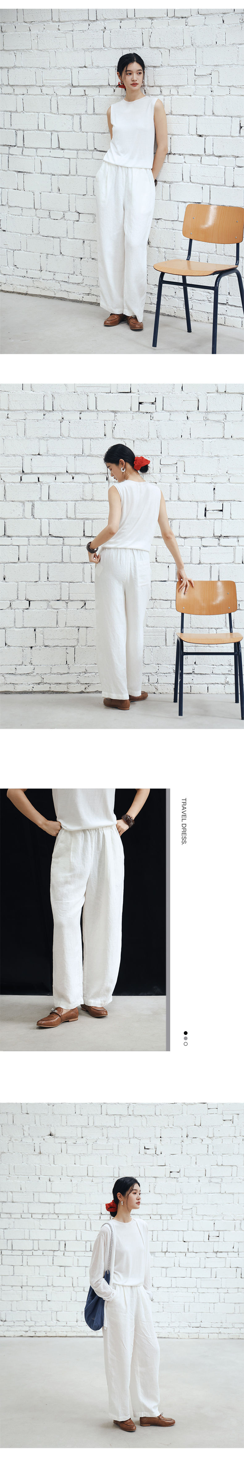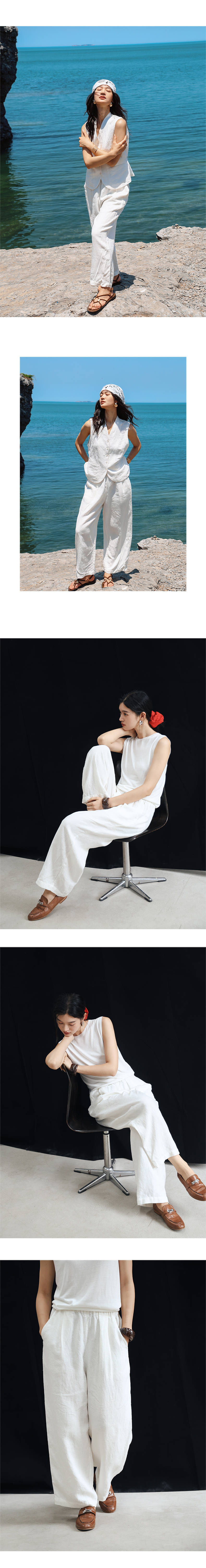绽放451朵/【黑白灰系列·陪伴裤】纯汉麻宽松抽绳显瘦直筒长裤女