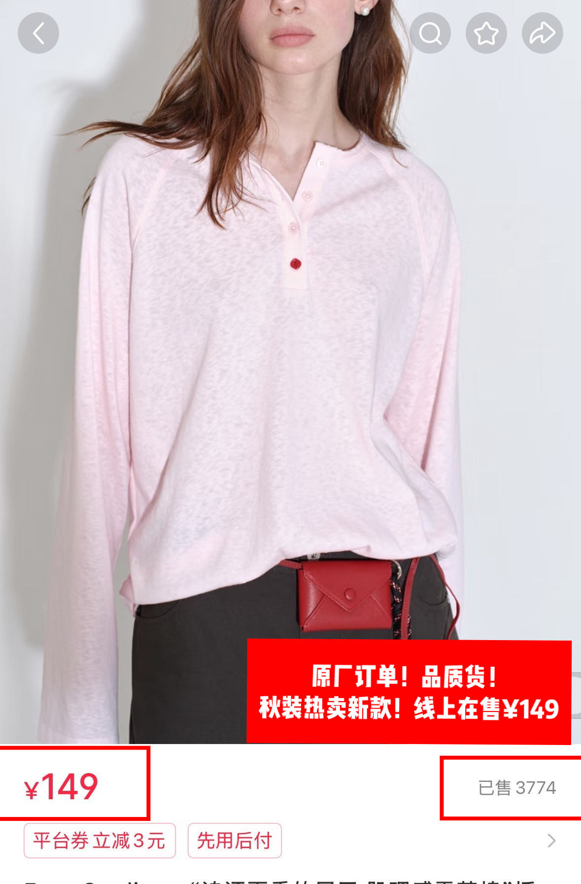 重点来了!!!这款T恤在某大网红店售价149,新品上架就卖爆了。