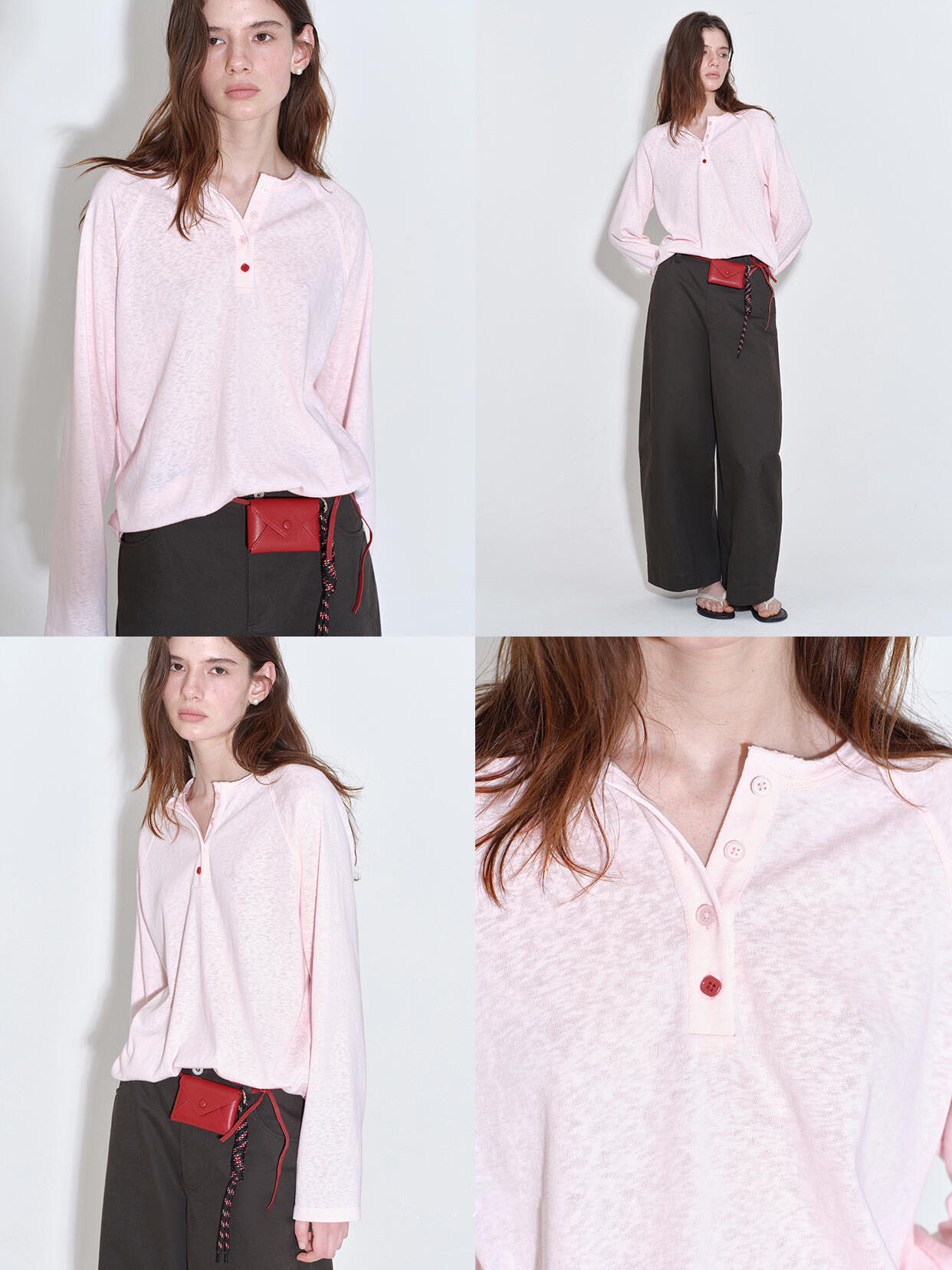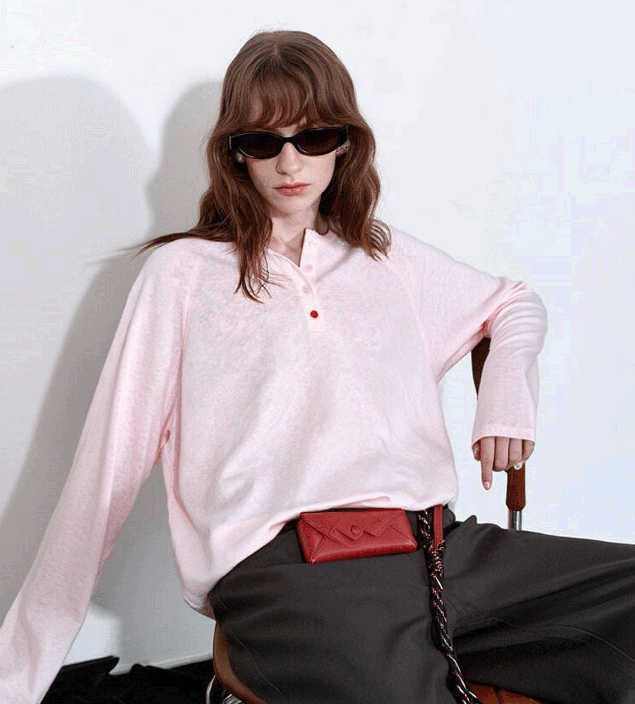 这件T恤的插肩袖+亨利领设计,正是这种潮流穿搭的完美体现。