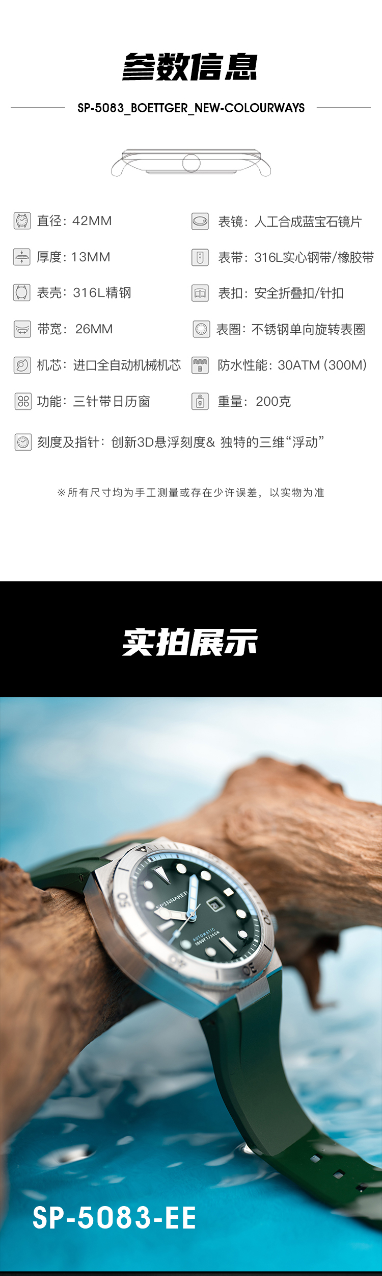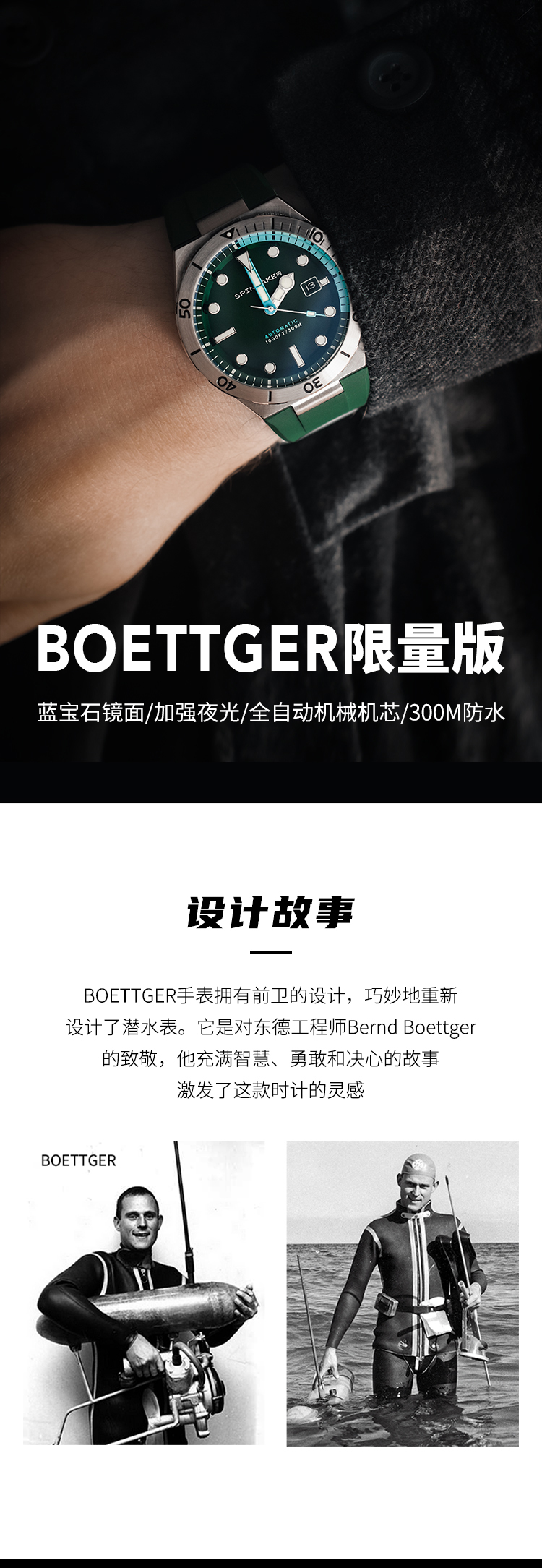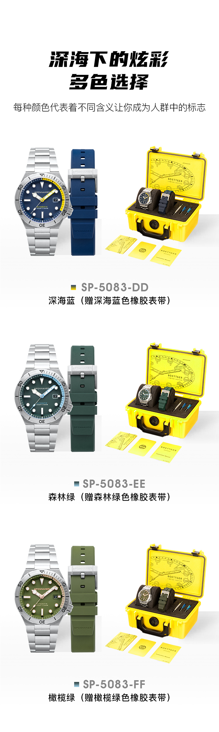新款|英国SPINNAKER三角帆限量版自动机械表BOETTGER防水夜光5083