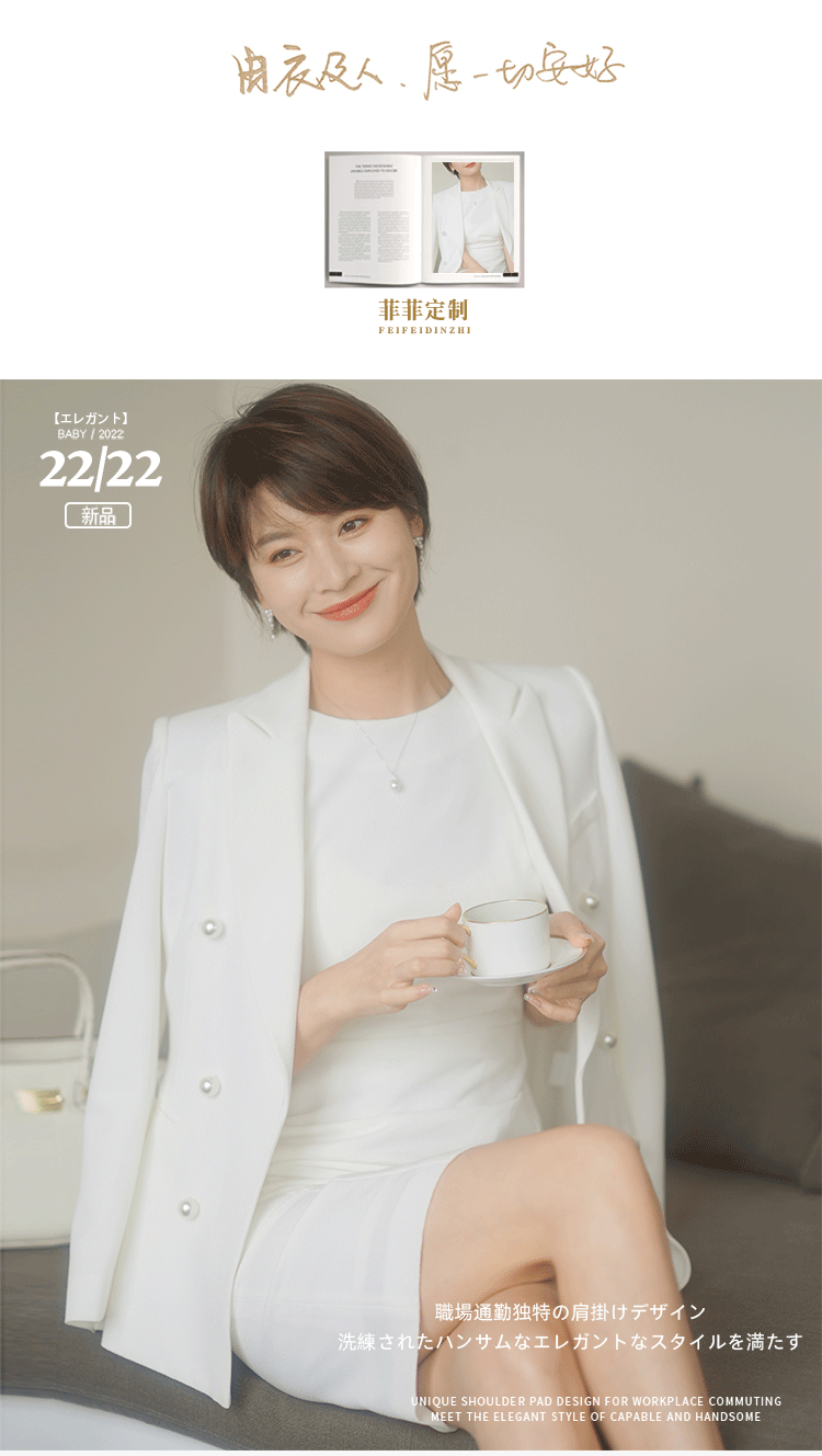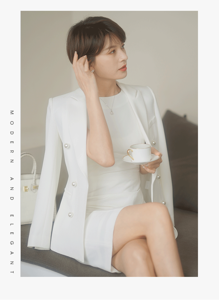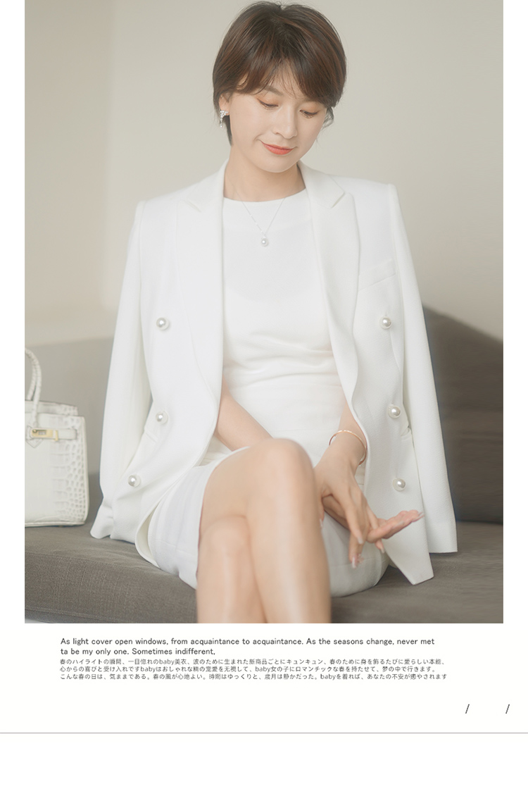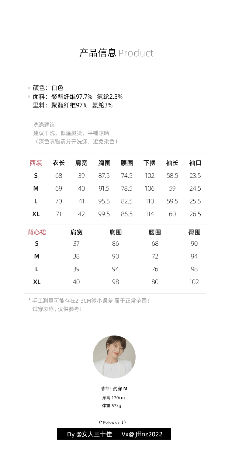白色西装套装女高级感气质女神范通勤外套无袖连衣裙两件套