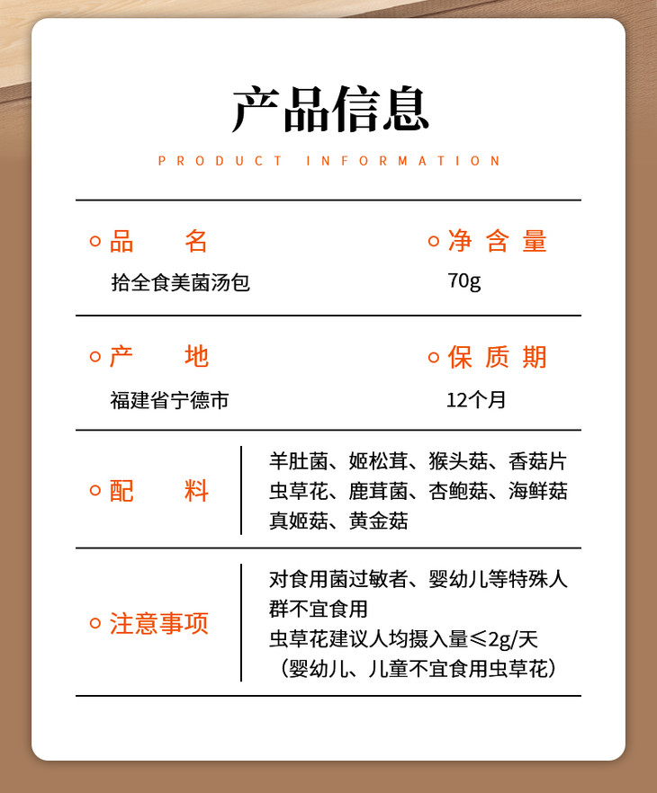 【煲汤食材】圣耳 拾全食美菌汤包 70g*5袋 炖汤滋补食材送礼年货礼盒古田干货10种菌菇