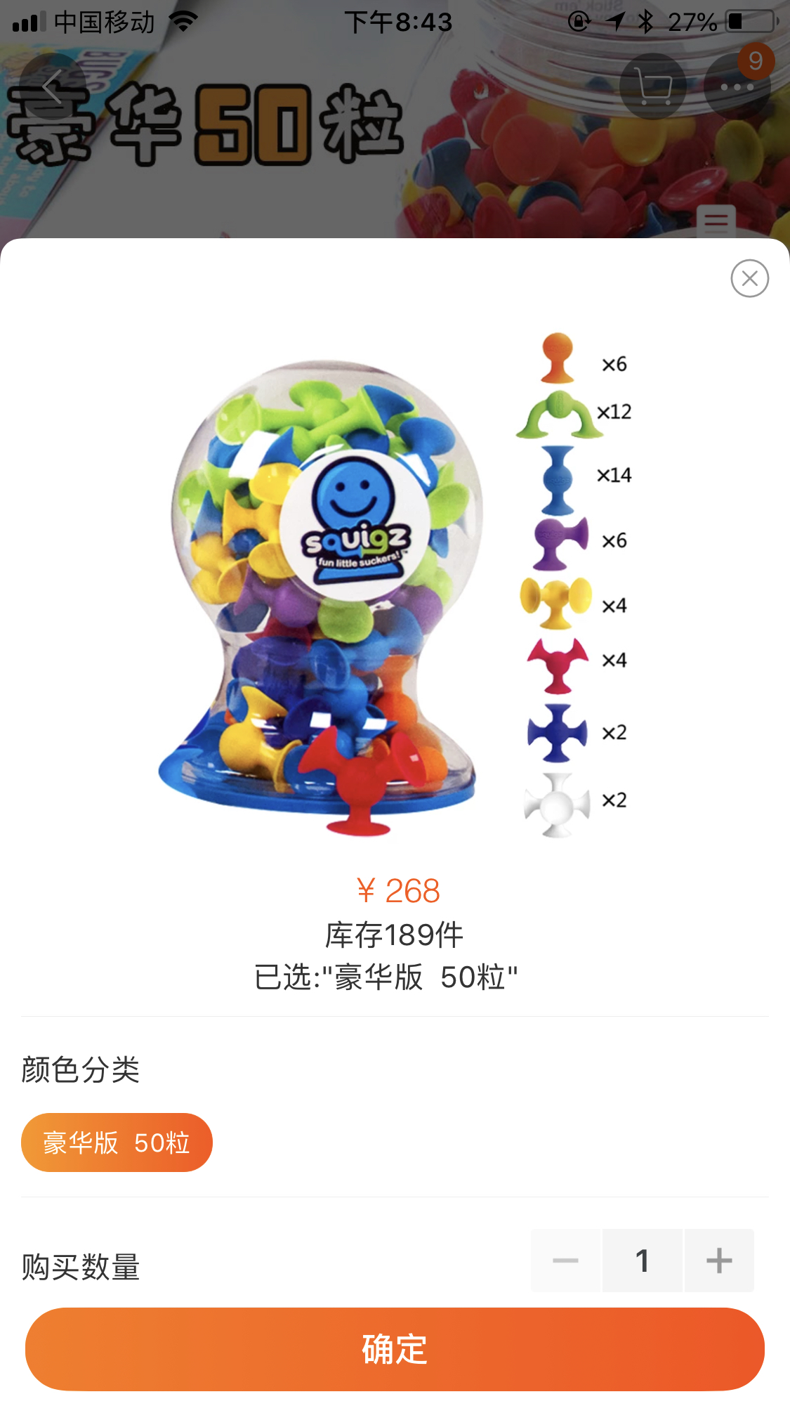 美国智库Squigz吸吸乐50粒豪华版原价268元,从实验室单独购买价格是248元。如果有20人成团,则群内团购价208元一套,立省60元,成团后下单立即发货。