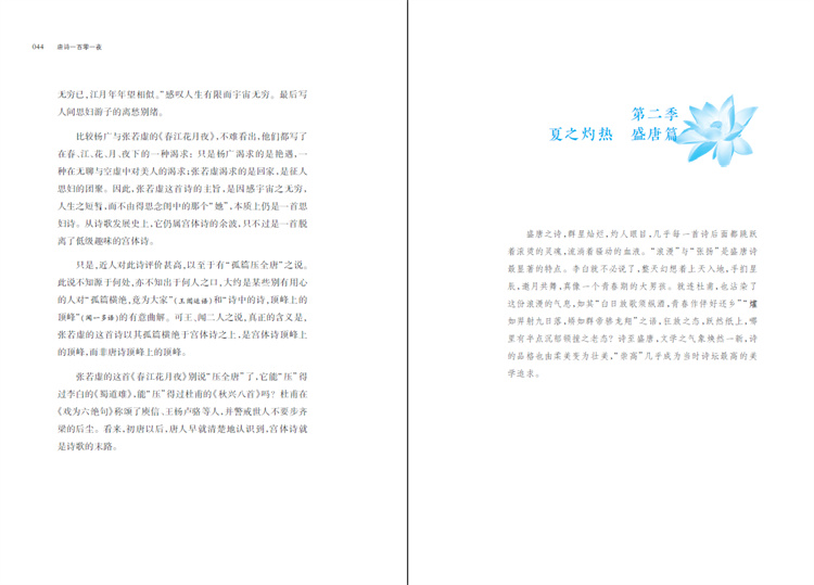 第一季 春之烂漫 初唐篇第1夜 野望 王绩 | 一首落寞者之歌第2夜 在狱咏蝉 骆宾王 | 从神童到囚徒第3夜 滕王阁诗 王勃 | 往日的峥嵘岁月,都化作了一缕云烟第4夜 从军行 杨炯 | 文书,酷吏,还是;一代贤令第5夜 长安古意 卢照邻 | 人世繁华,我却在凄风冷雨中苦吟第6夜 代悲白头翁 刘希夷 | 一首;落花诗引发的血案第7夜 渡汉江 宋之问 | 渡与不渡的纠结,诗品与人品的反差第8夜 登幽州台歌 陈子昂 | 孤独者的呐喊,落寞者的自白第9夜 彩书怨 上官婉儿 | 书中无别意,只是很想你第10夜 春江花月夜 张若虚 | 宫体诗的余波