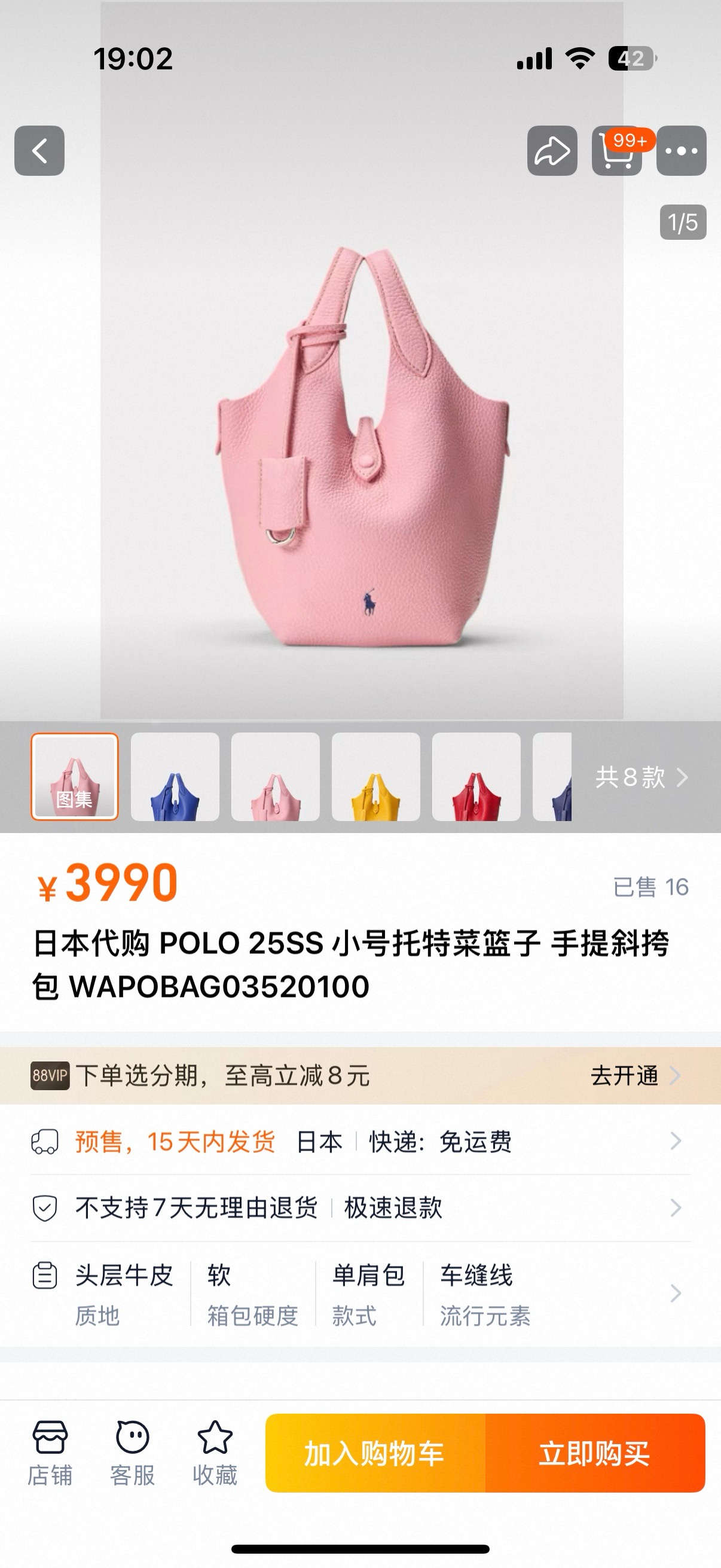 张柏芝同款!Ralph Lauren 拉夫25SS新款迷你号菜篮子包 尺寸 26*16.5cm