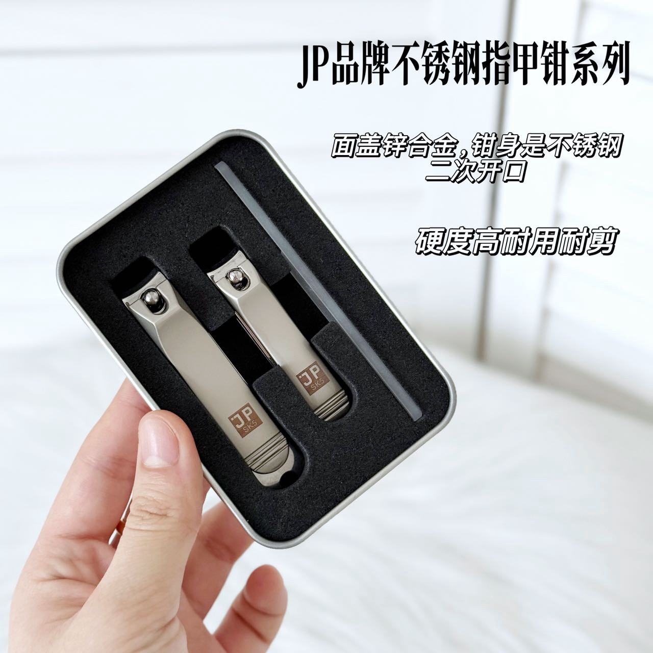 指甲修剪工具总是零散难收、易生锈且不够精致?JPSK5指甲钳三件套为您提供一体式优雅护理方案。锌合金材质坚固耐磨,防锈易打理;内含指甲钳、亮甲挫与辅助钳,轻松应对日常修剪打磨需求。流线型设计贴合手握,小巧便携不占空间。无论是居家还是差旅都可以随身携带!网上售价202元!!!