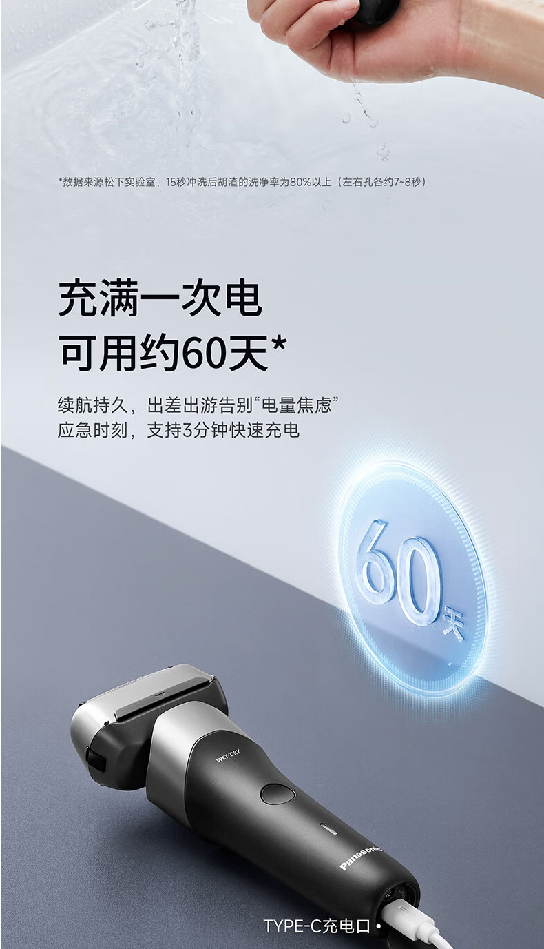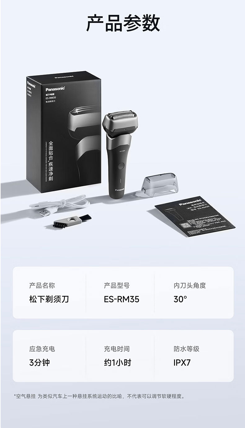 【云粉节】10楼 松下(Panasonic)剃须刀电动便携胡须刀进口刀头剃胡刀往复式男士刮胡刀RM35 【闪电净剃不留根】吊牌价499元 活动价399元