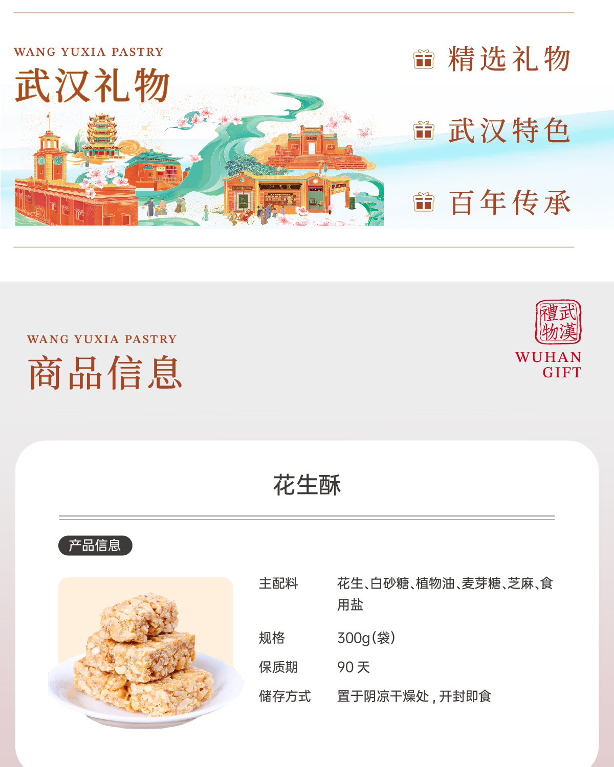 武汉礼物汪玉霞汉味花生酥酥糖酥脆小吃特产零食传统糕点300g
