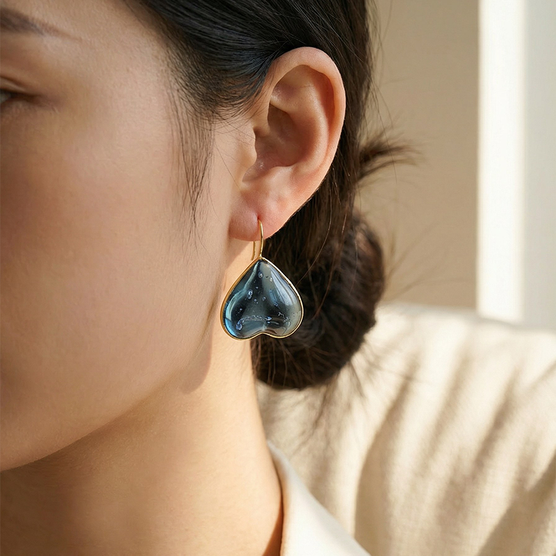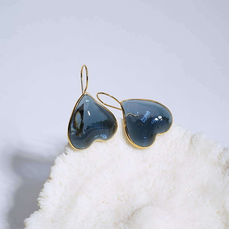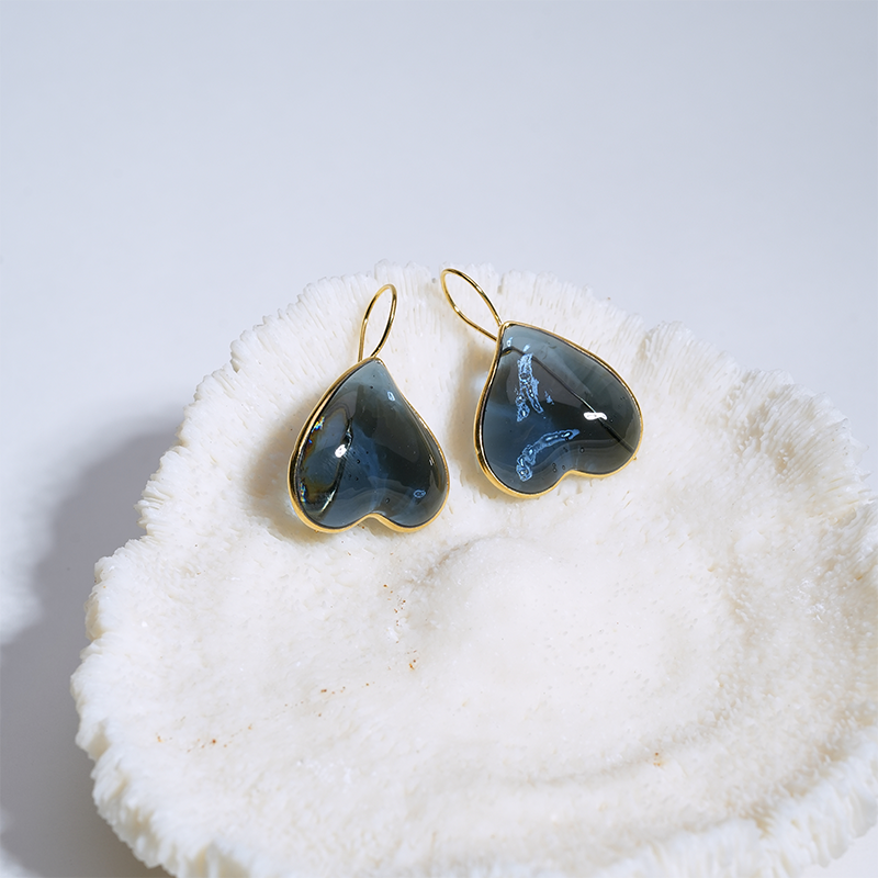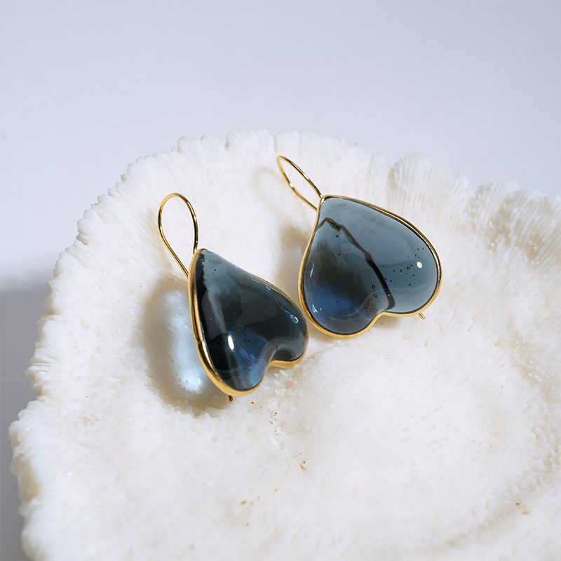 北京仓|Loulou de la Falaise-Clover-水墨蓝 爱心水滴 耳环[法国设计师]